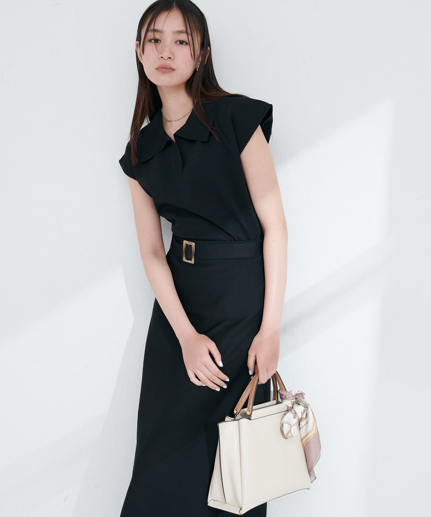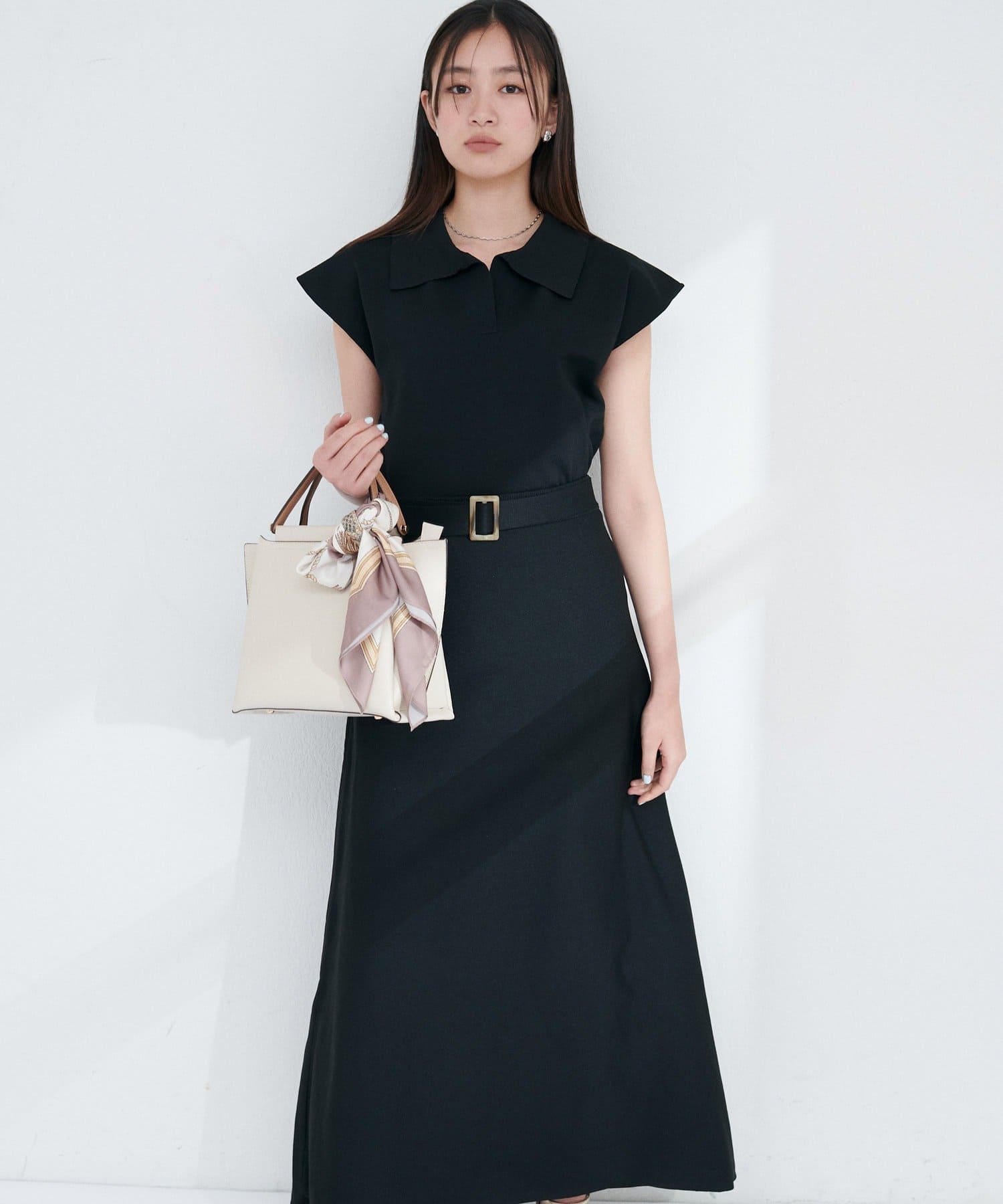 フレアスカートやテーパードパンツと合わせて、オフィスにも対応できるきれいめスタイルに。