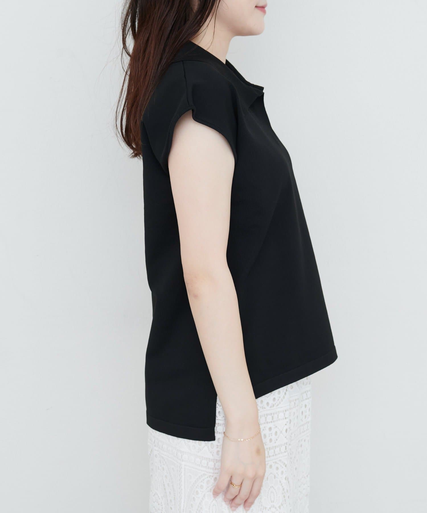 程よいゆとりのあるシルエットで肩まわりを華奢に見せてくれ、リラックス感のある着心地に。