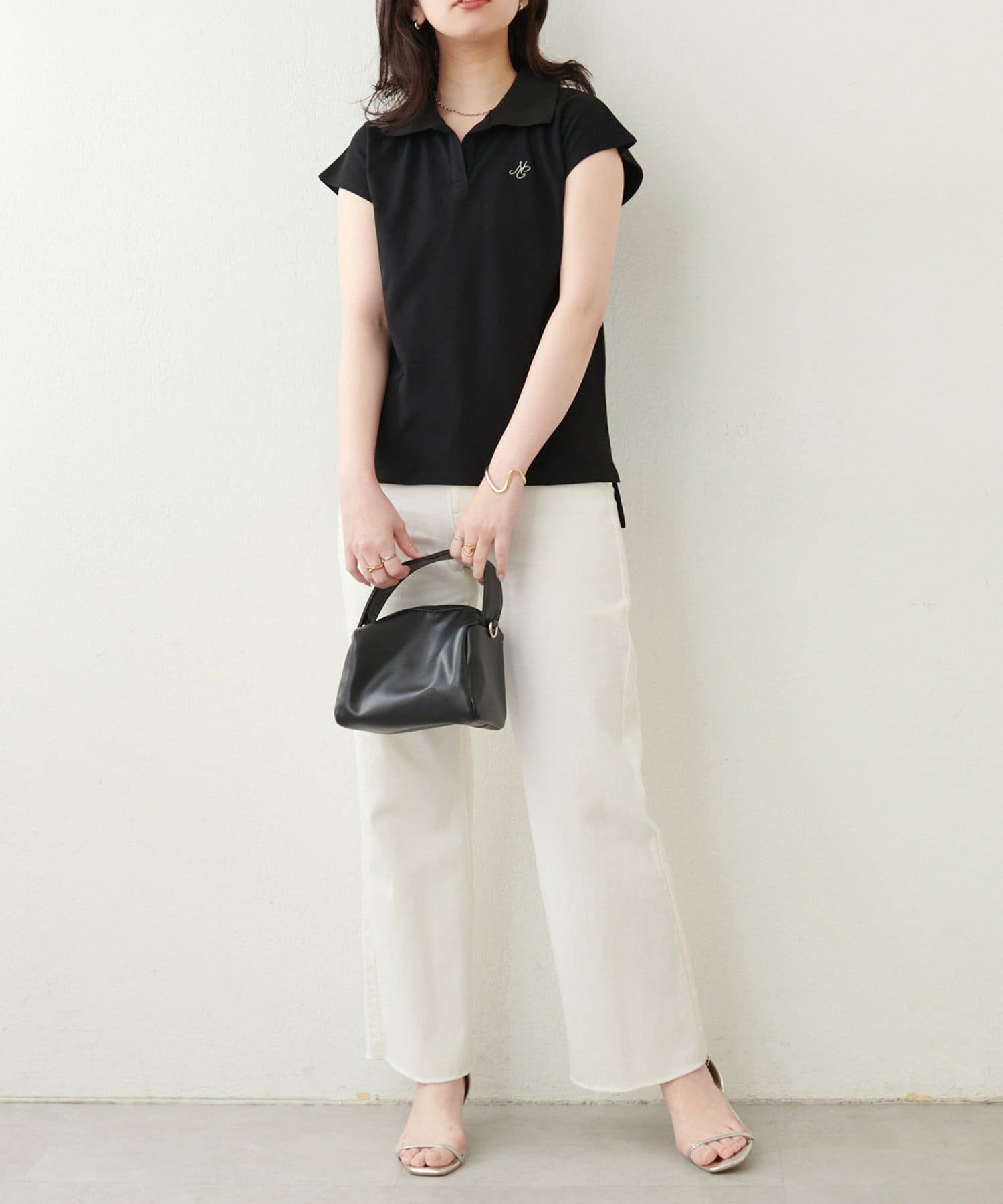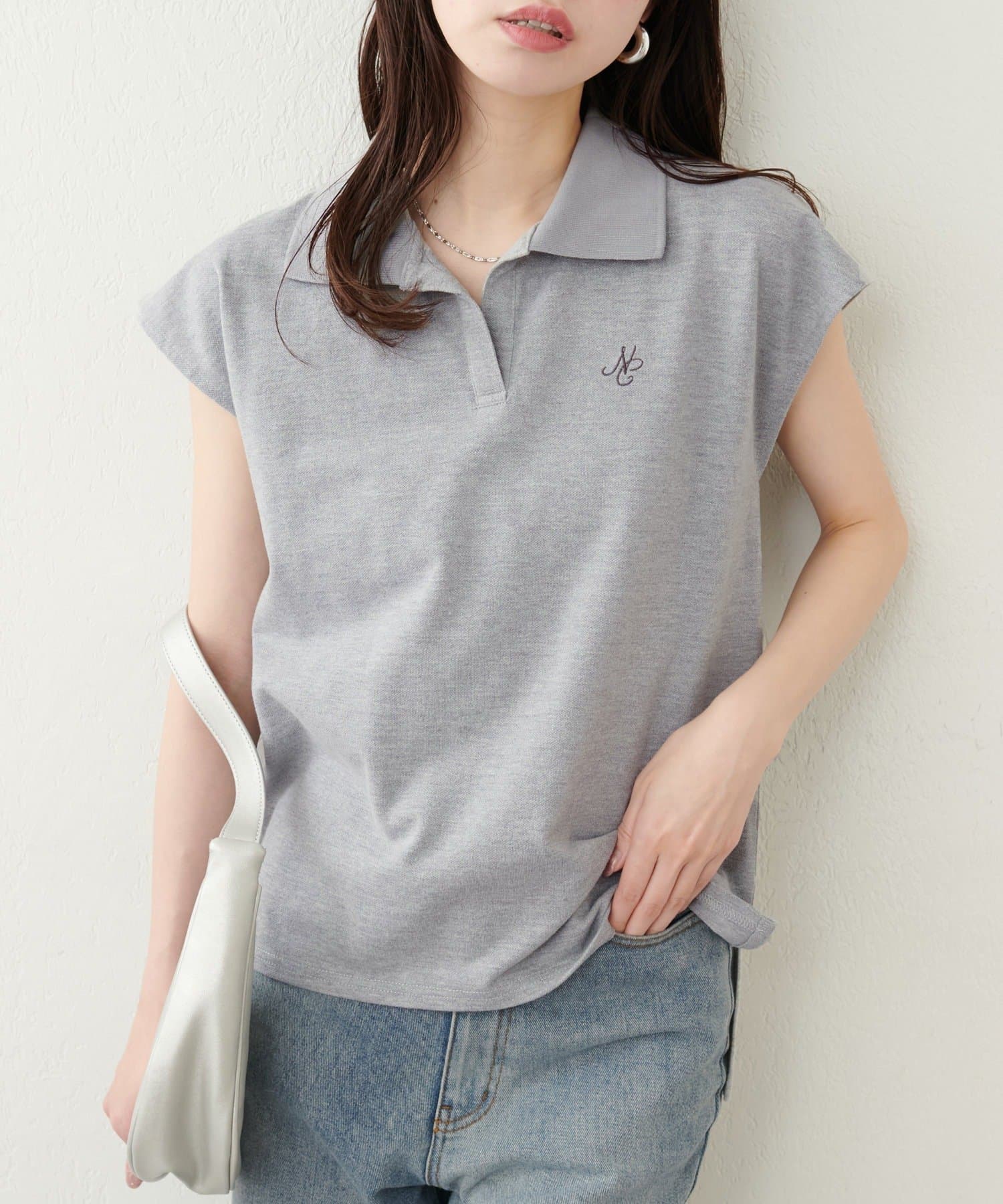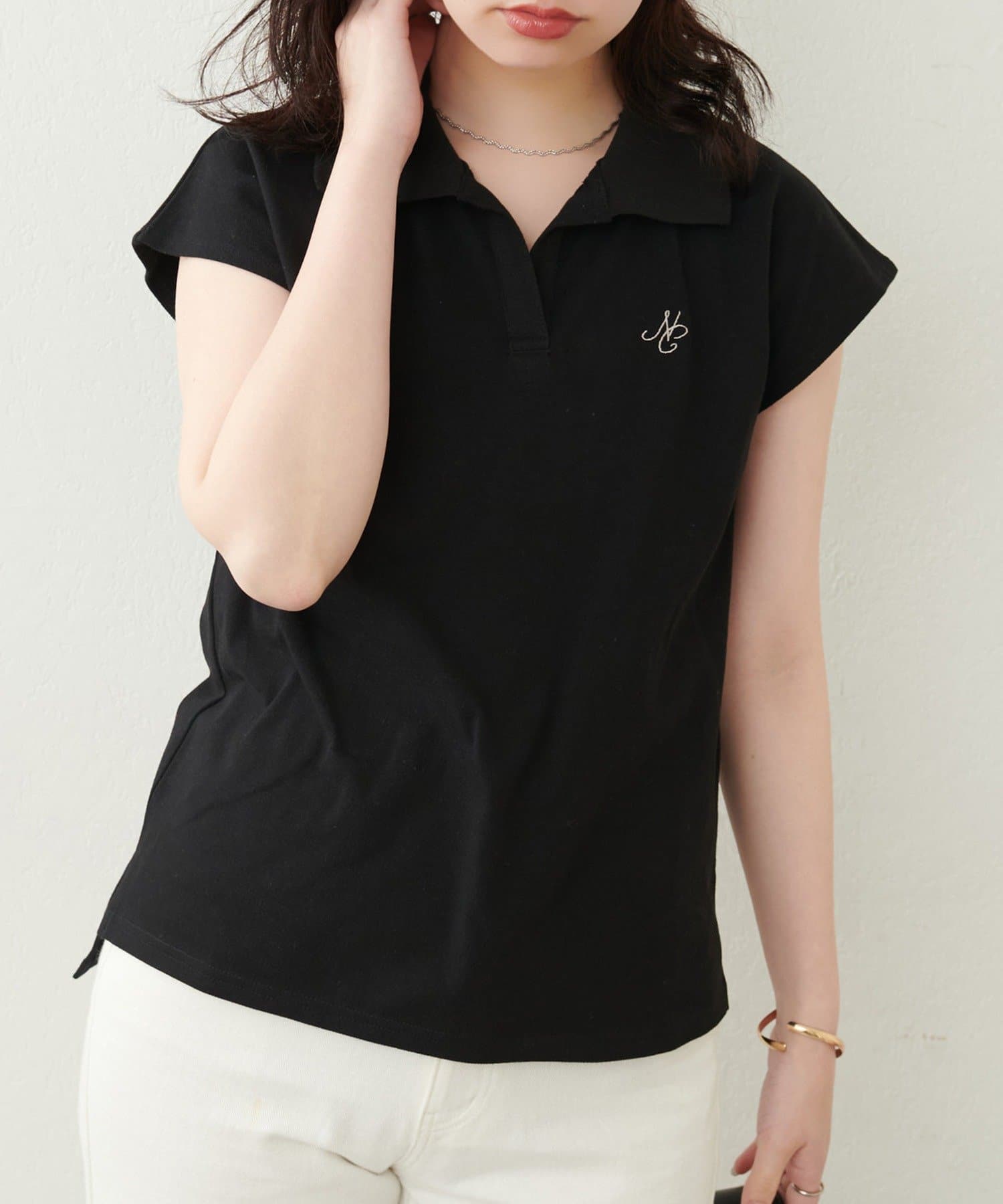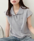 【natural couture】刺しゅう入りフレンチスリーブポロシャツ