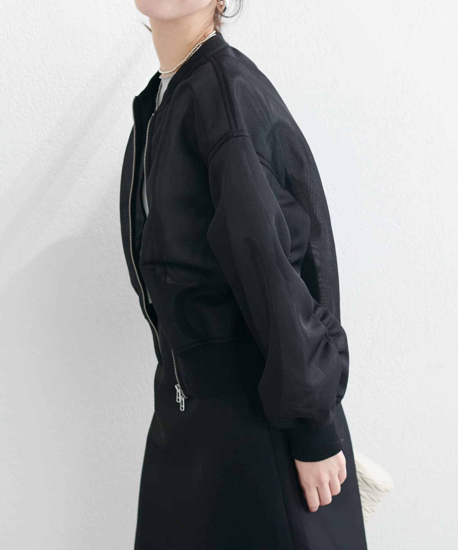 カジュアルな印象のブルゾンに、ゆとりのあるアームラインやさりげないディテールを施し、