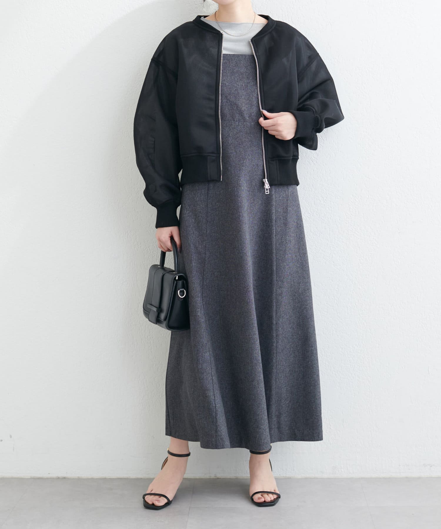 ノースリーブワンピースにさっと羽織るだけで決まり、