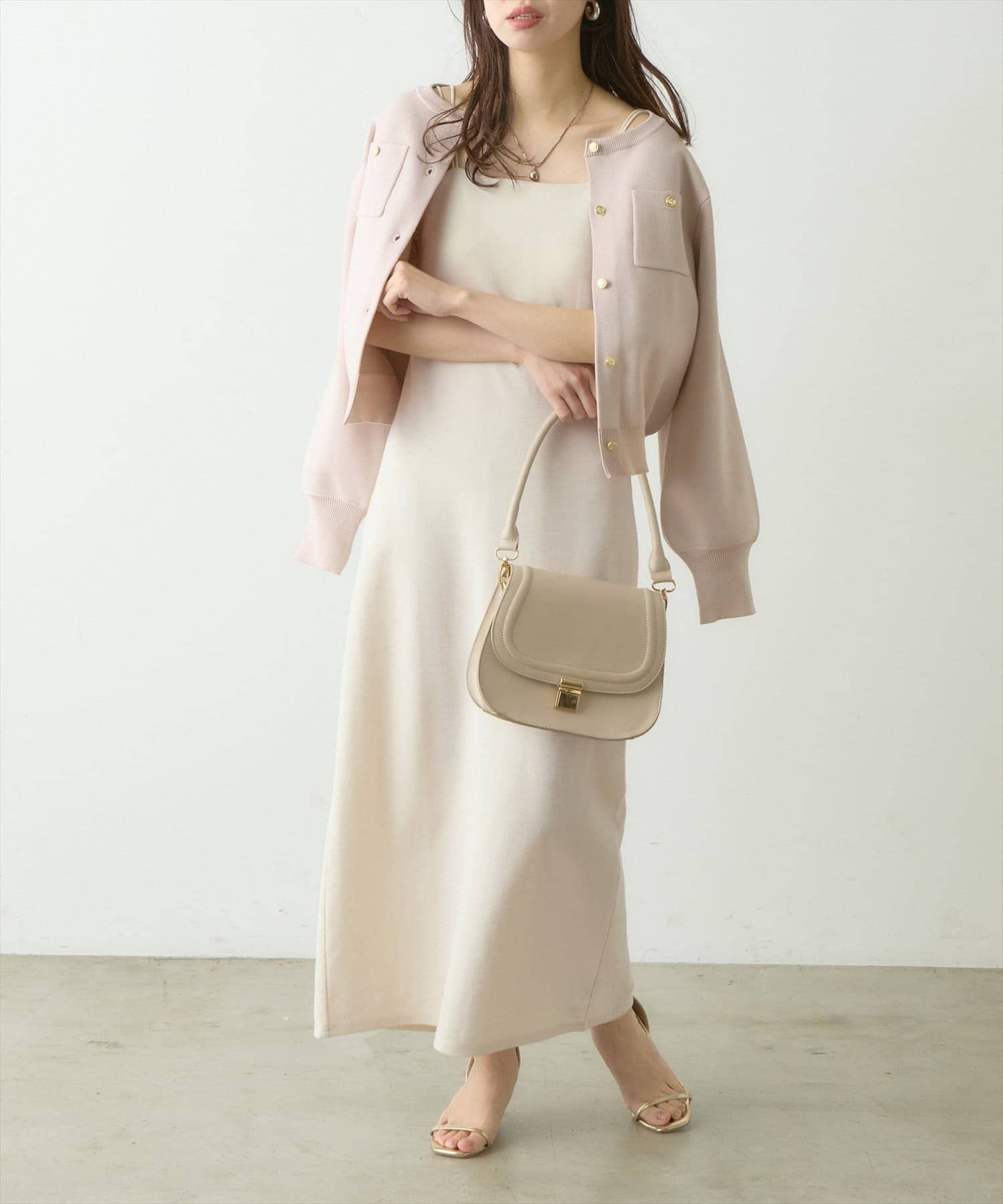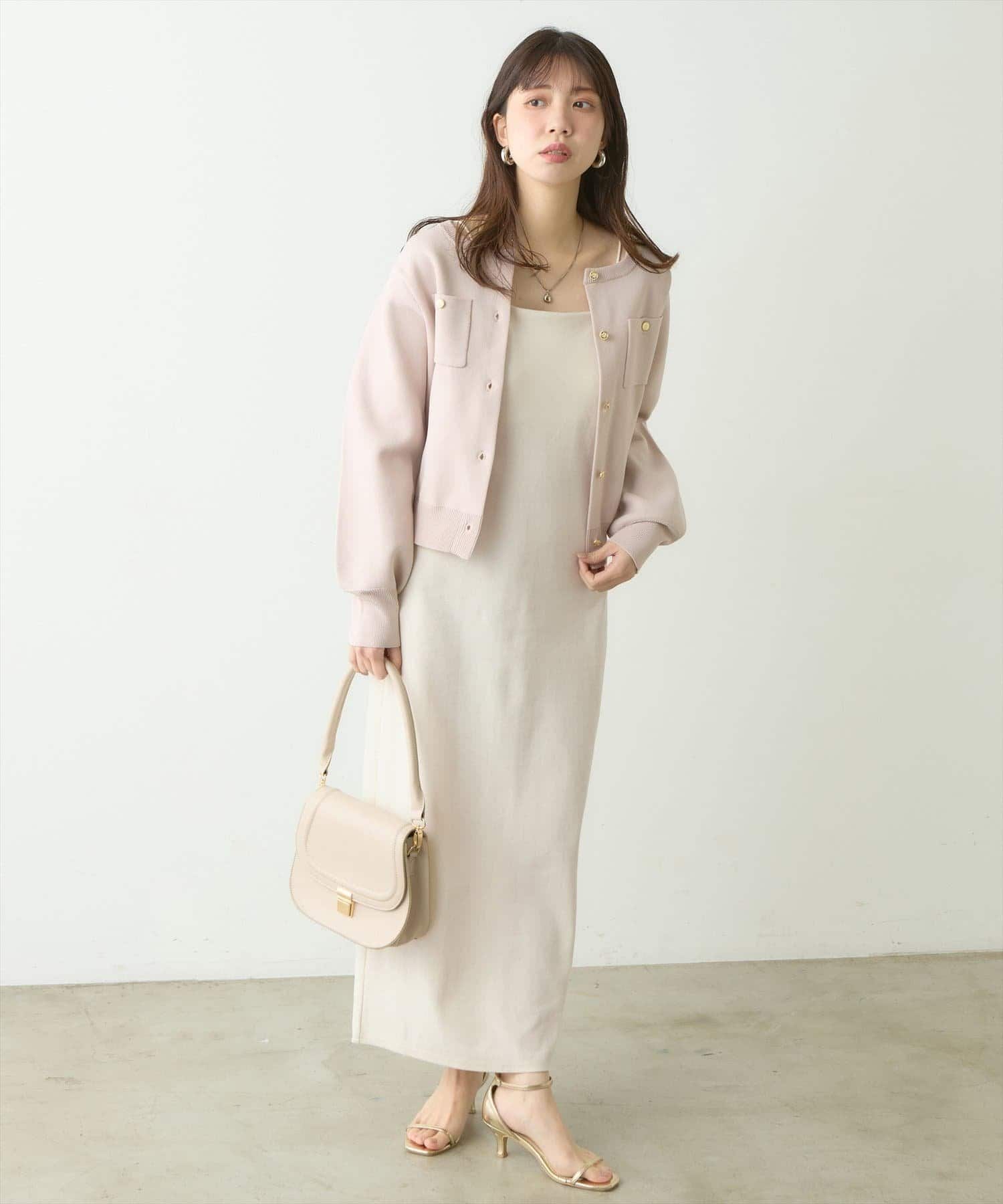 お手持ちのカーディガンやシャツワンピースとレイヤードしても◎
