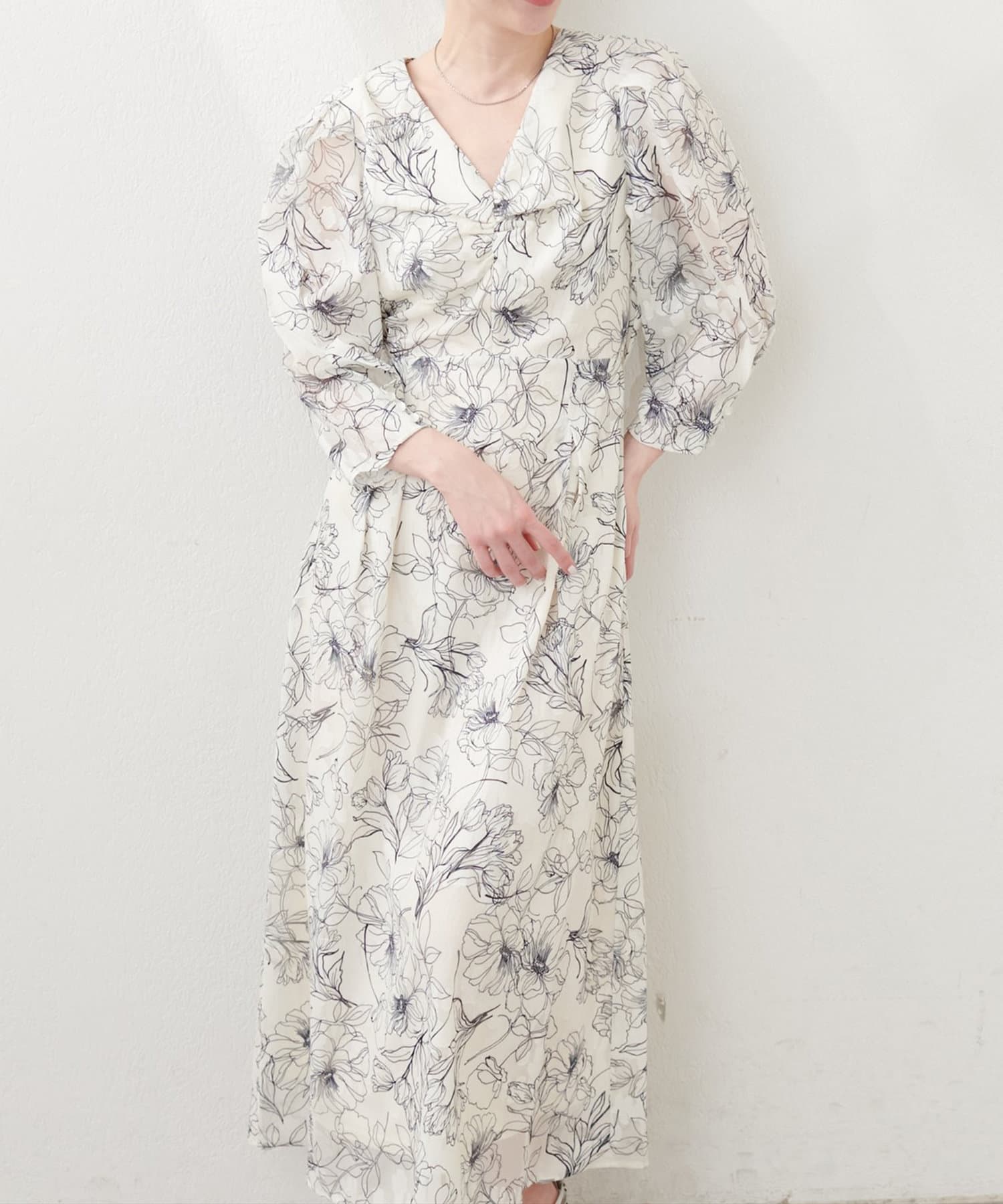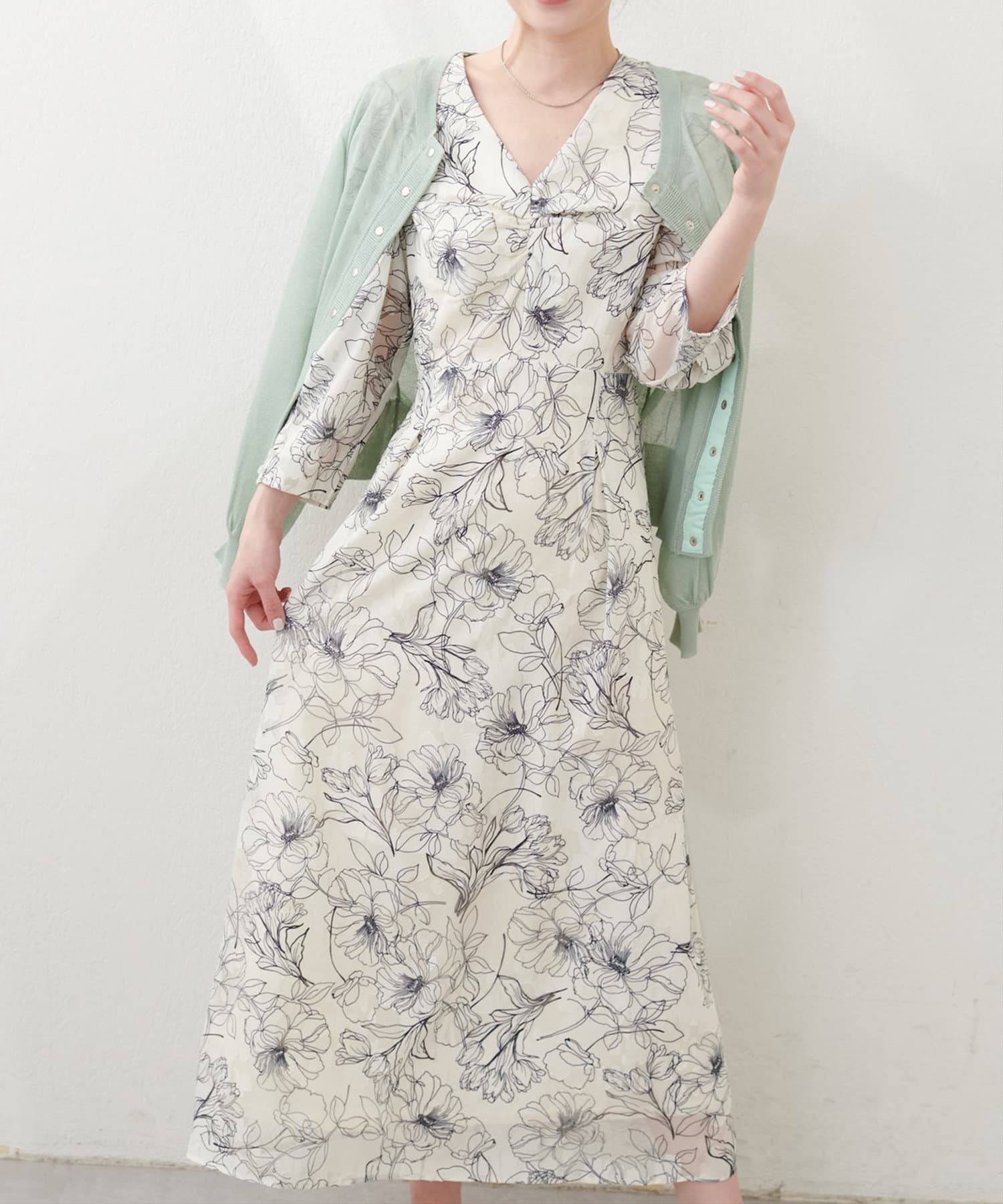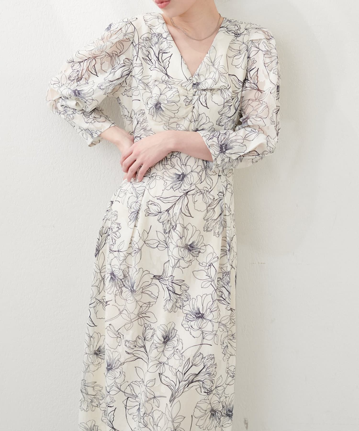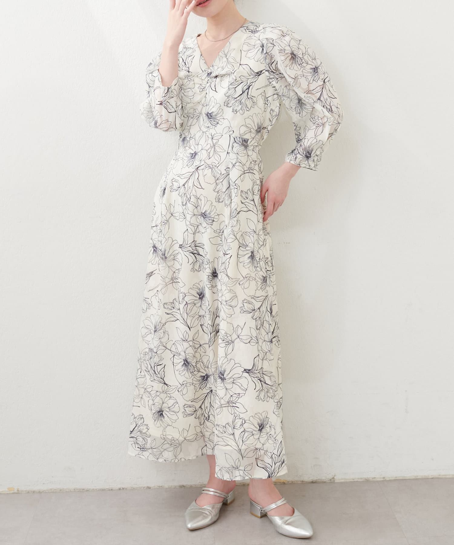 華やかで繊細な線画ジャガード柄で大人っぽくコーデが決まるワンピース。