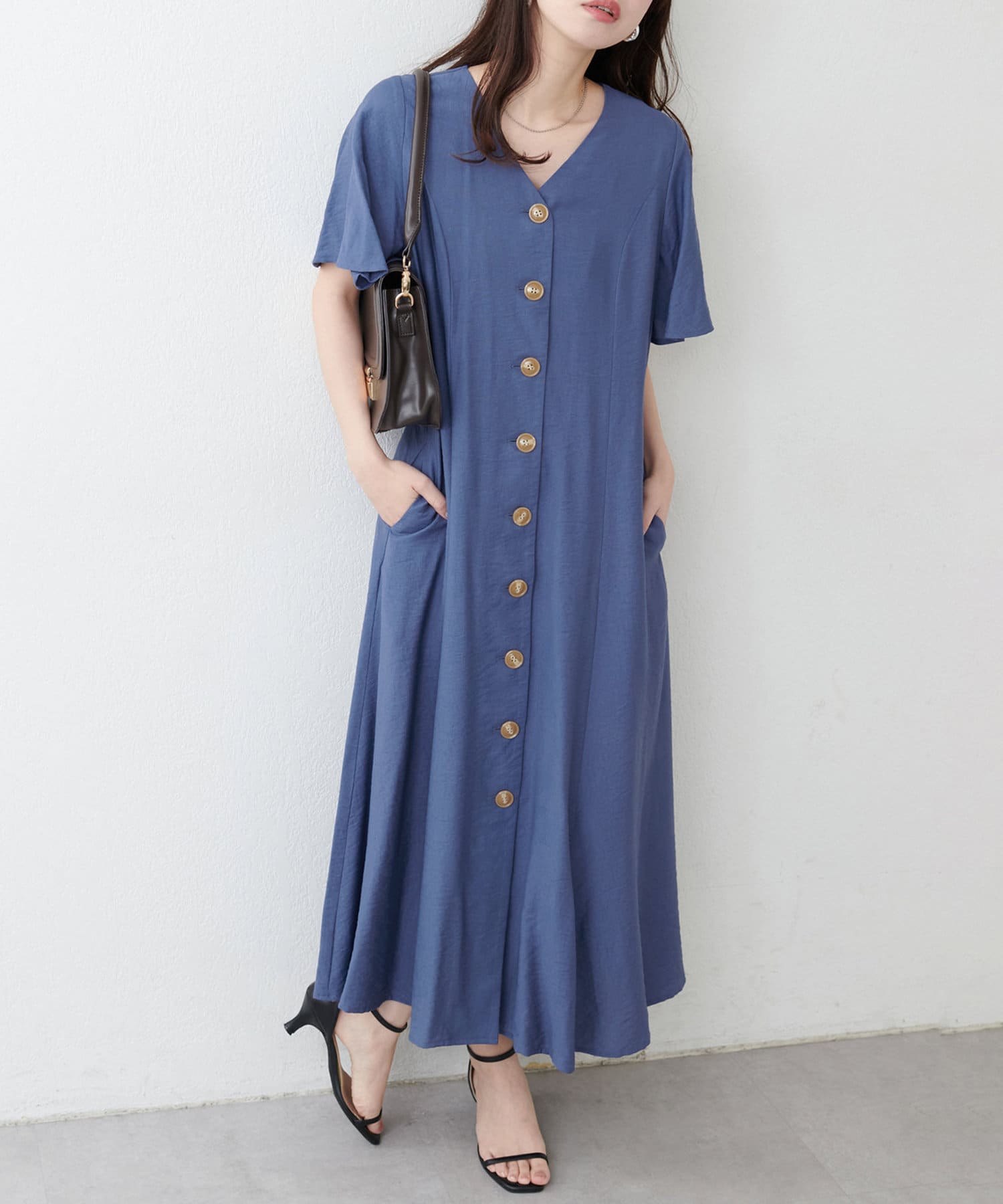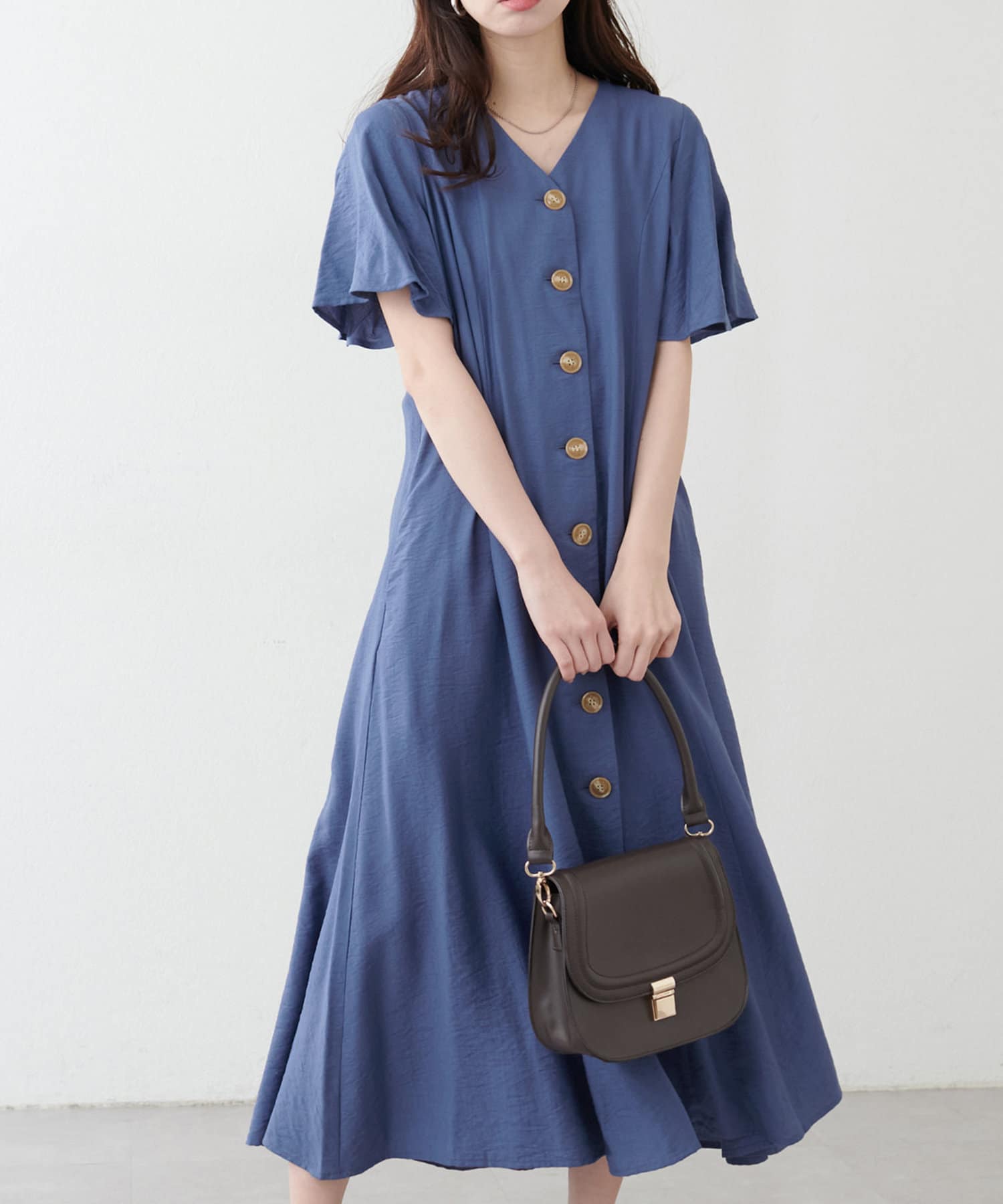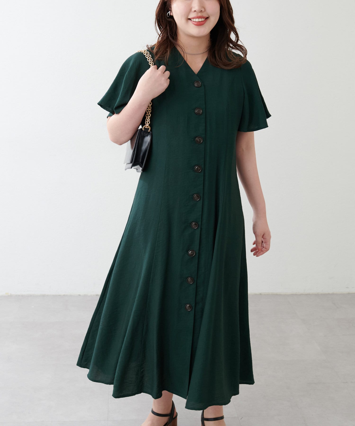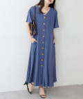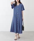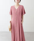【natural couture】<ako>釦開きフレアスリーブワンピース