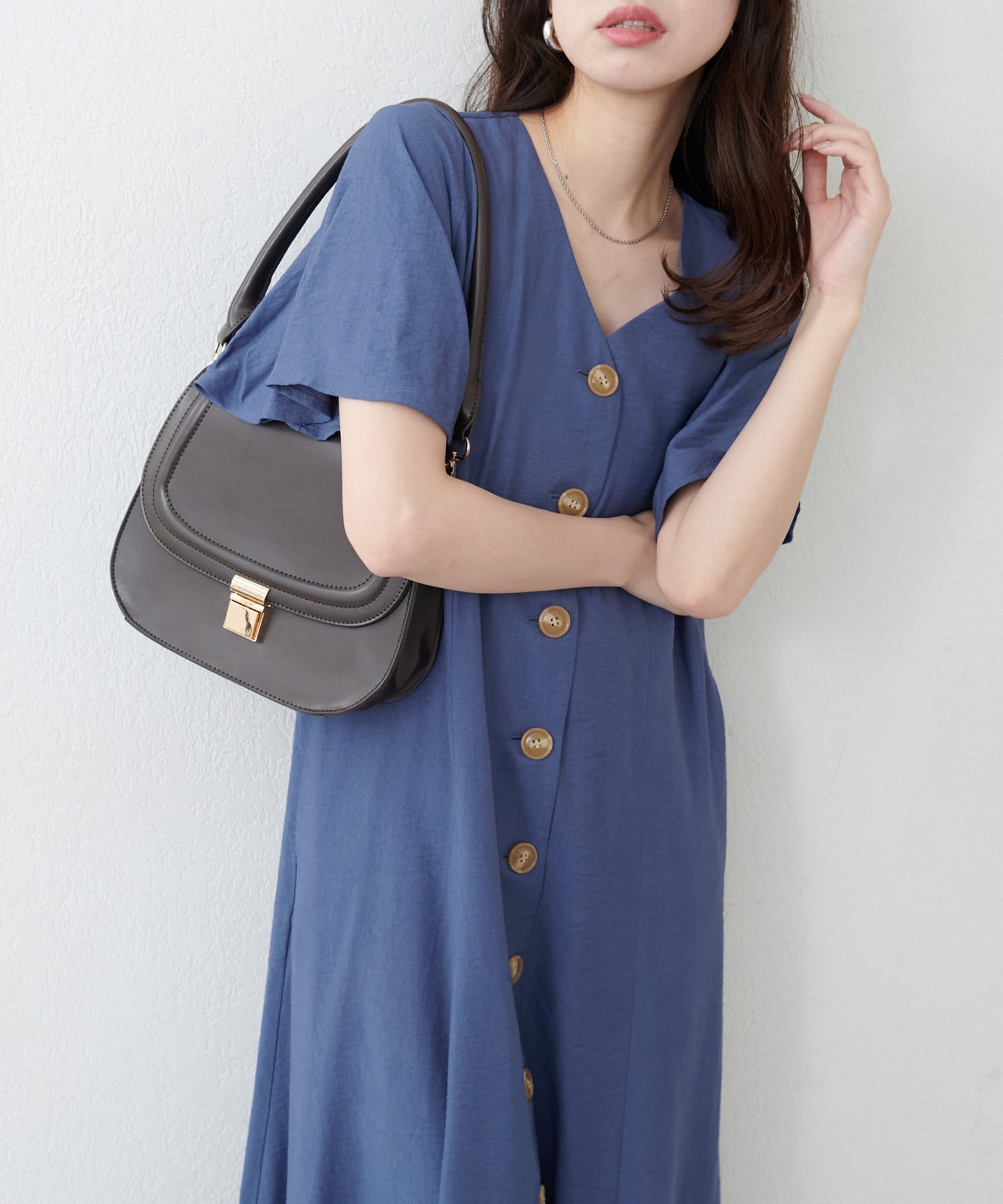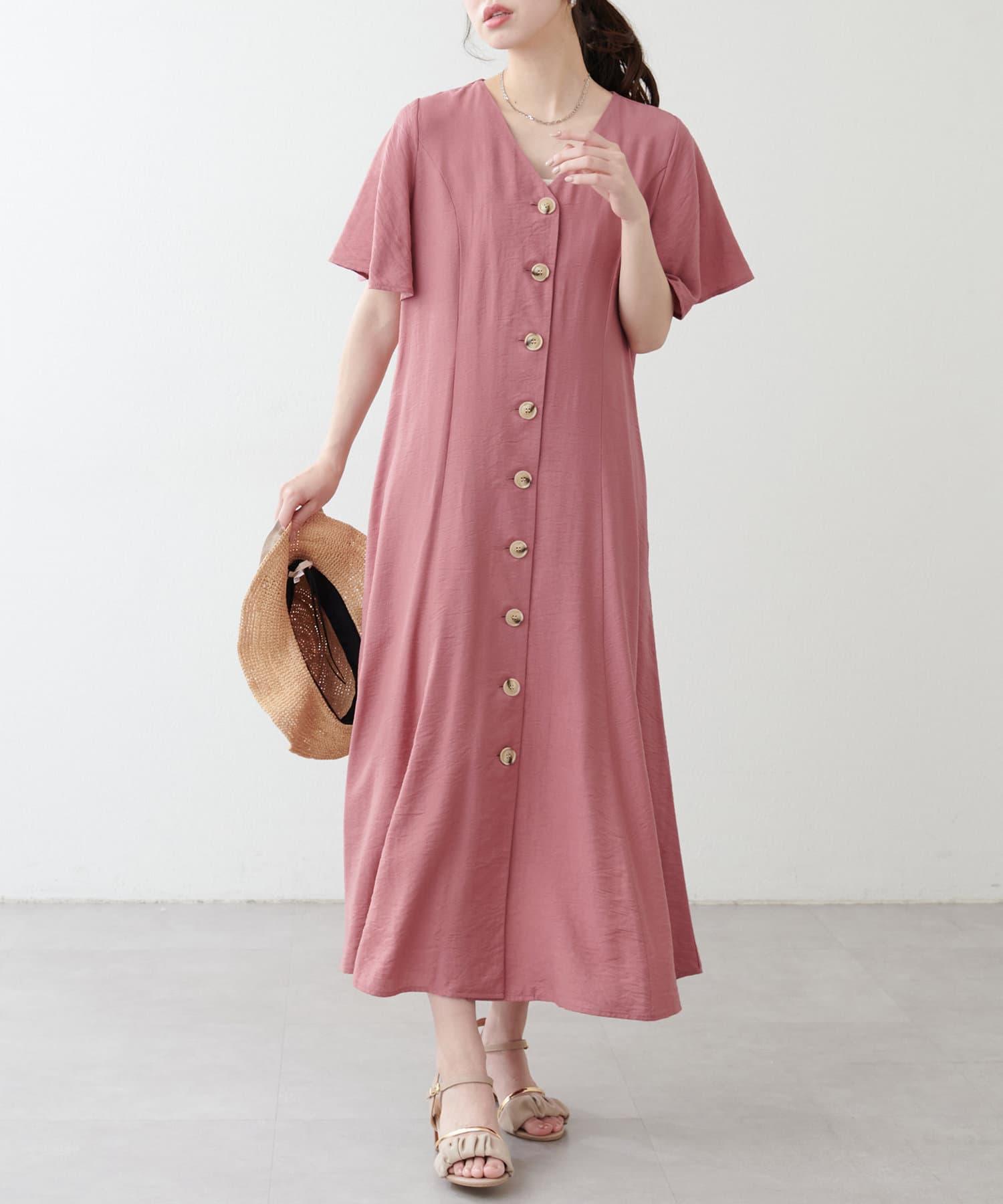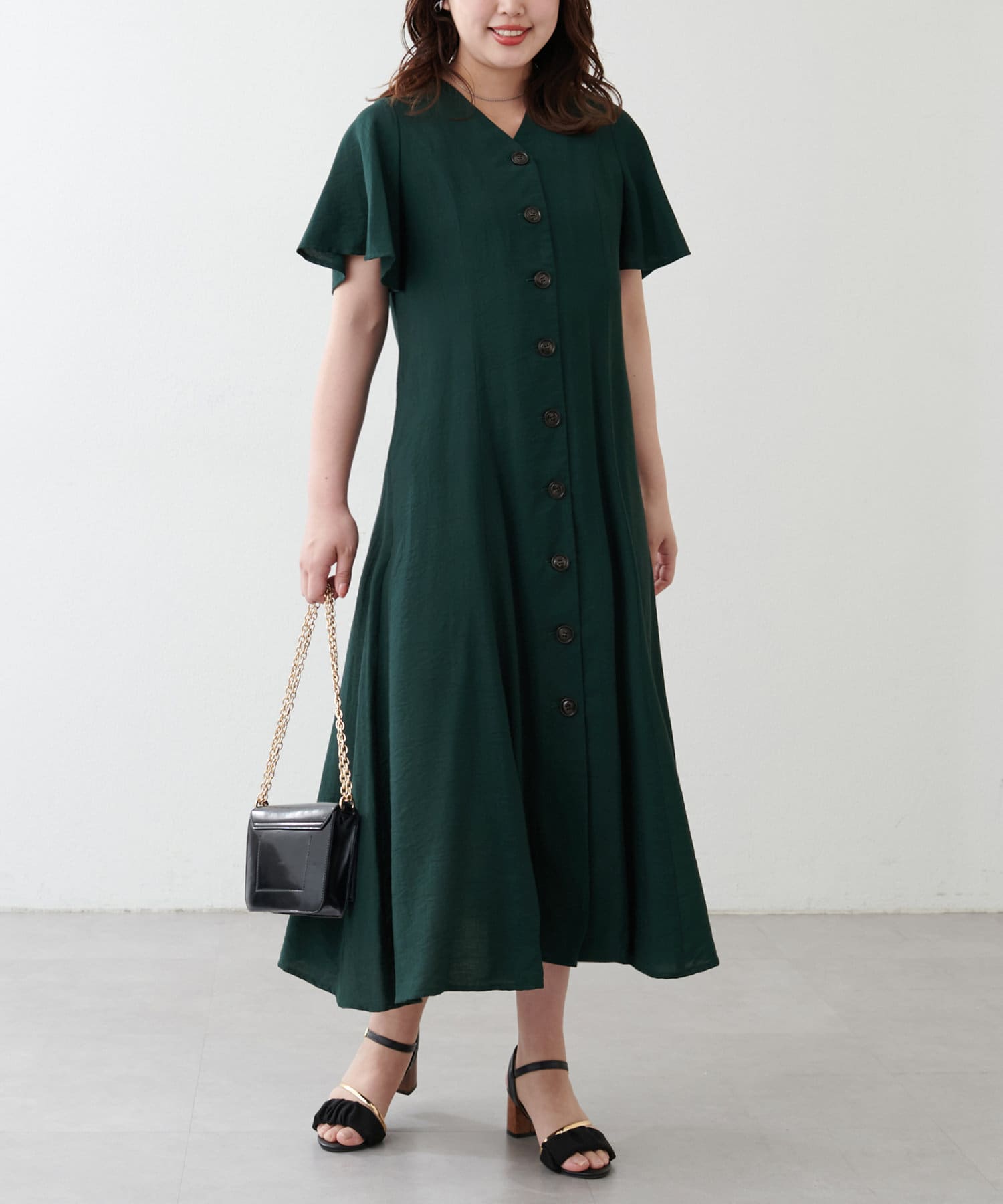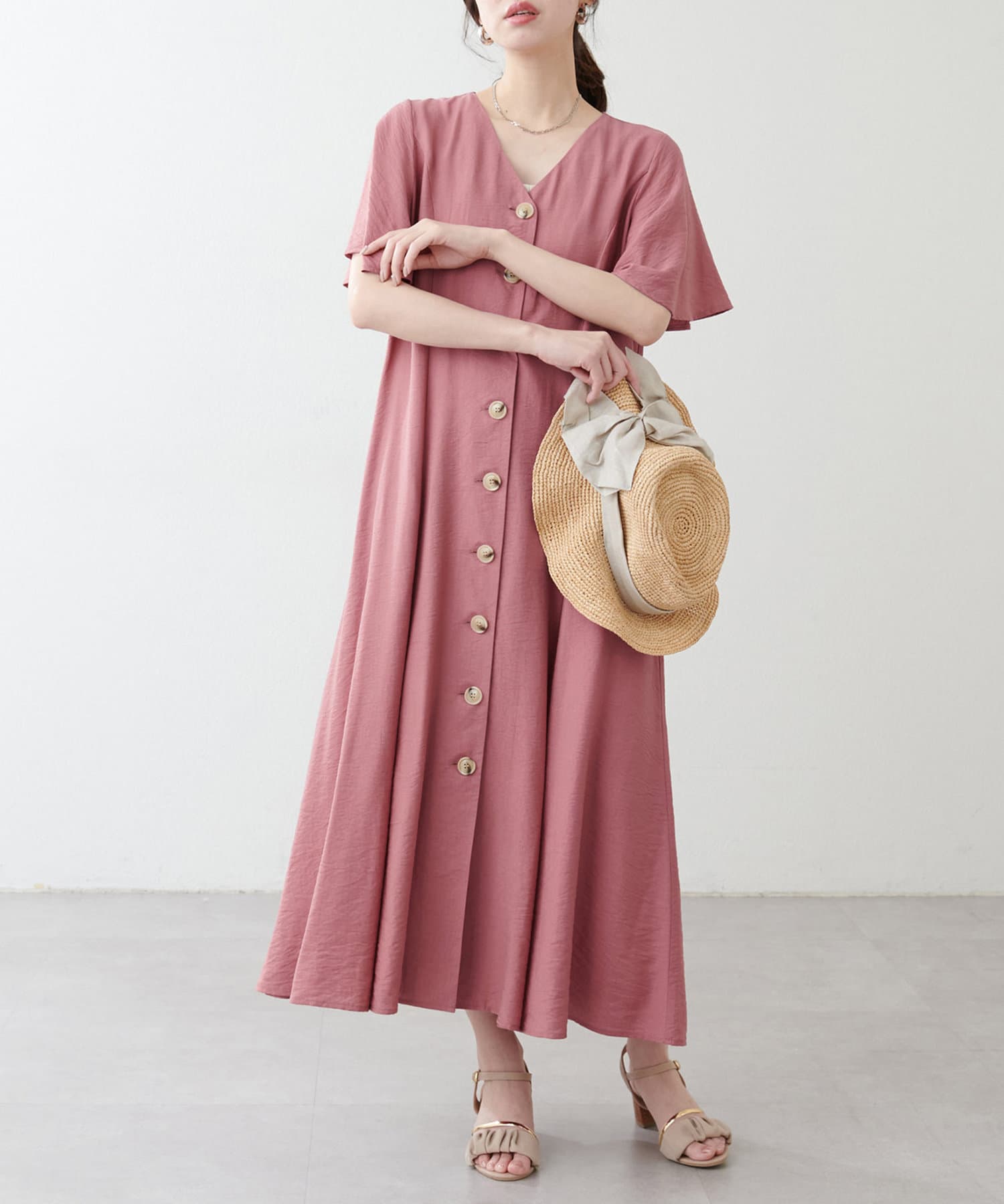 【natural couture】<ako>釦開きフレアスリーブワンピース