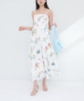 オリジナルの花柄素材をたっぷり使い、一面に咲き誇る繊細な花柄が美しいワンピース。