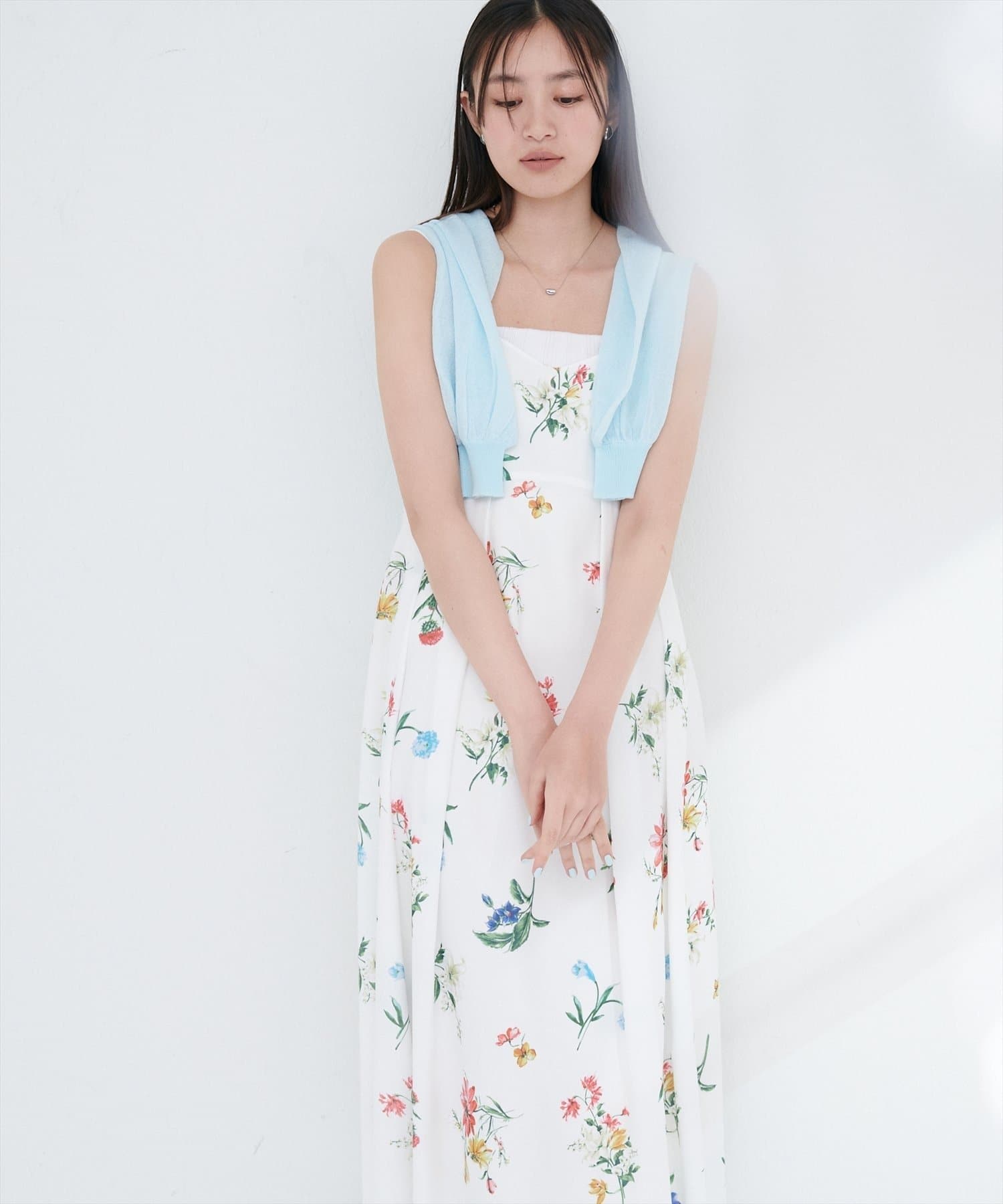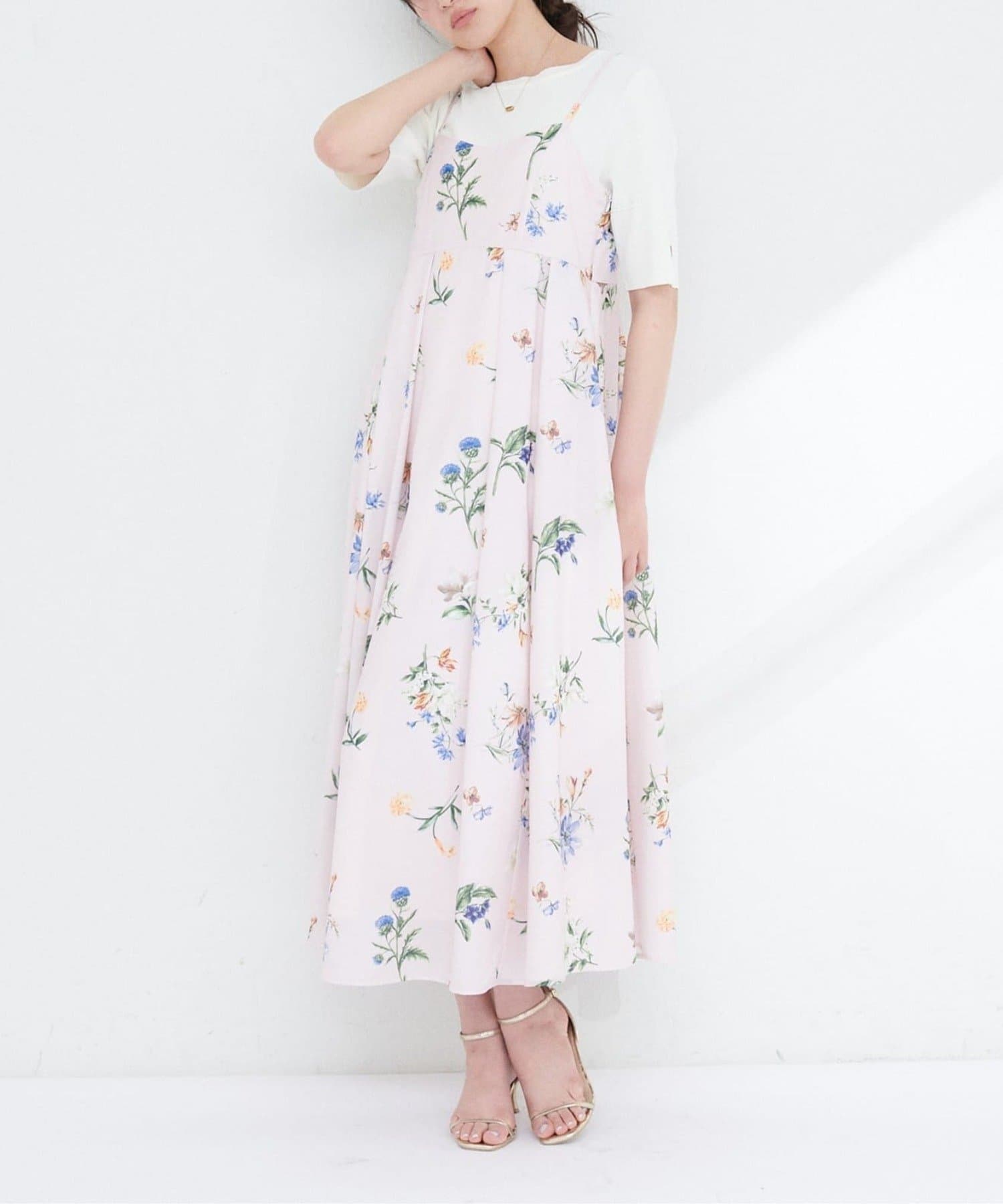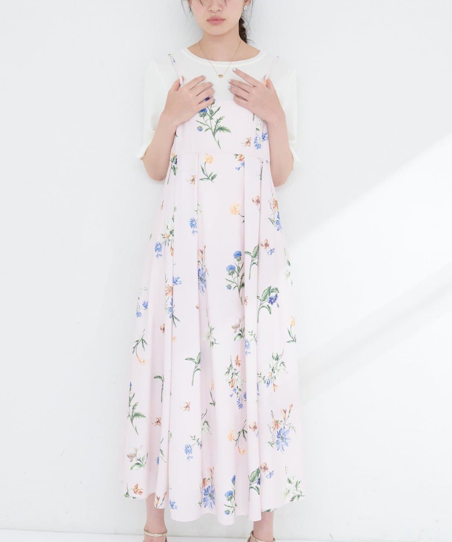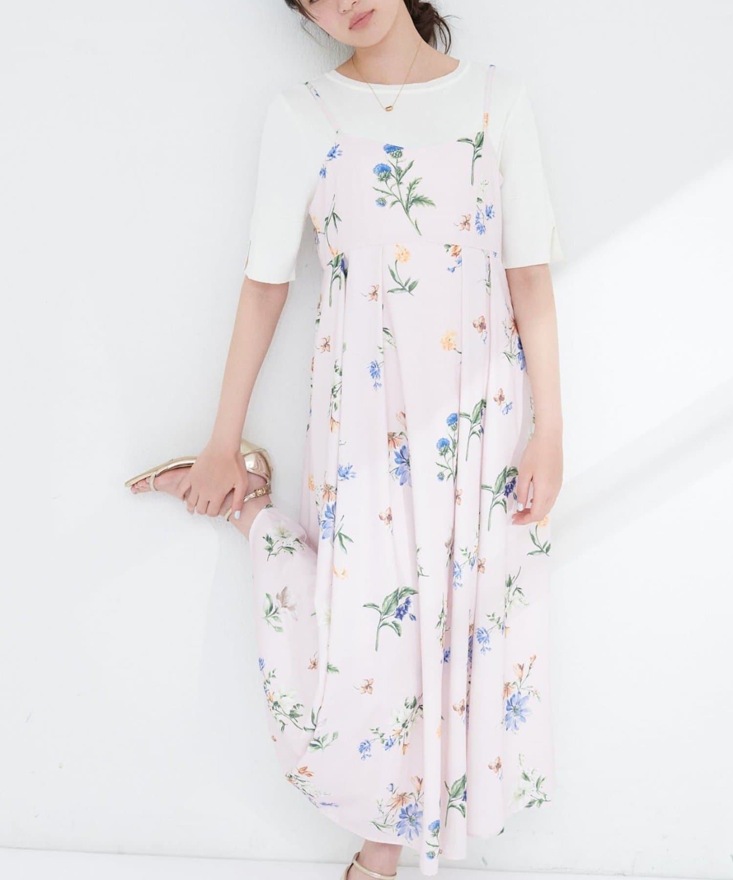 【natural couture】ガーデンフラワー柄フレアキャミワンピース