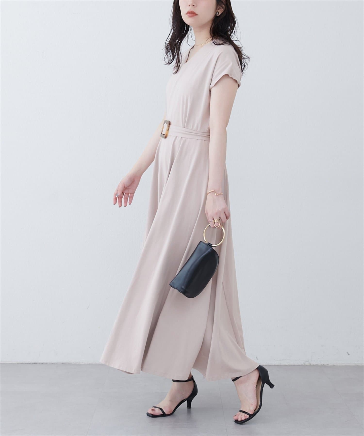 【natural couture】Vネックカットソーワンピース