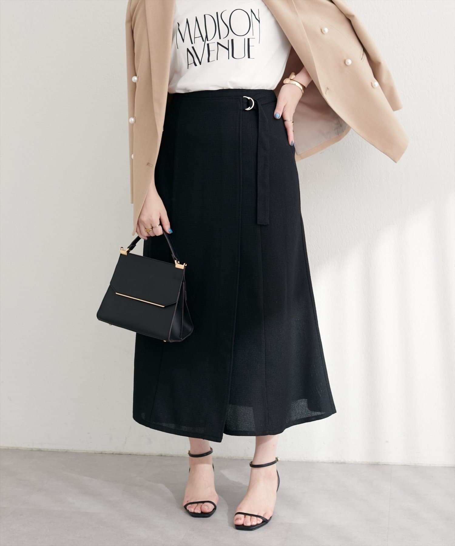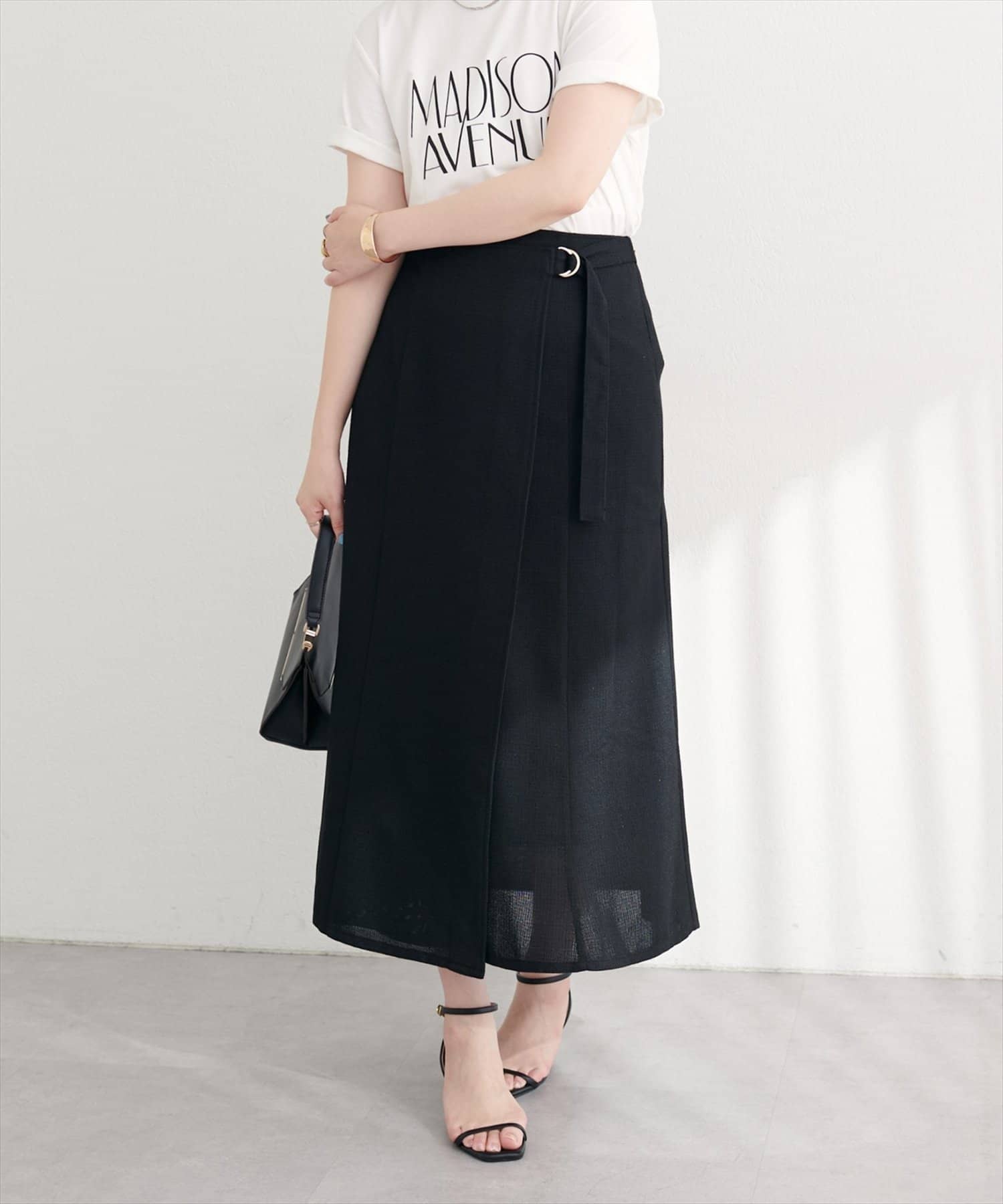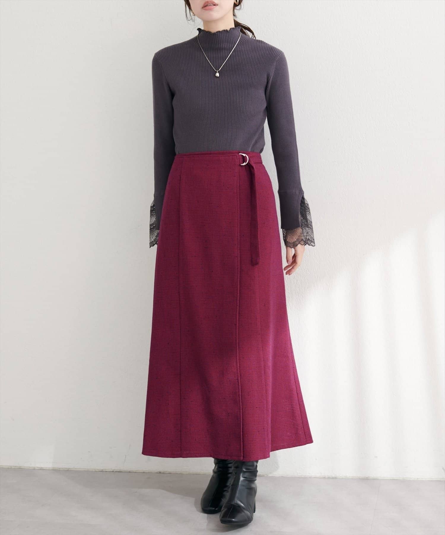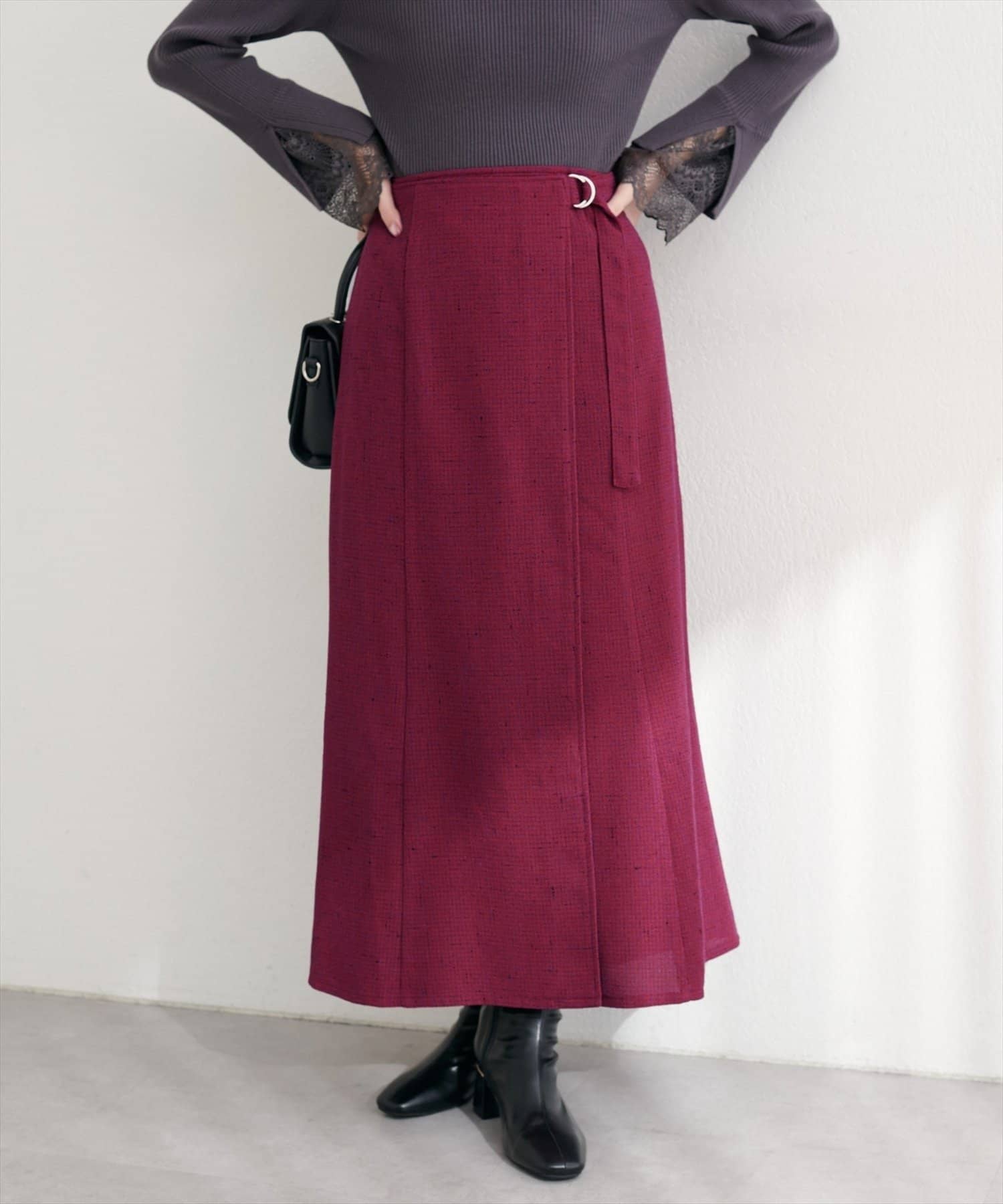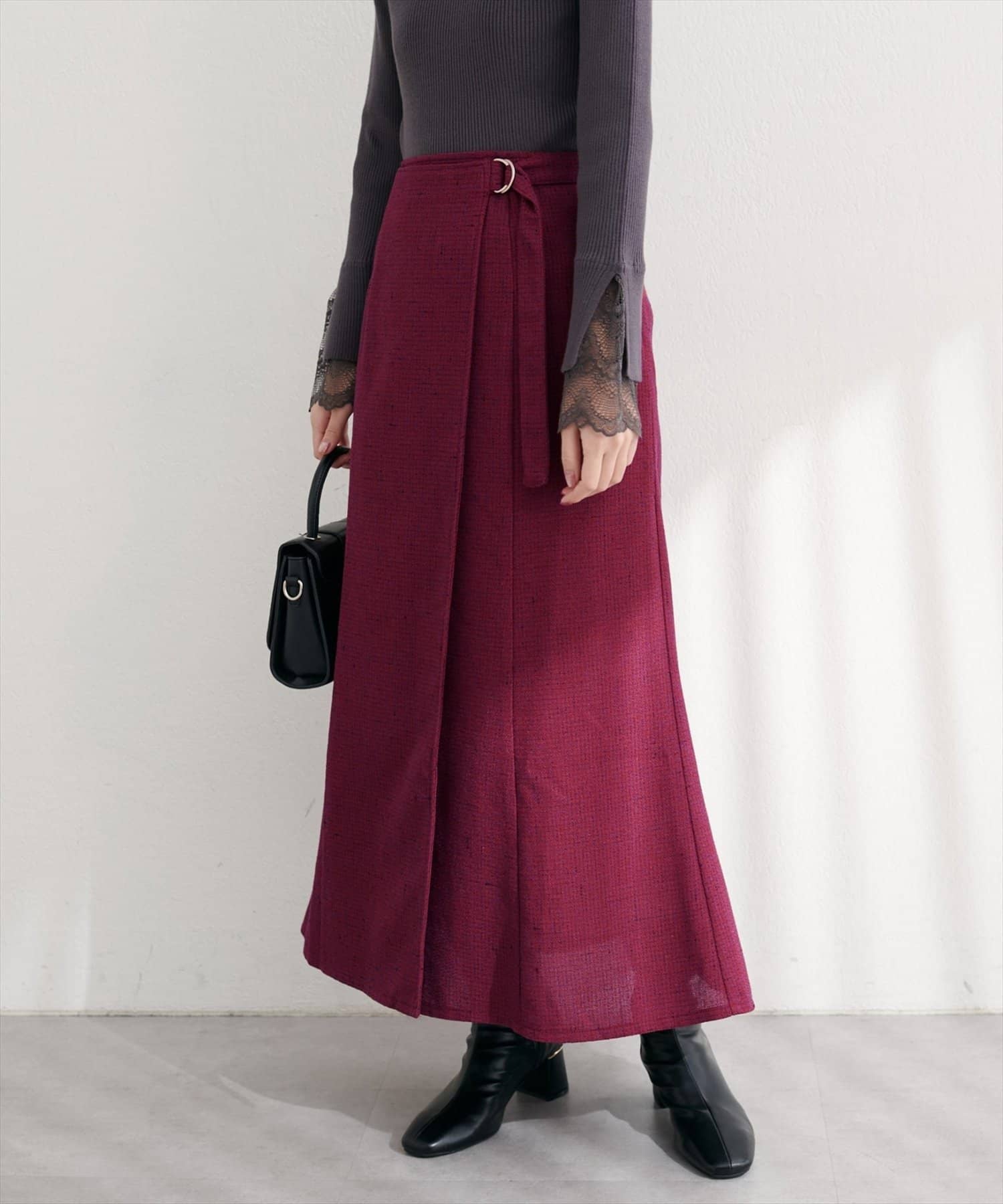 大人の女性らしさを引き出す、ラップ風ツイードスカート。