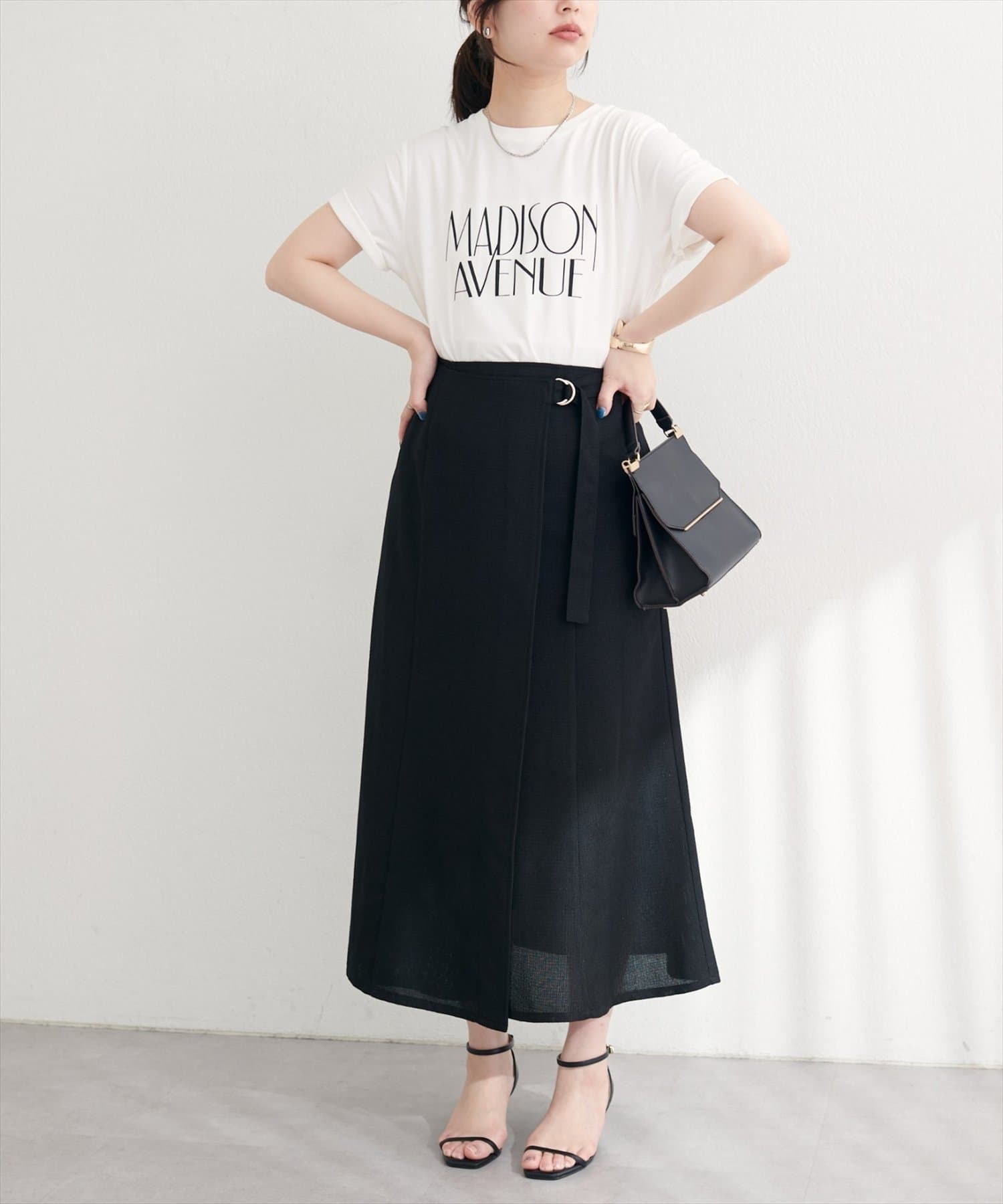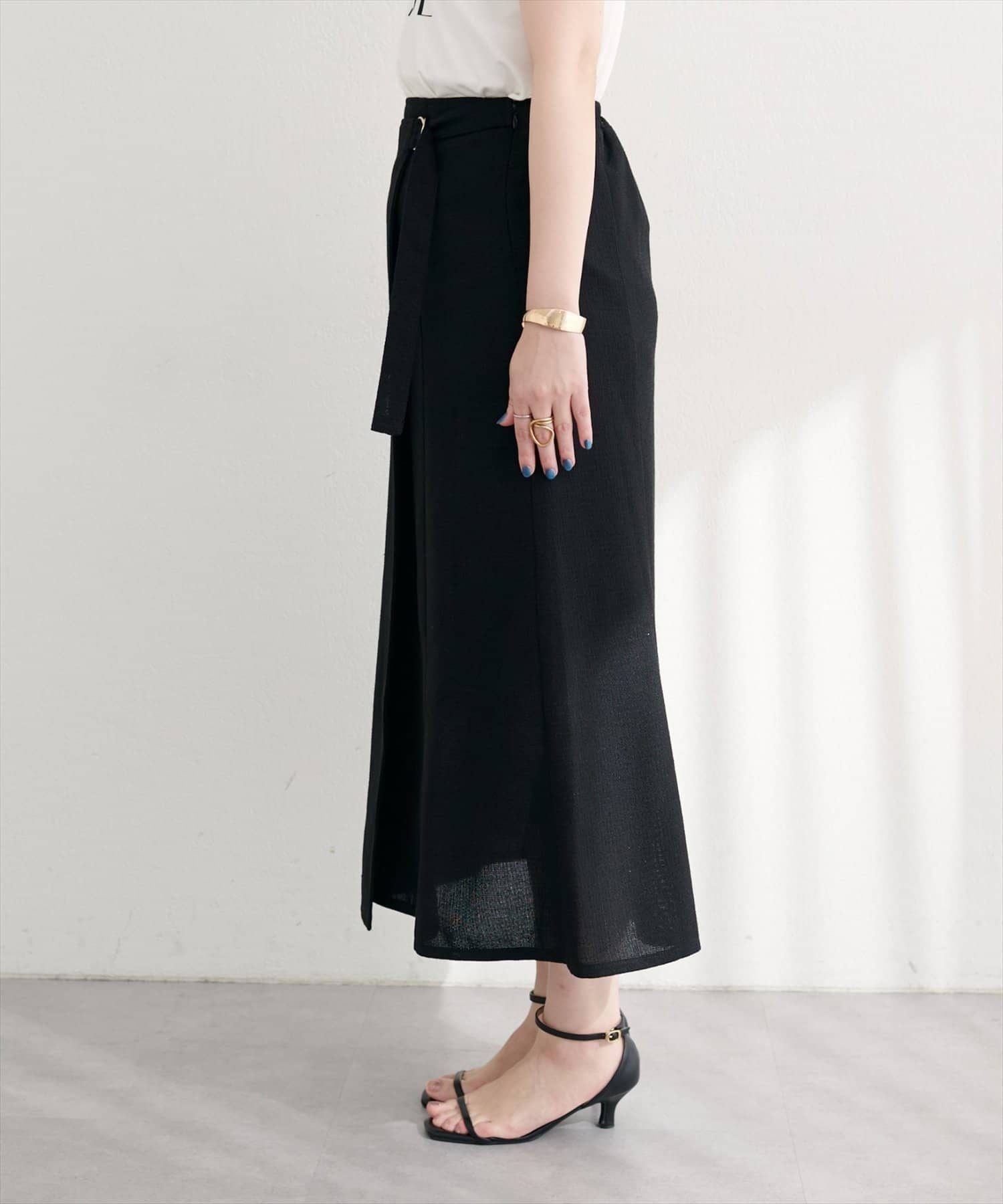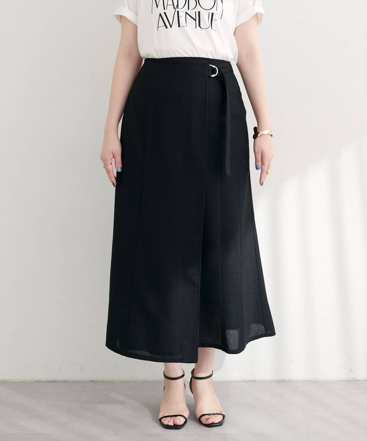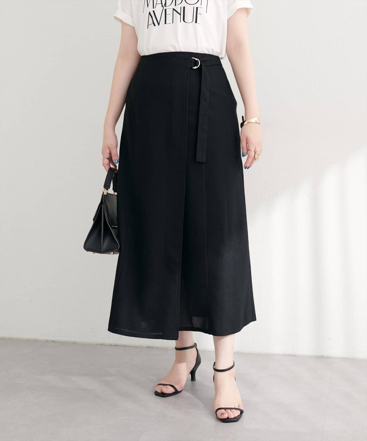 大人の女性らしさを引き出す、ラップ風ツイードスカート。