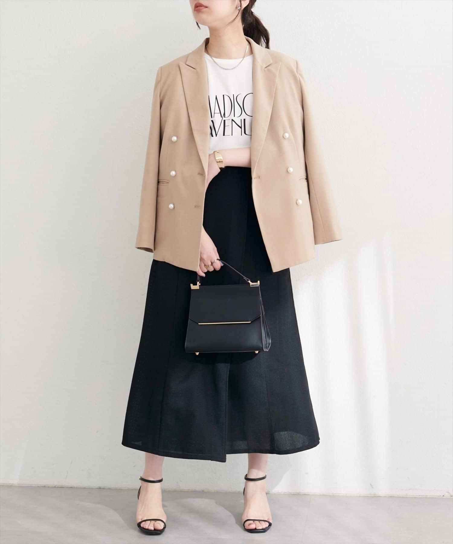 ブラウスやニットと合わせて、きちんと感のあるオフィススタイルに。