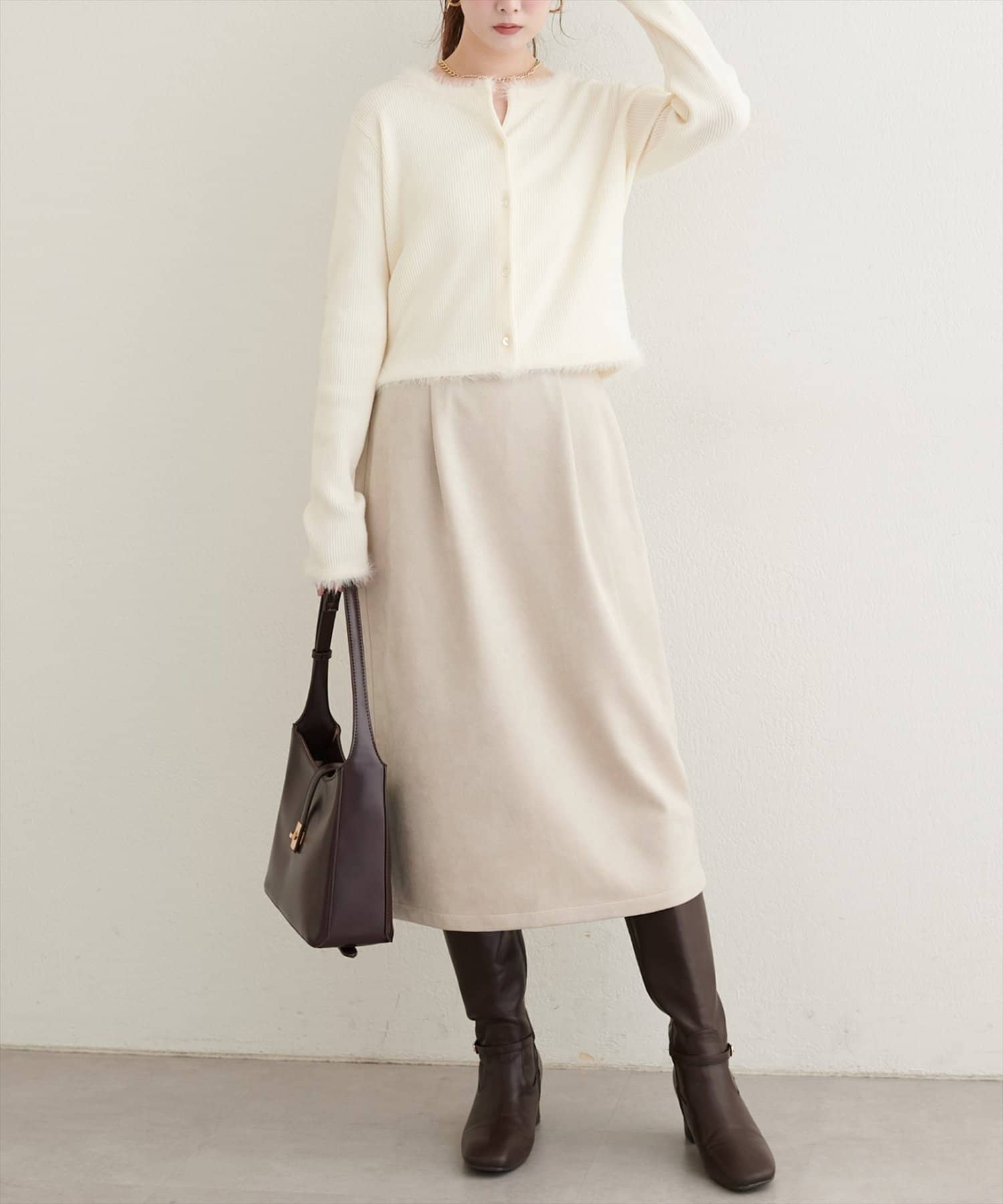 ブラウスと合わせてオフィススタイルに、ニットと合わせてカジュアルスタイルに。