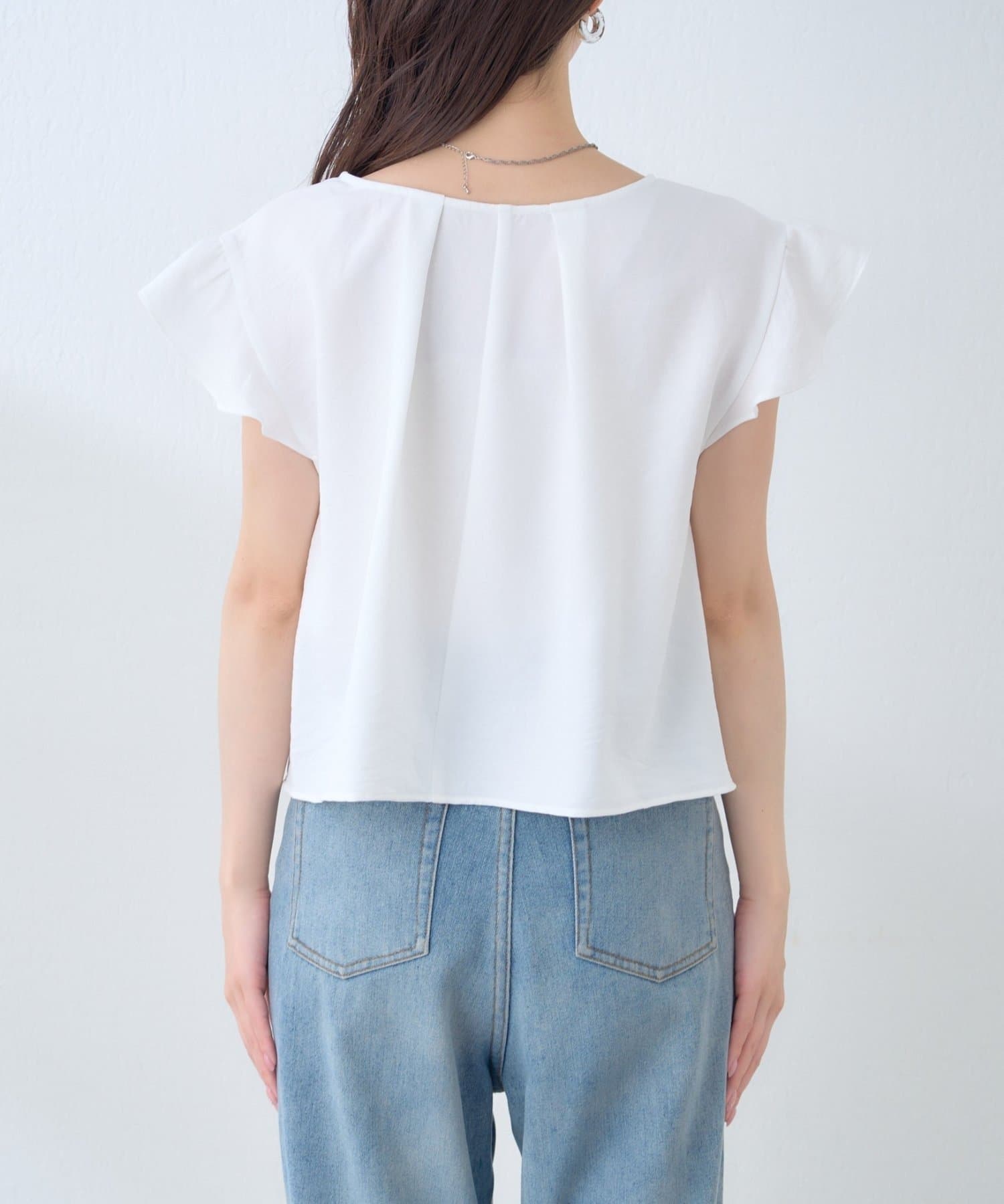 フレンチスリーブで二の腕をさりげなくカバーし、華奢見え効果も期待できます。