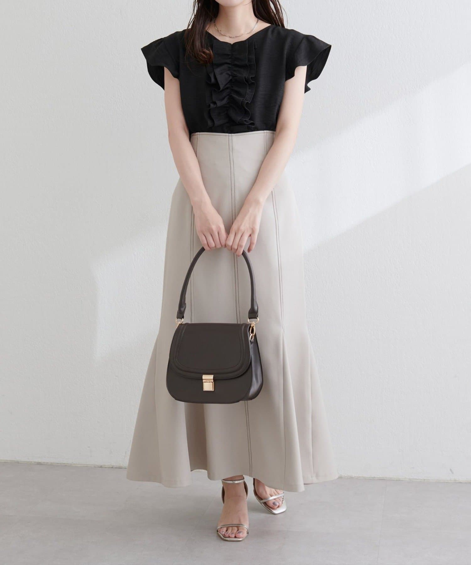 タイトスカートやスラックスを合わせれば、オフィスにも最適なきちんとスタイルに。