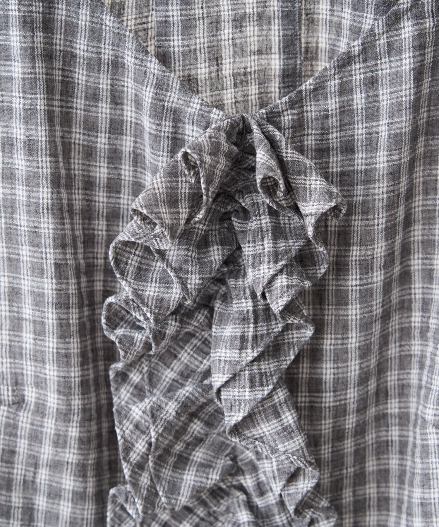 胸元にあしらわれたフリルは、動くたびに優雅な表情を見せ、着る人の魅力を引き立てます。