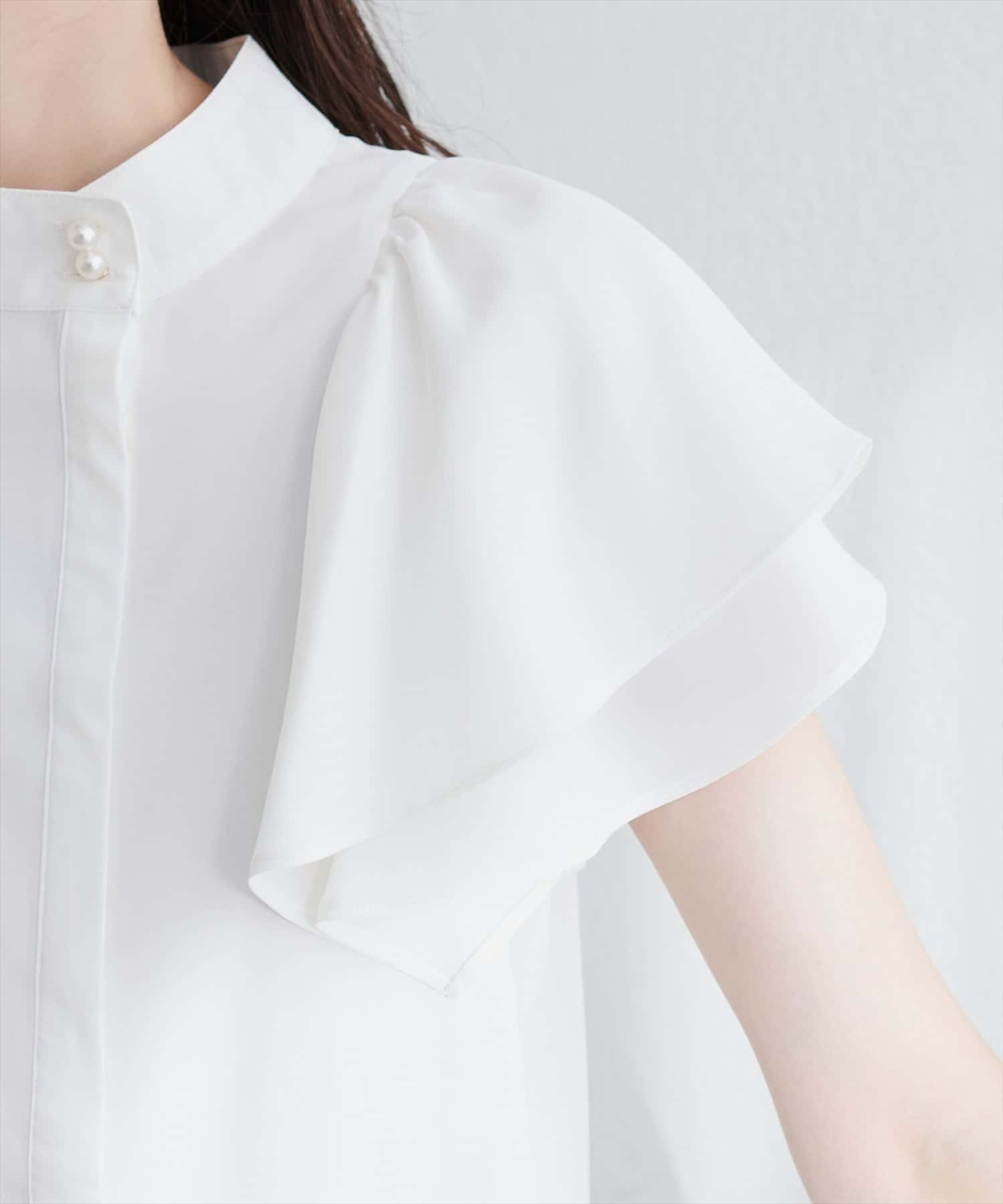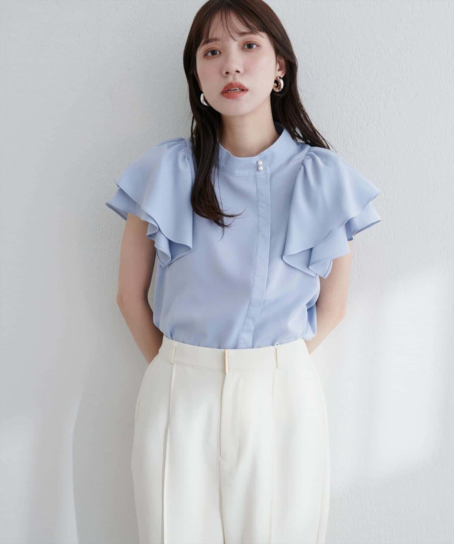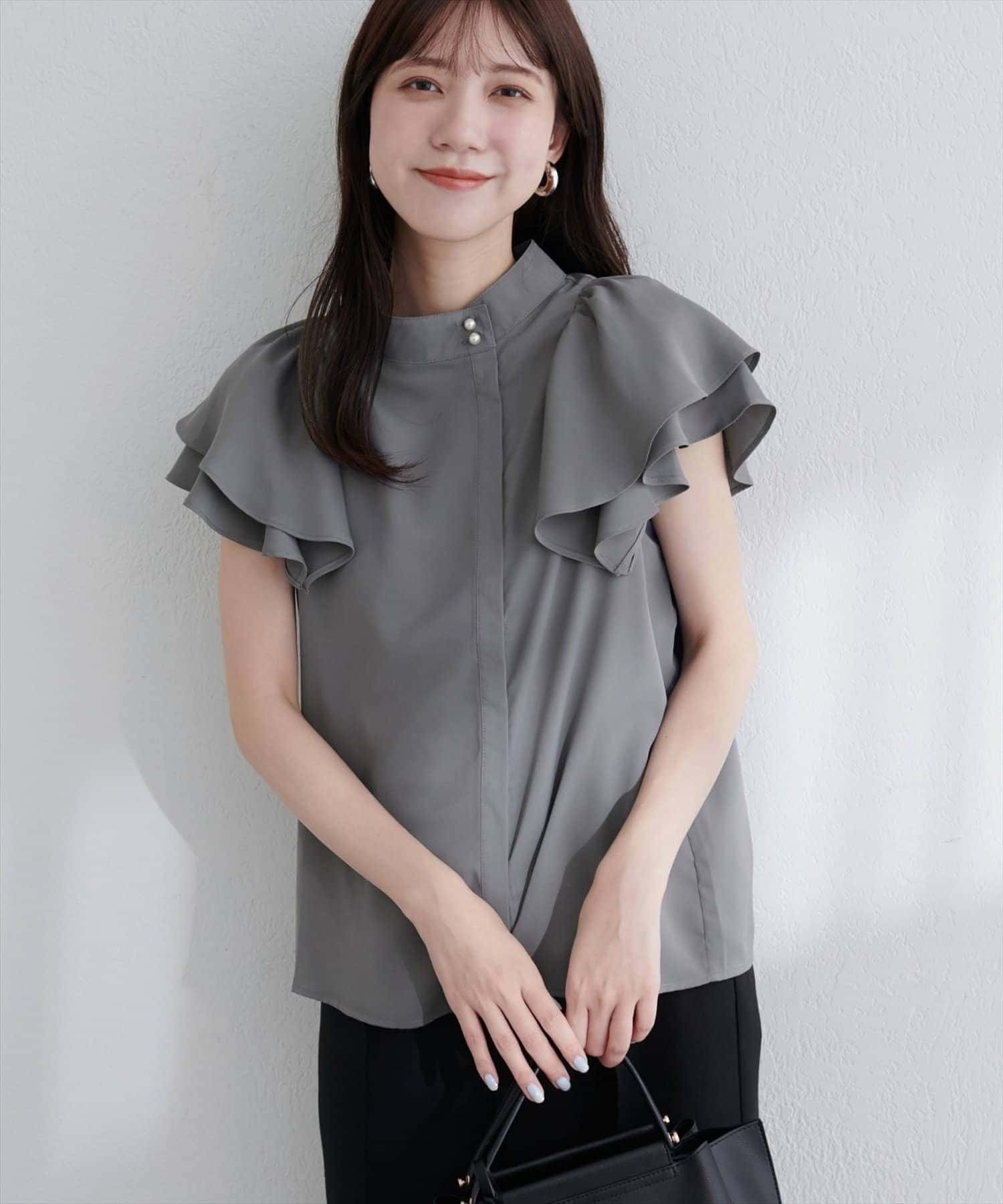 程良い甘さのラッフルフリルを贅沢に2枚仕立てにし、立体感のあるデザインに仕上げた大人レディな1着。