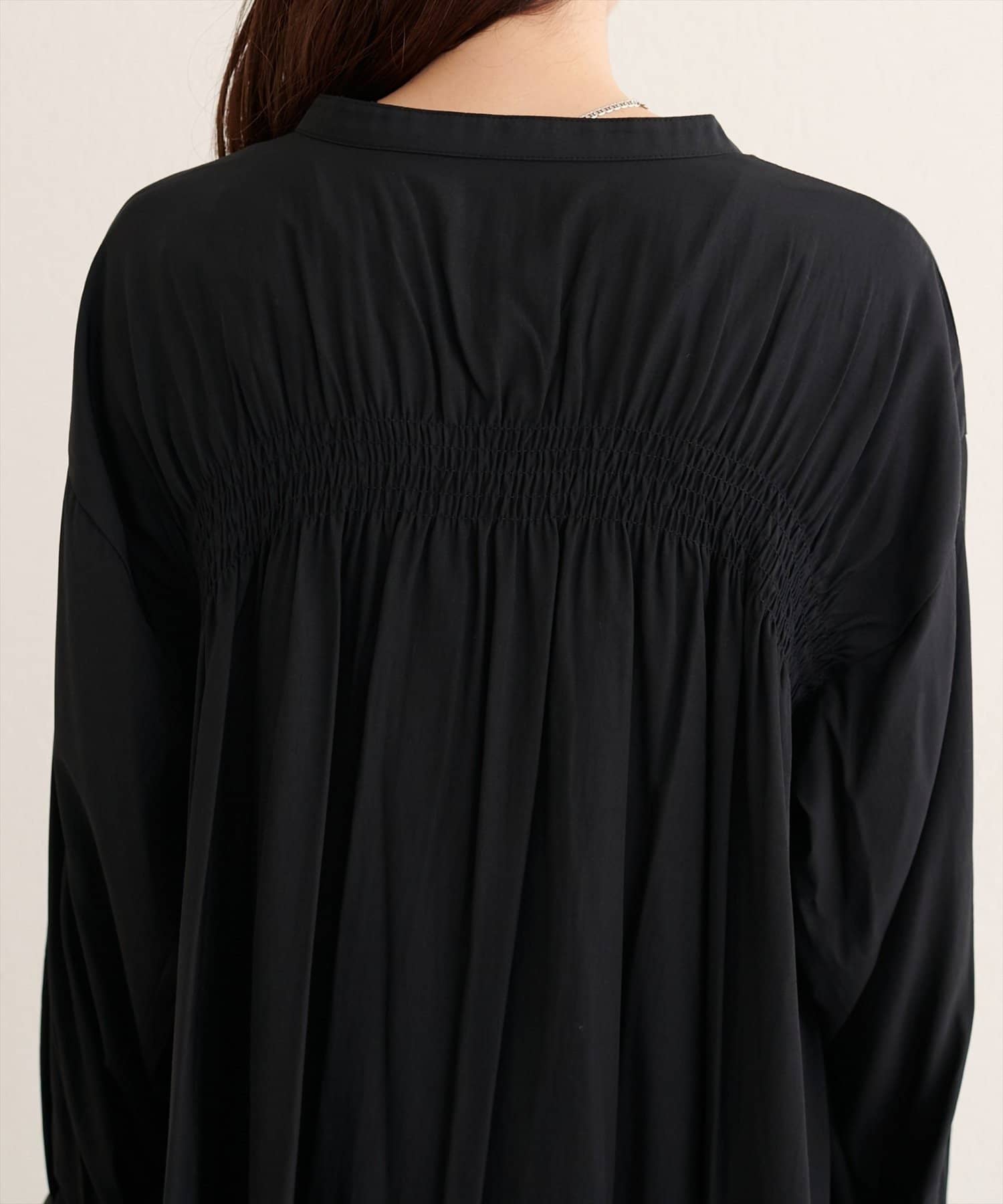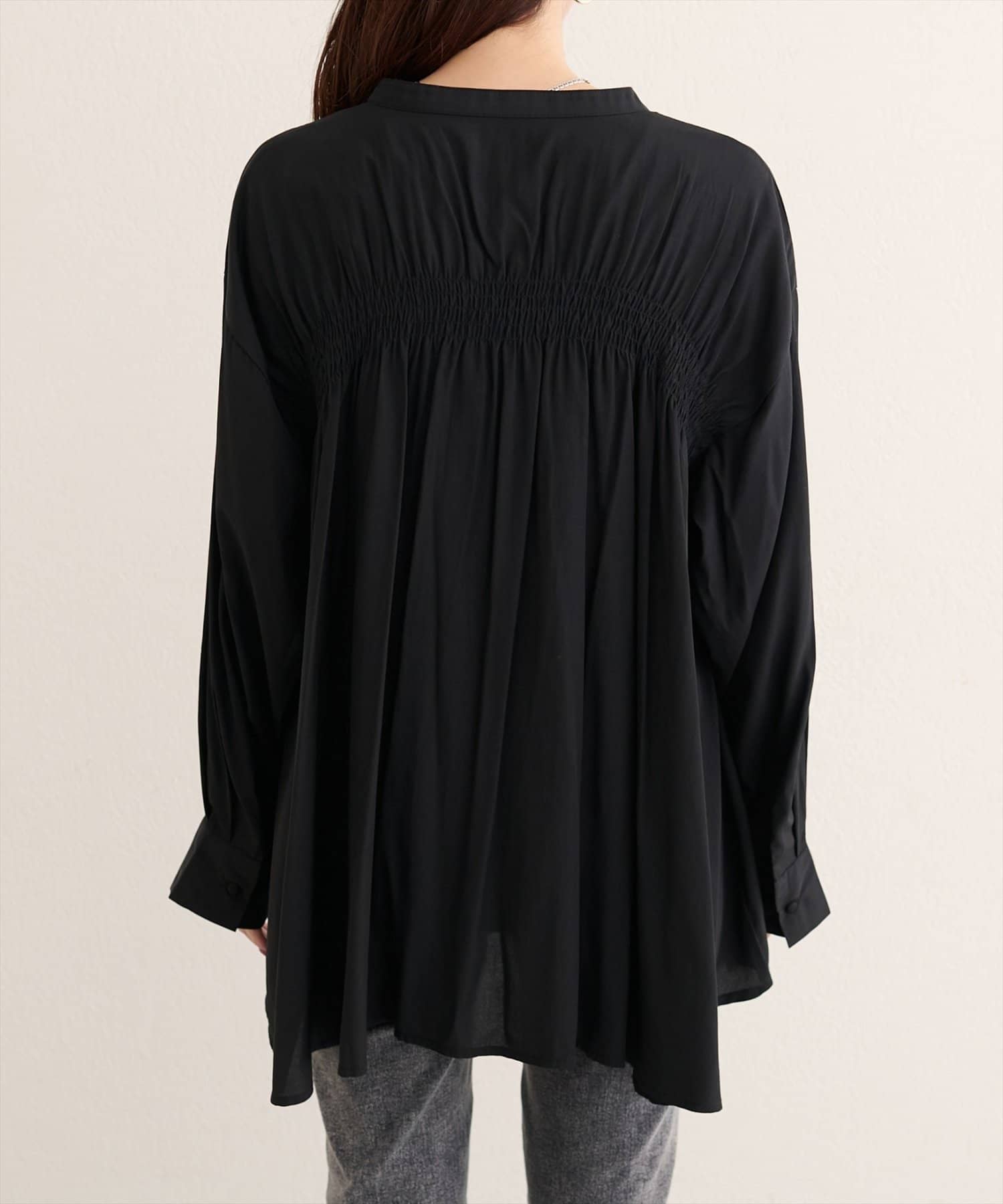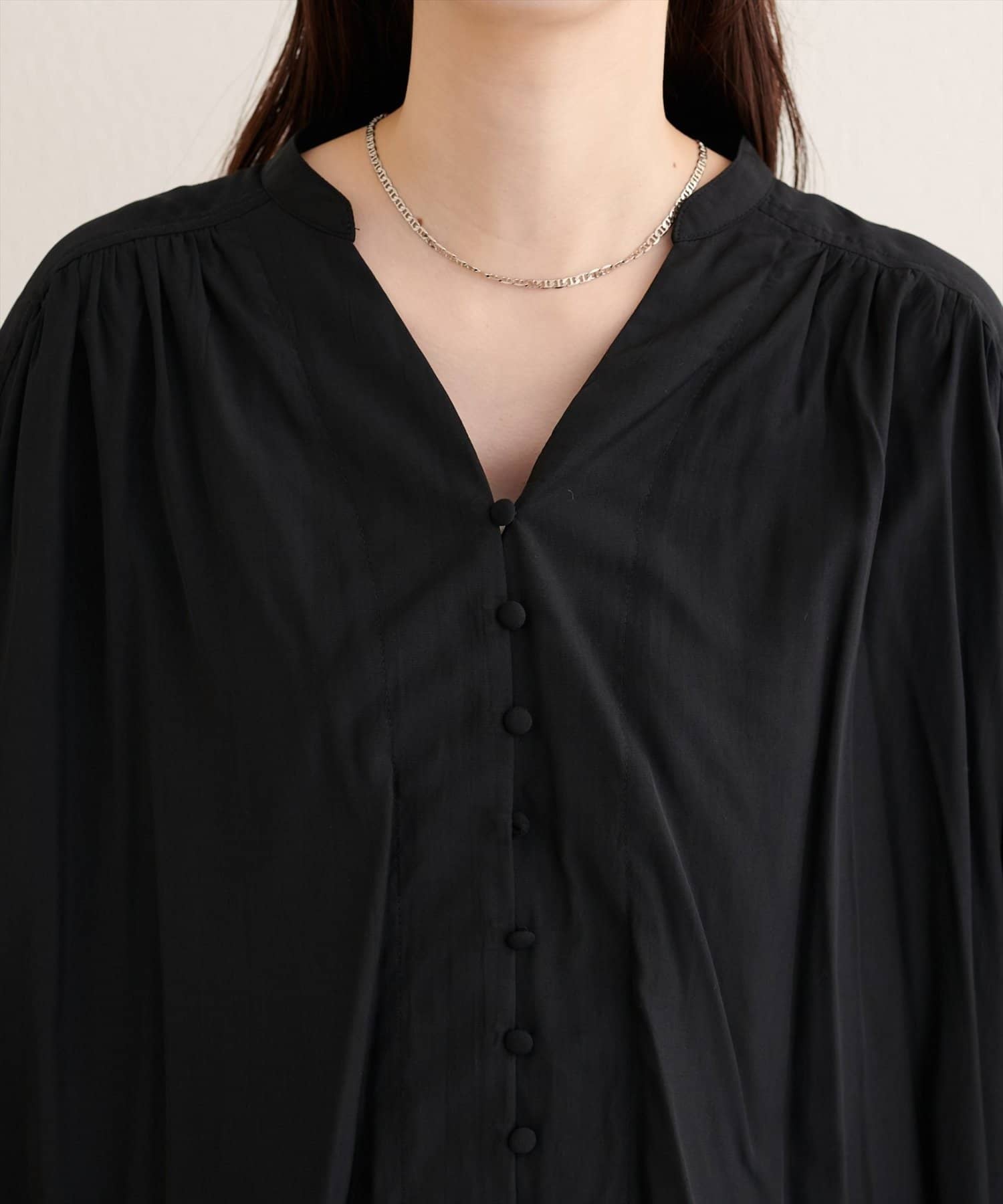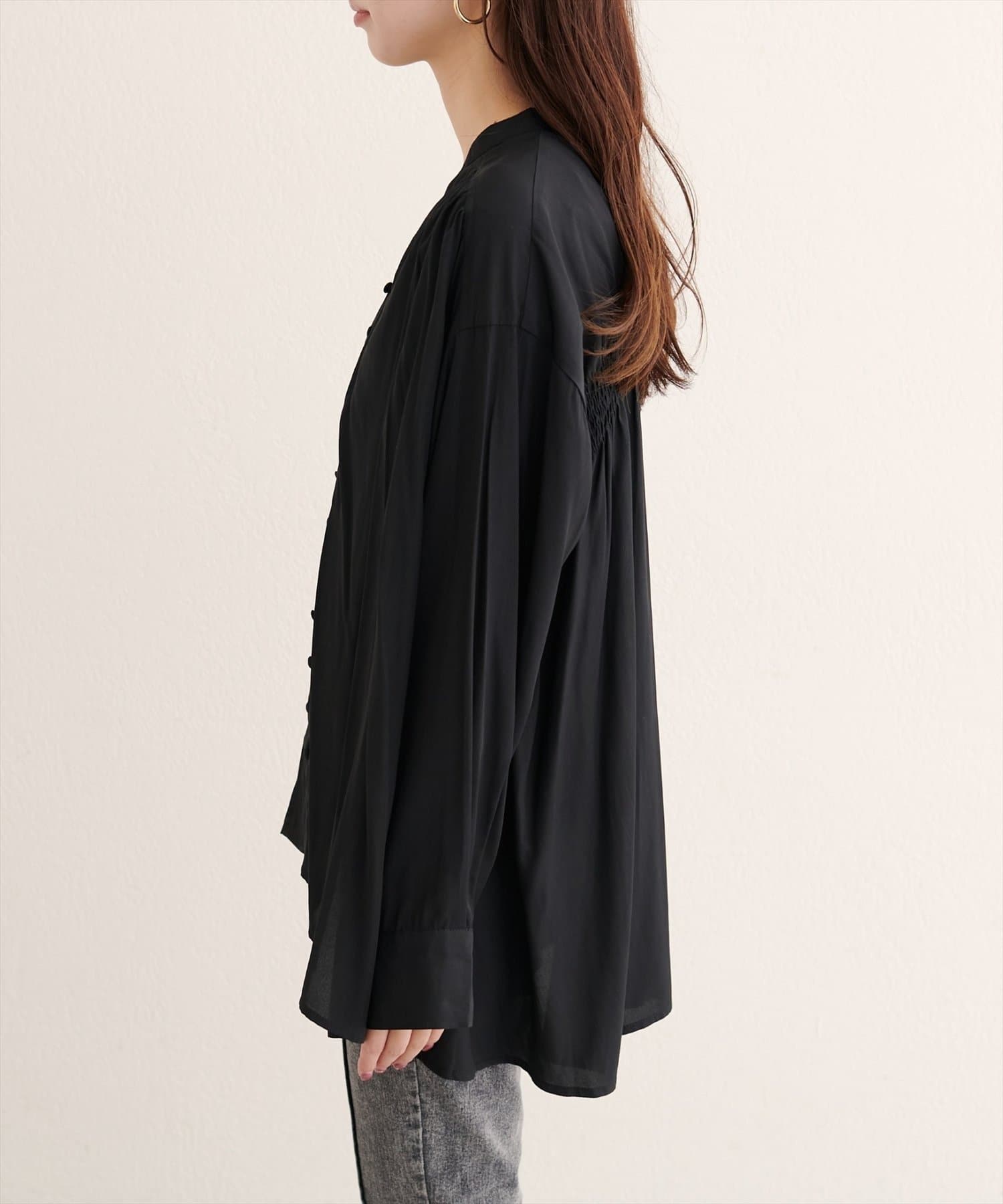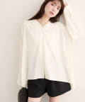 抜け感と上品さを両立した大人のための、ボタン開きゆるシャツブラウス。