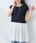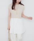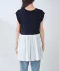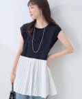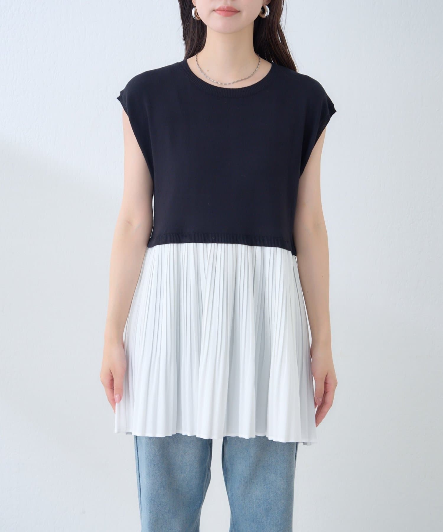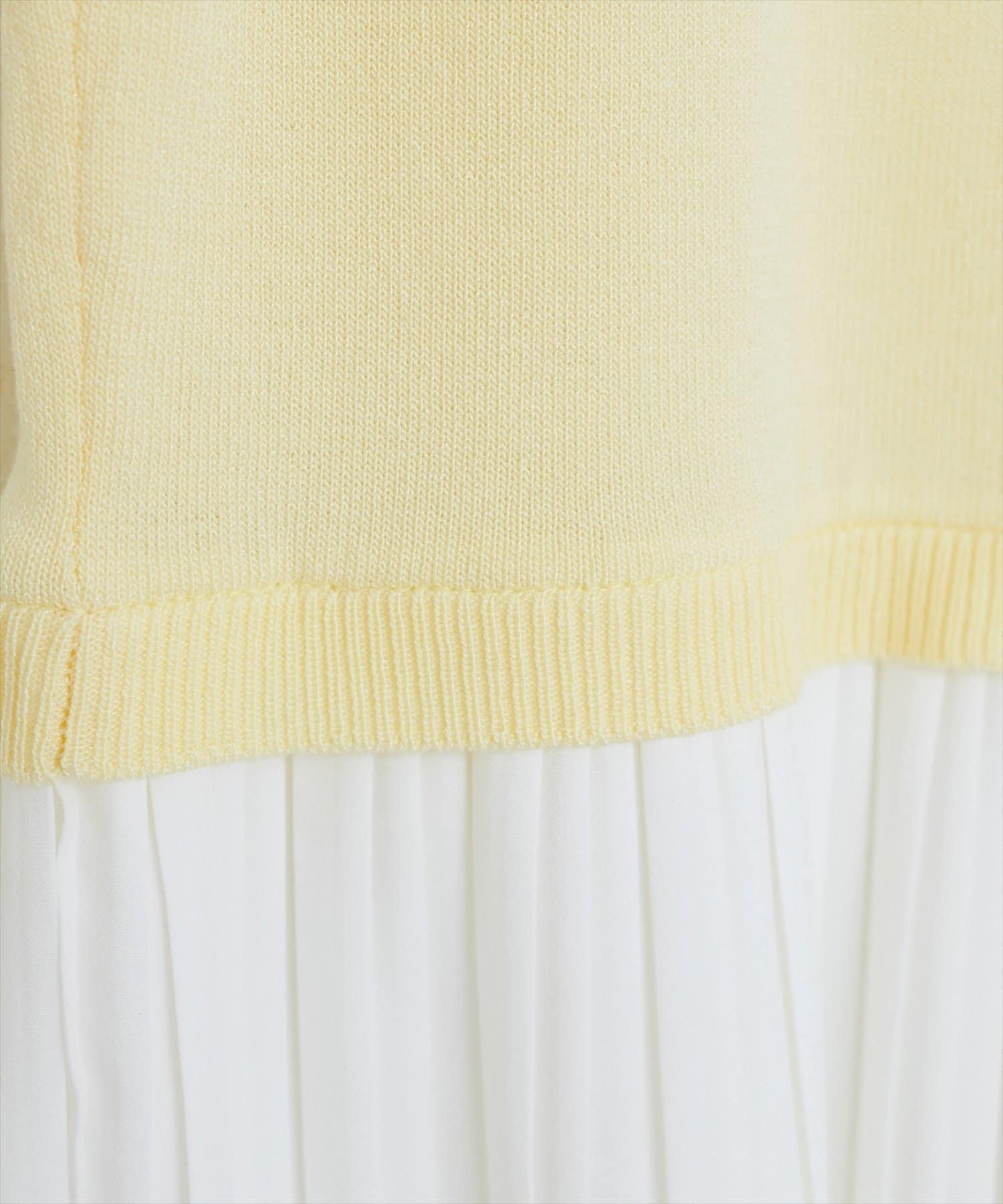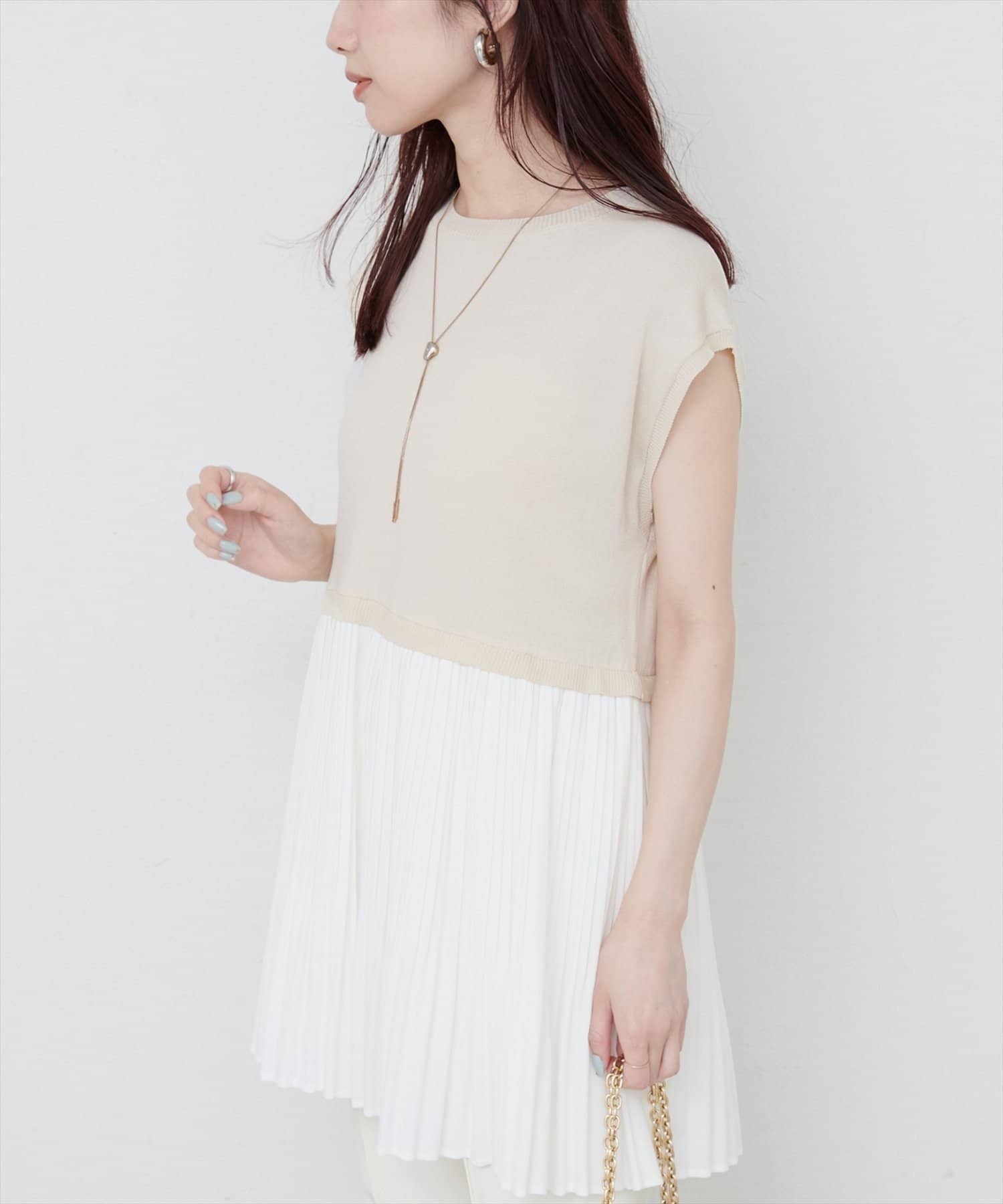 トップス部分のシンプルなニットと、繊細なプリーツがドッキングした、デザイン性の高い一枚。