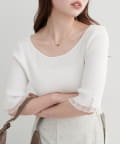 繊細なレースが目を引く、大人の女性のためのリブトップス。