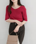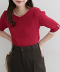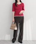 リブ素材がボディラインに優しくフィットし、女性らしいシルエットを演出。