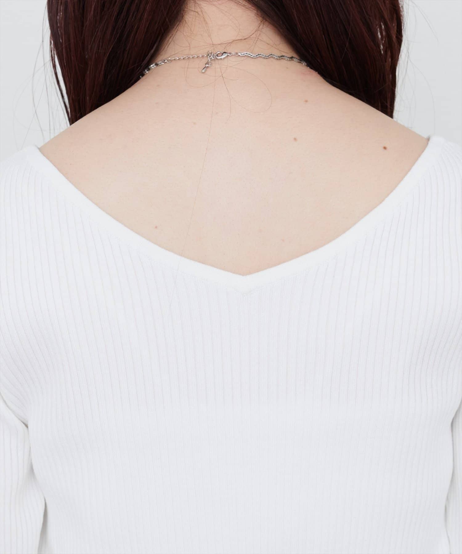 前後2WAYデザインで、ボートネックでも、Vネックでもお召頂けます。
