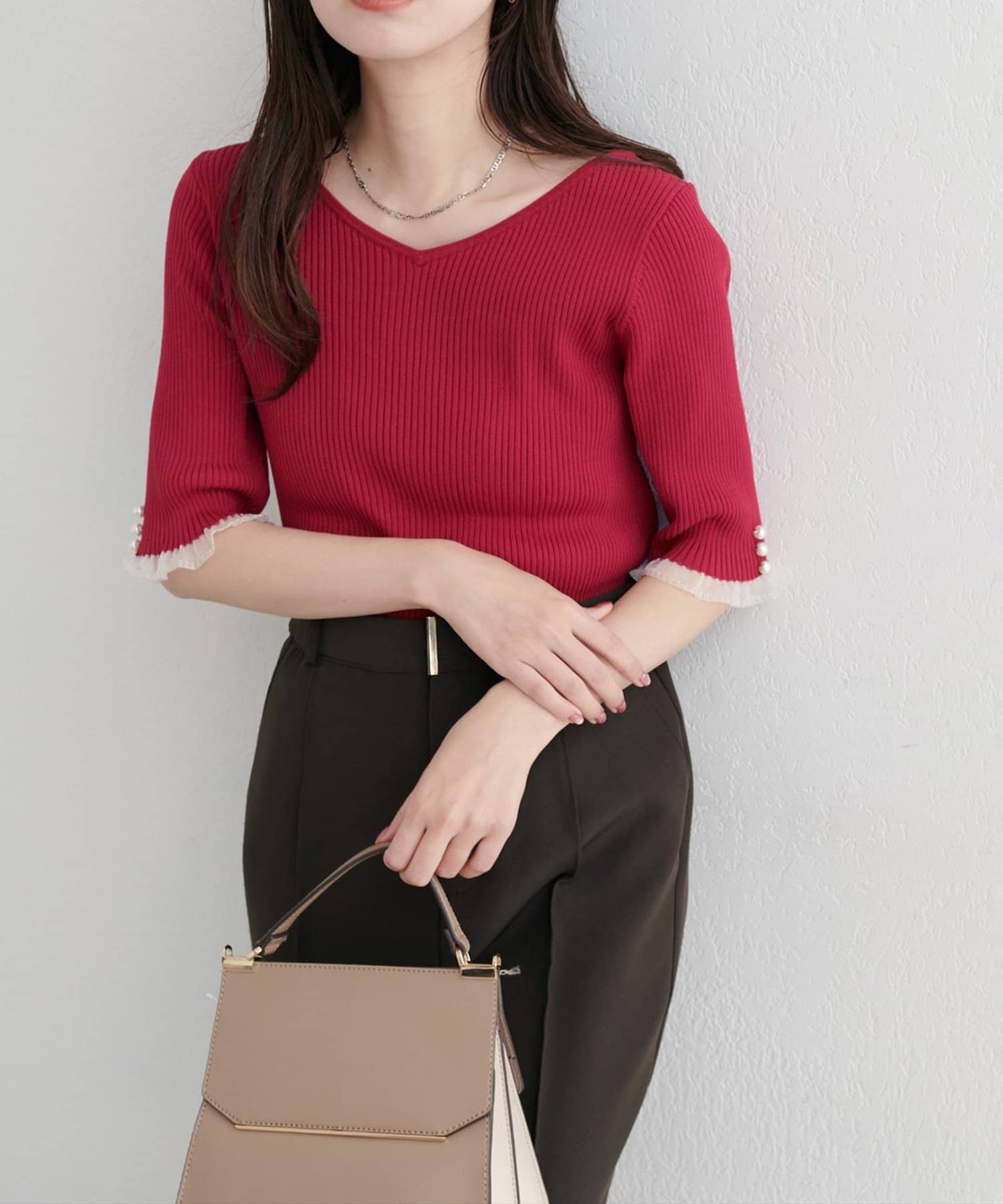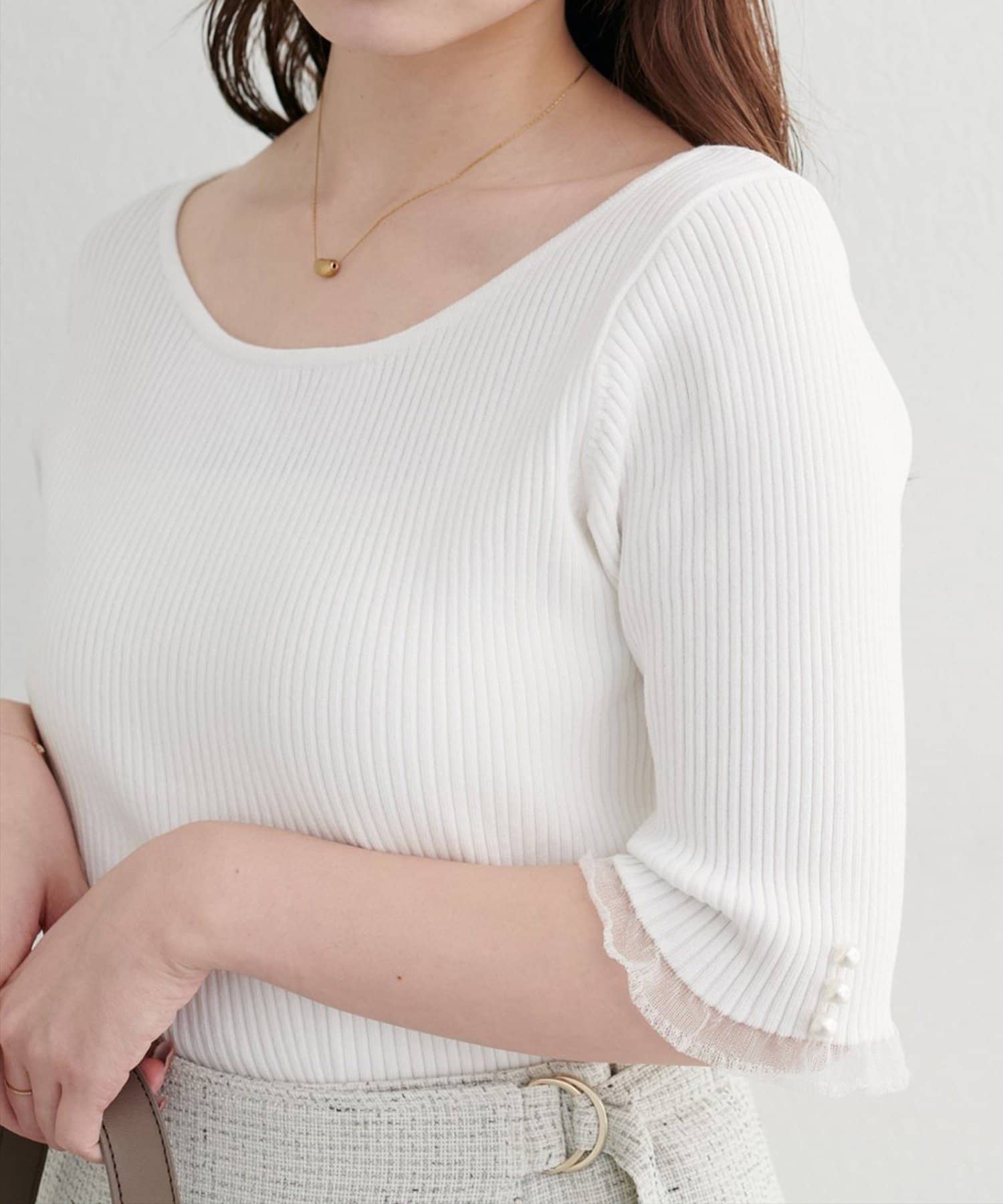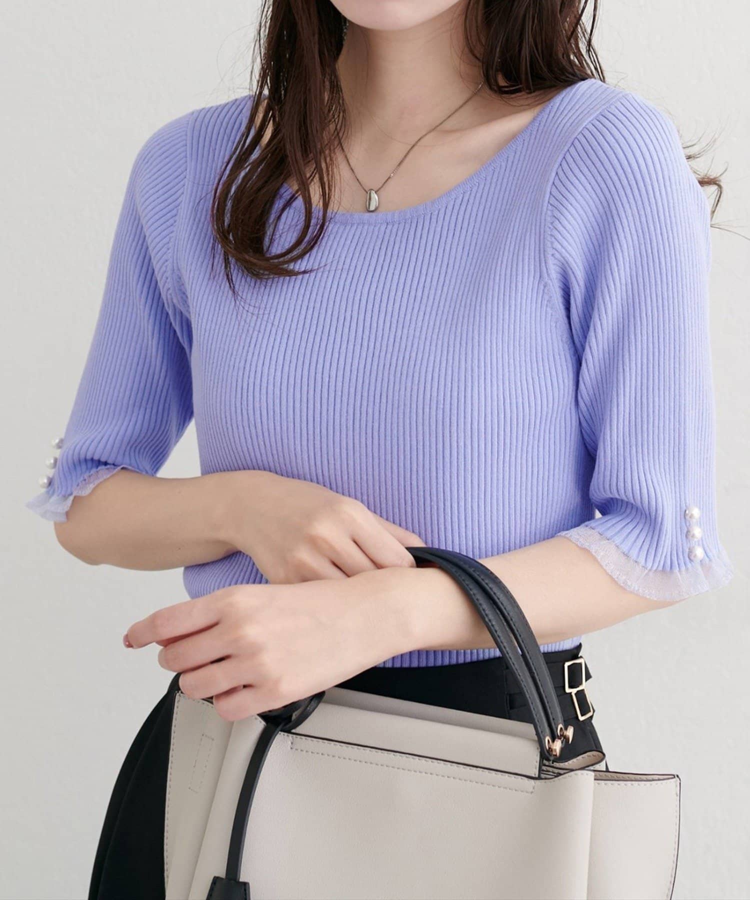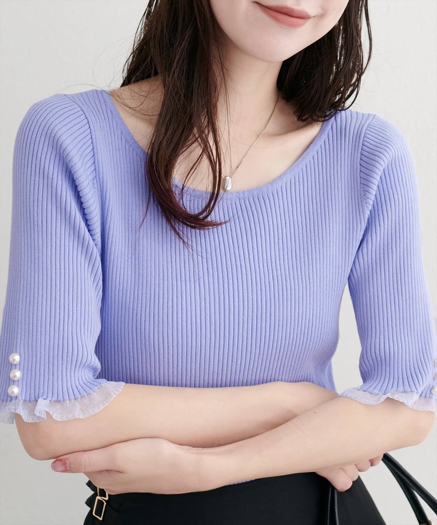袖口のパールデザインでフェミニンさをプラス。