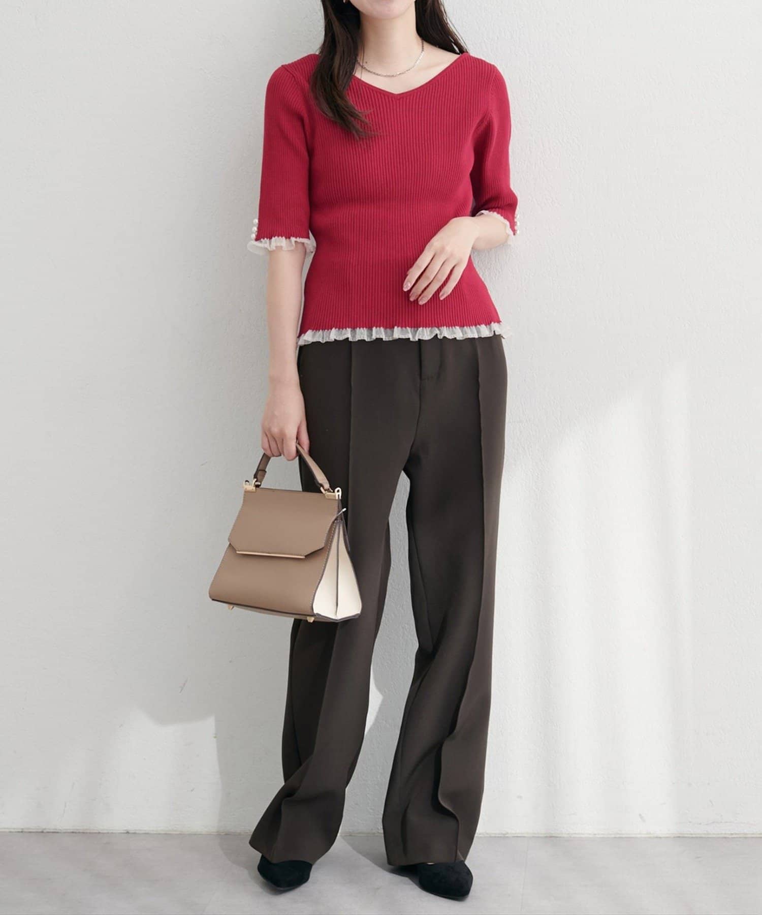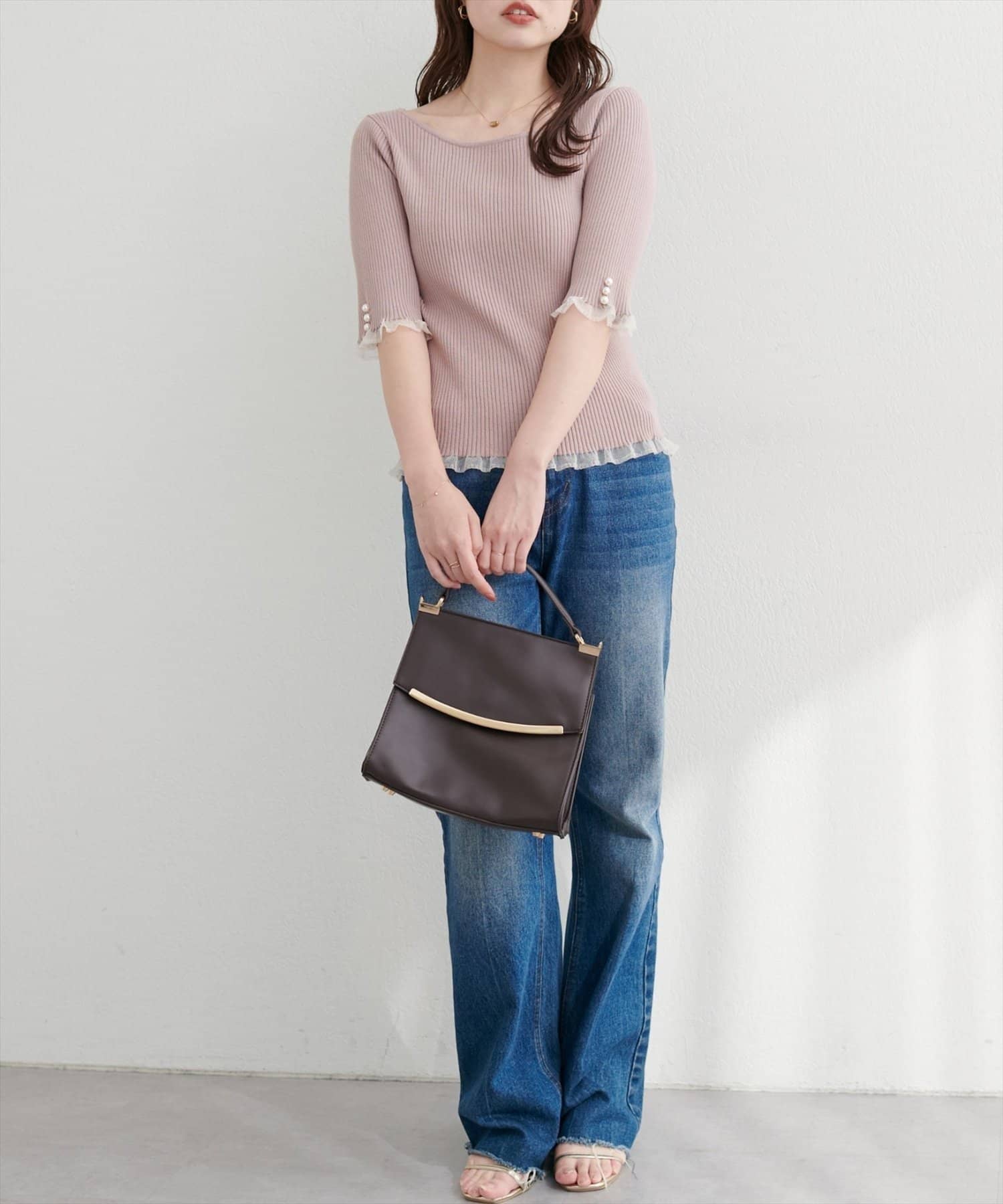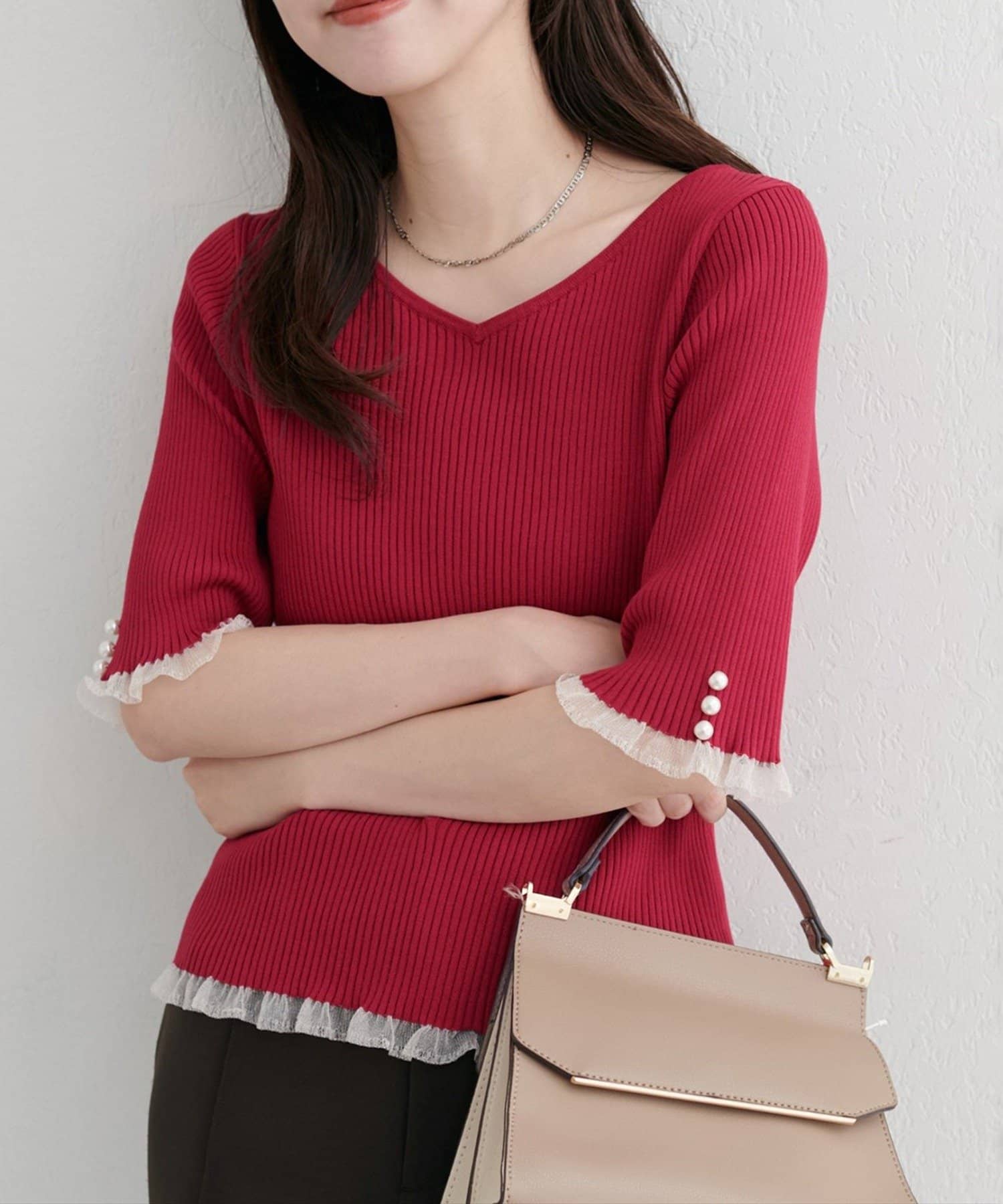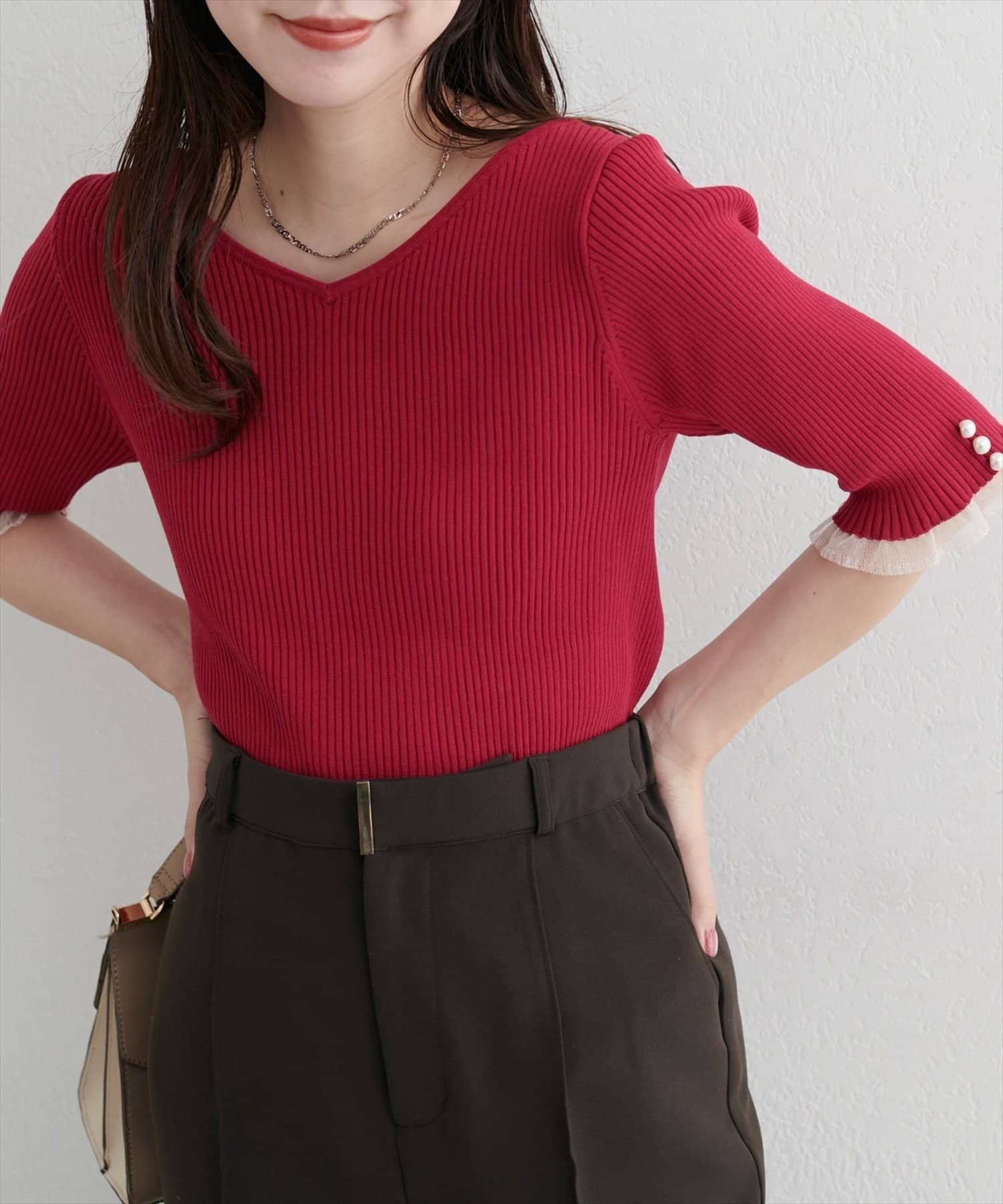 袖口のパールデザインでフェミニンさをプラス。