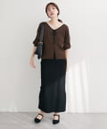 ボタンを全部閉じてトップスとして着るとフェミニンな印象に。
