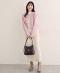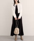 フェミニンなスカートやワンピースには、カーディガンを羽織り、上品な印象に。