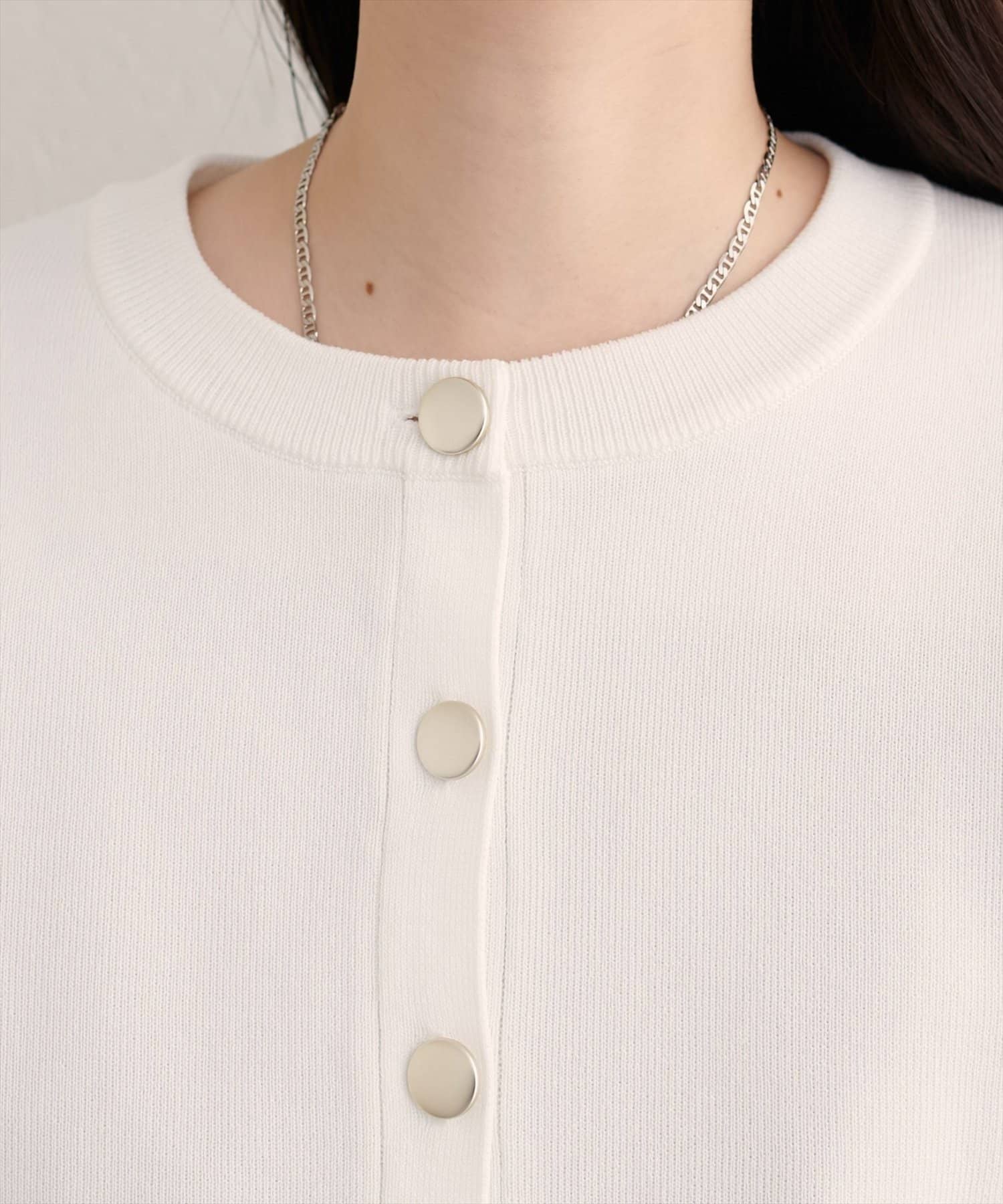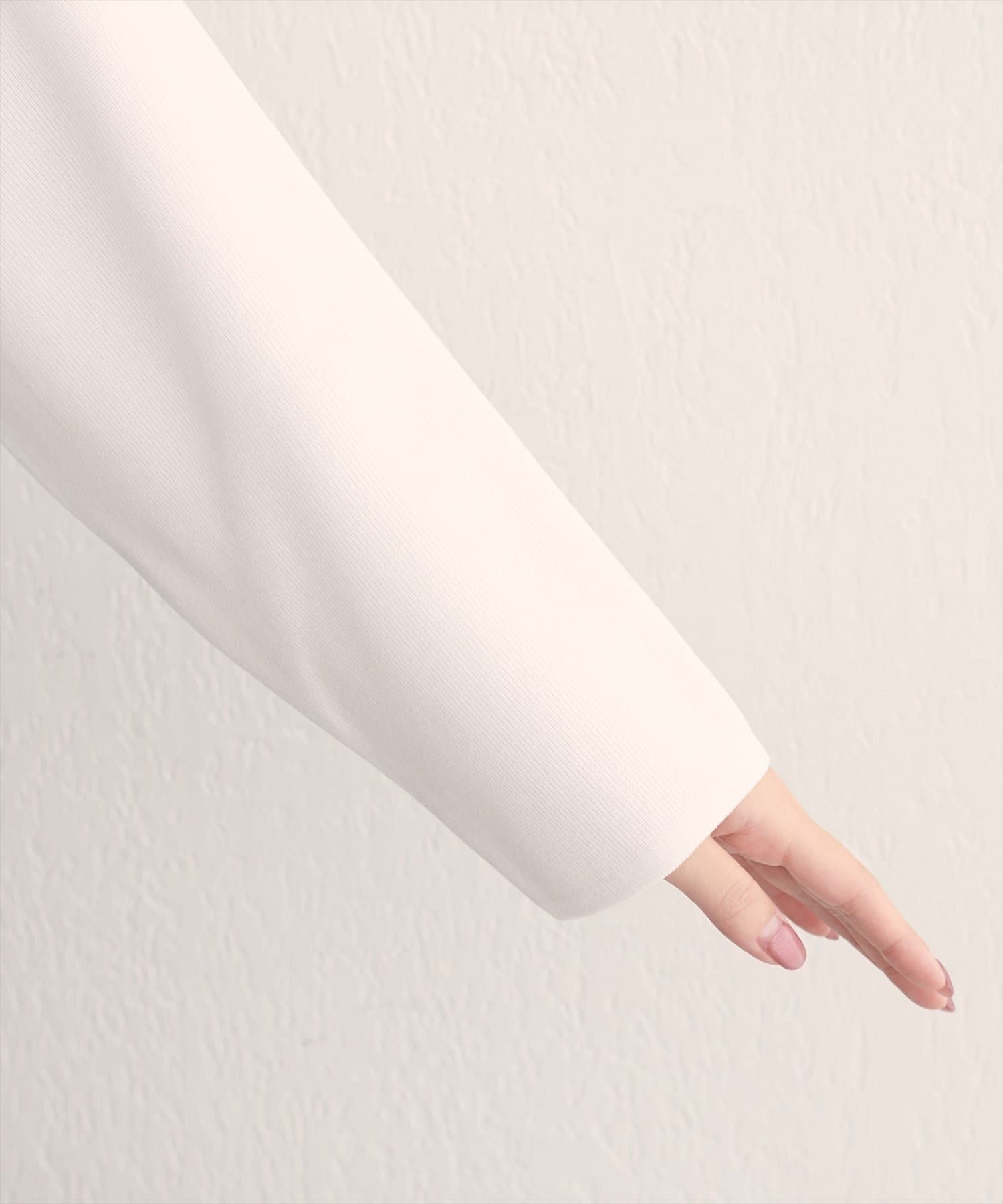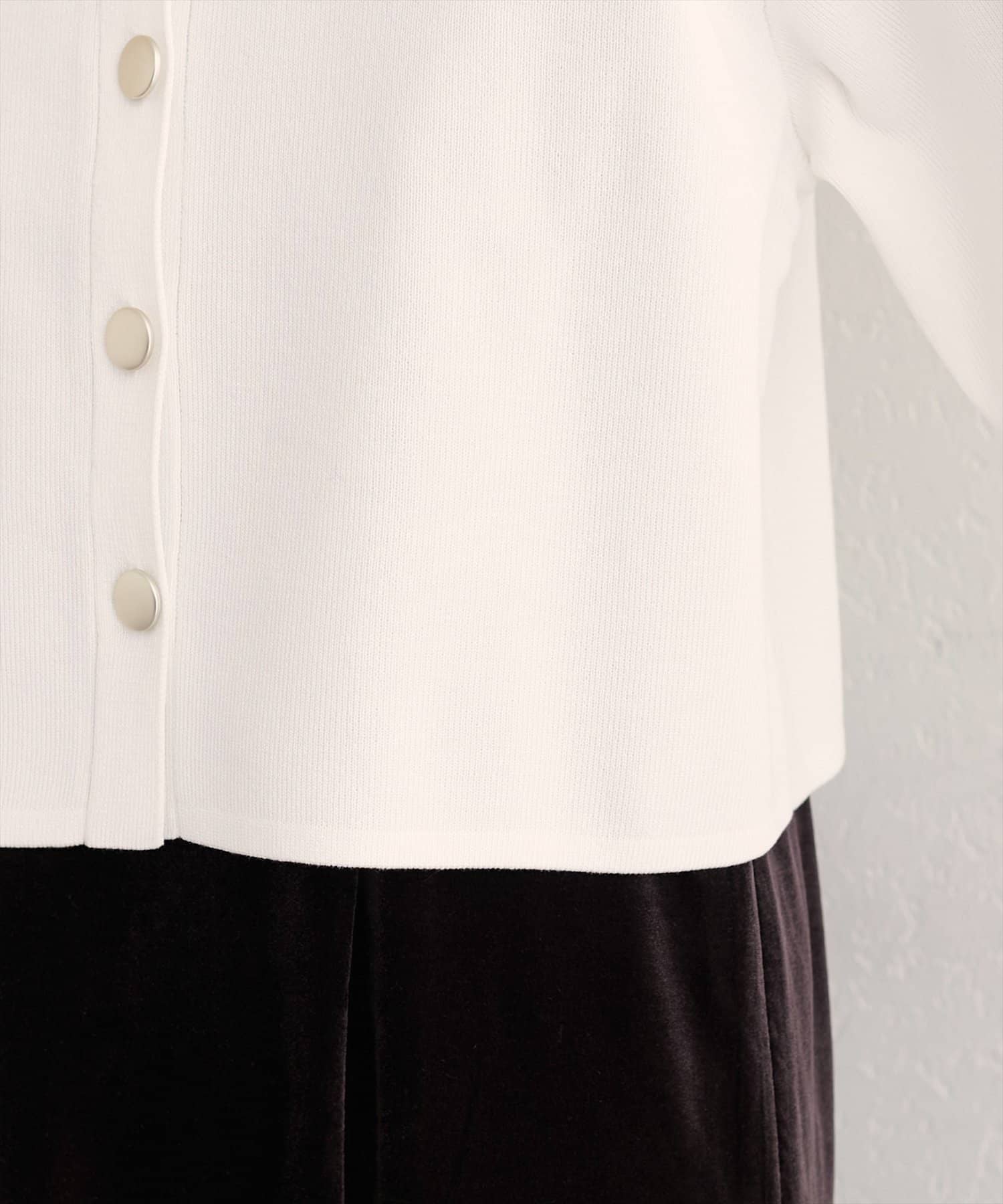 首元をすっきりと見せるリブカラーは、上品で洗練された印象を与えます。