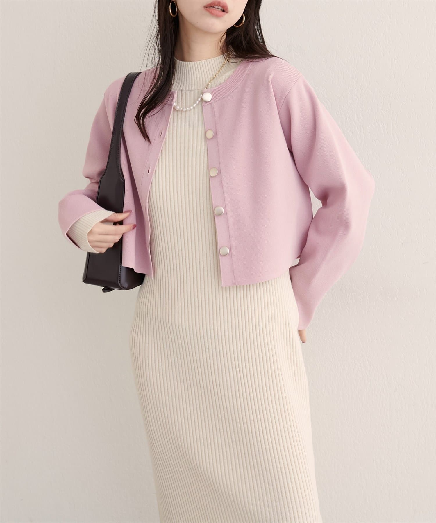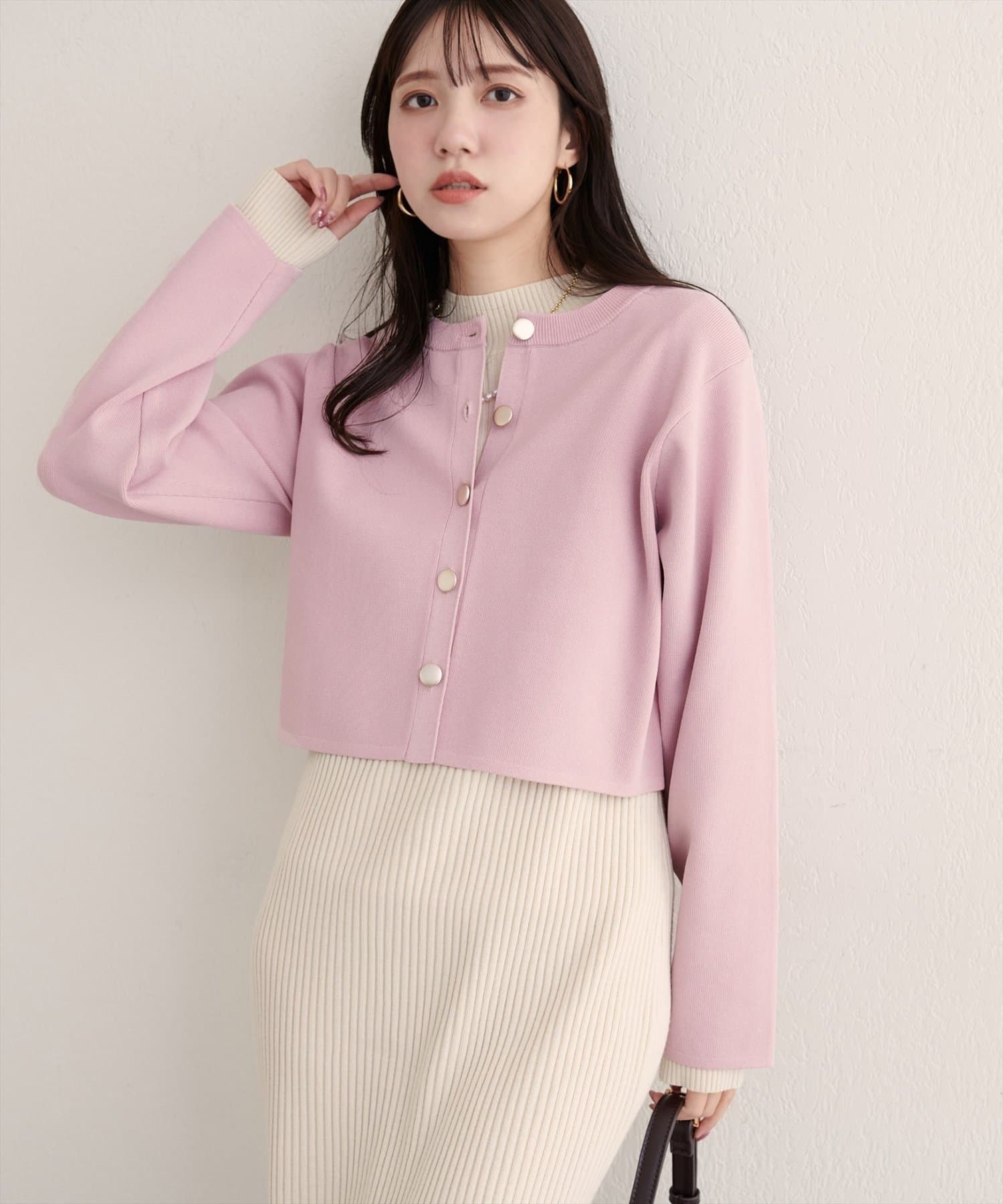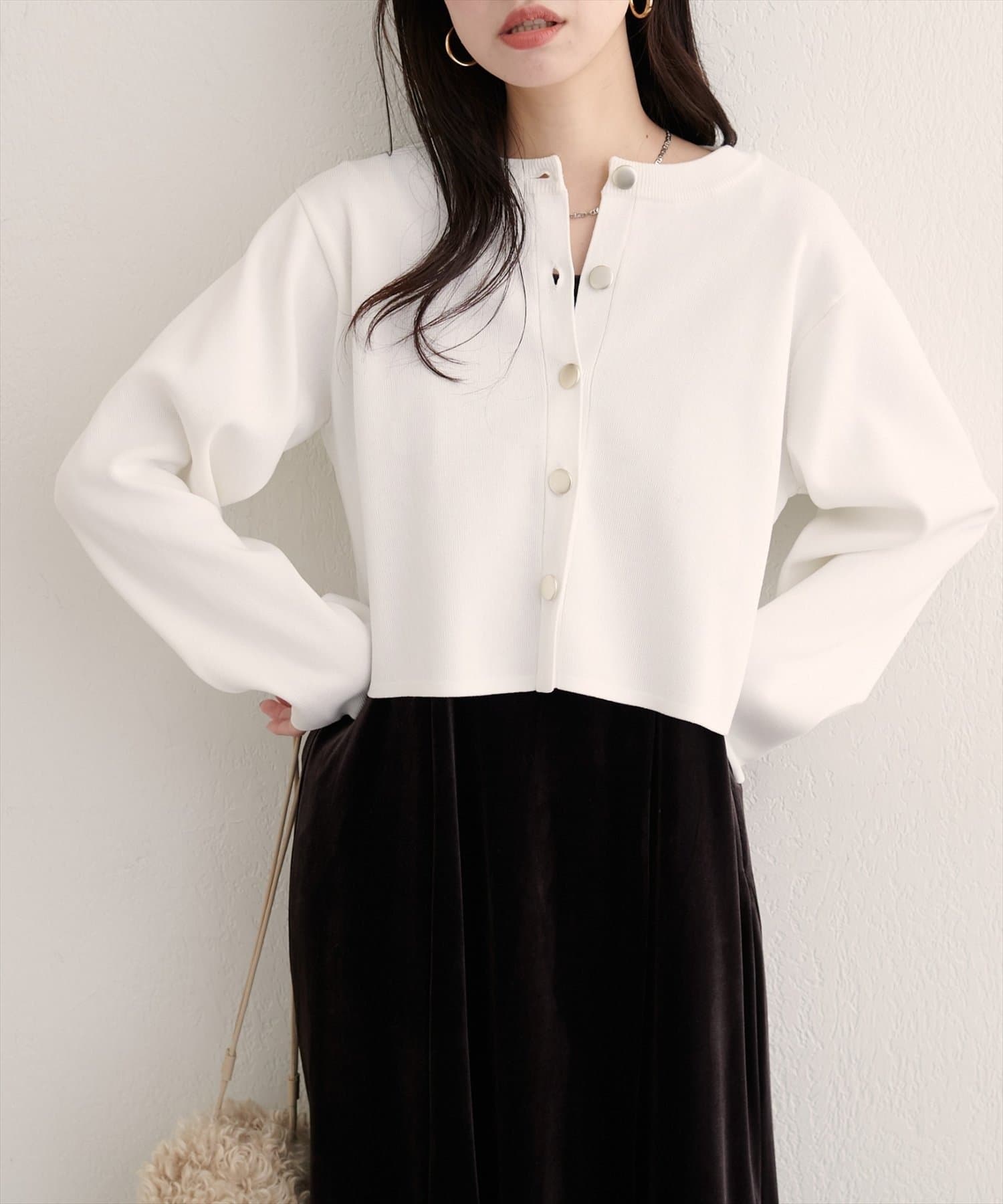 【EVERY.VERY niceclaup】クロップド丈リブカラーカーディガン