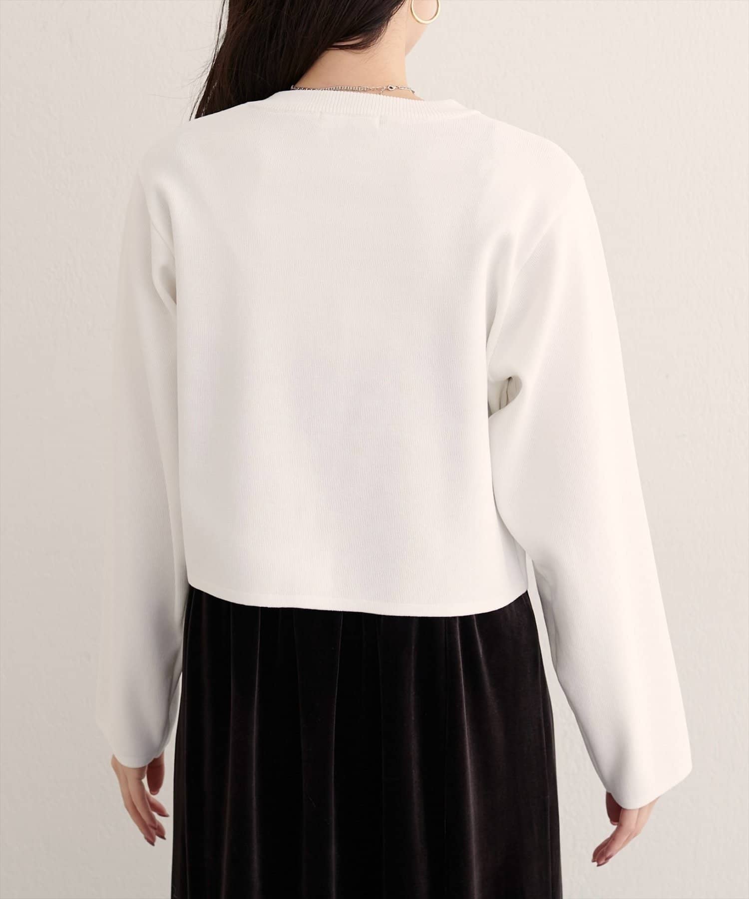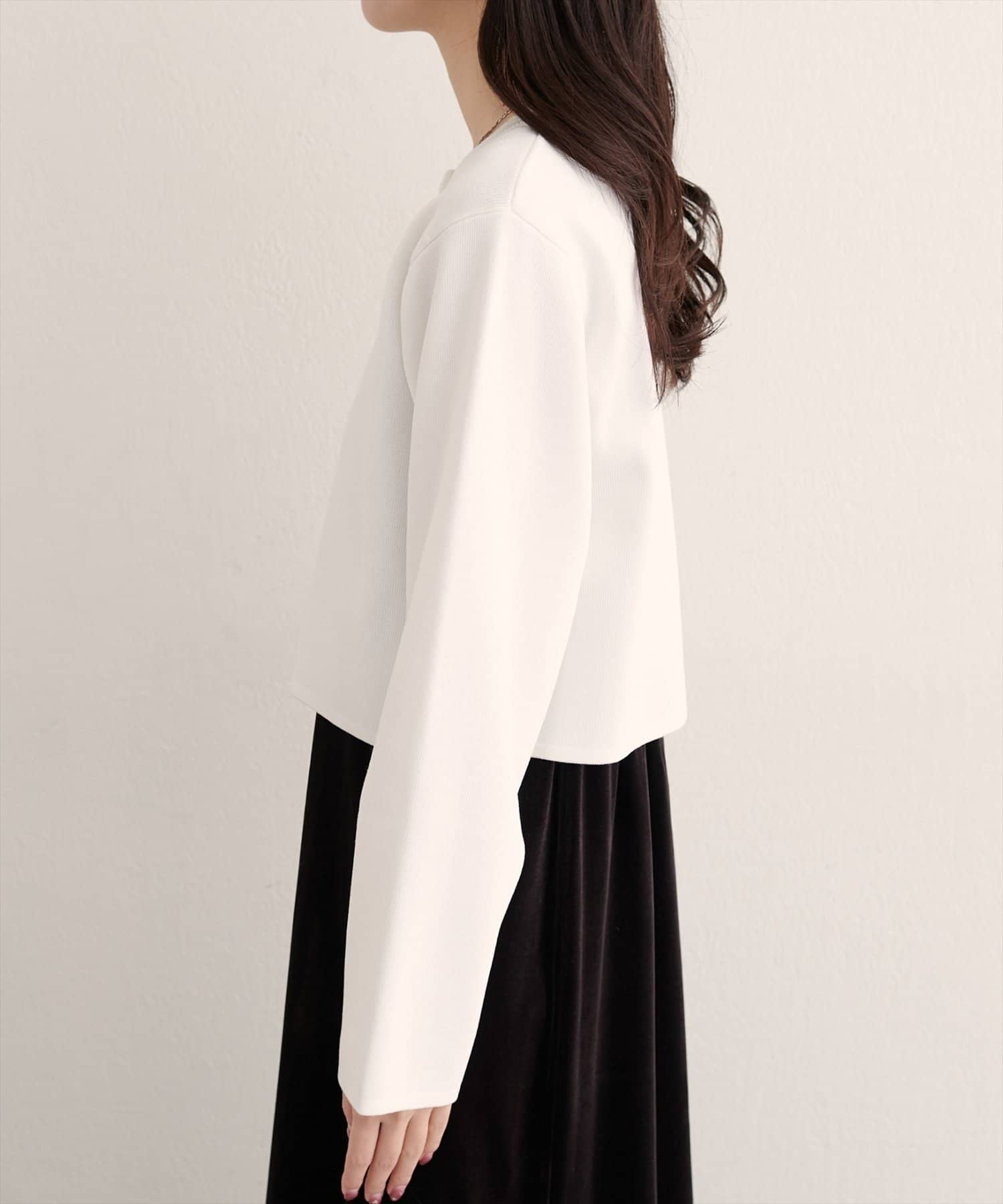 目を引くクロップド丈は、スタイルアップ効果抜群。ハイウエストのボトムスと合わせれば、脚長効果も期待できます。