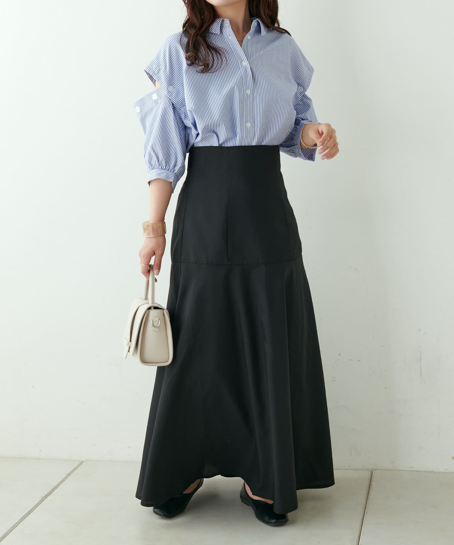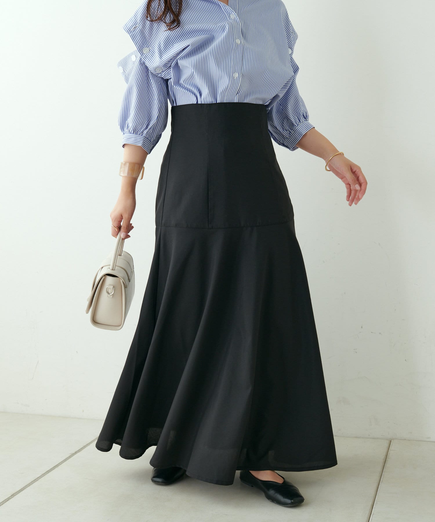 ・ふんわりマーメイドシルエットで広がる裾が女性らしさをプラスします。