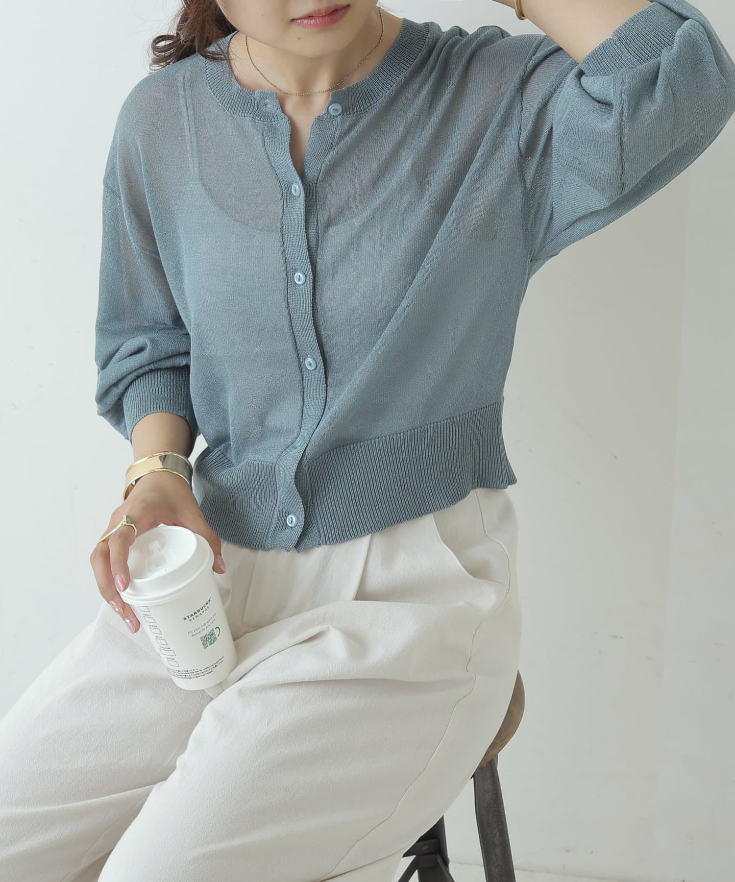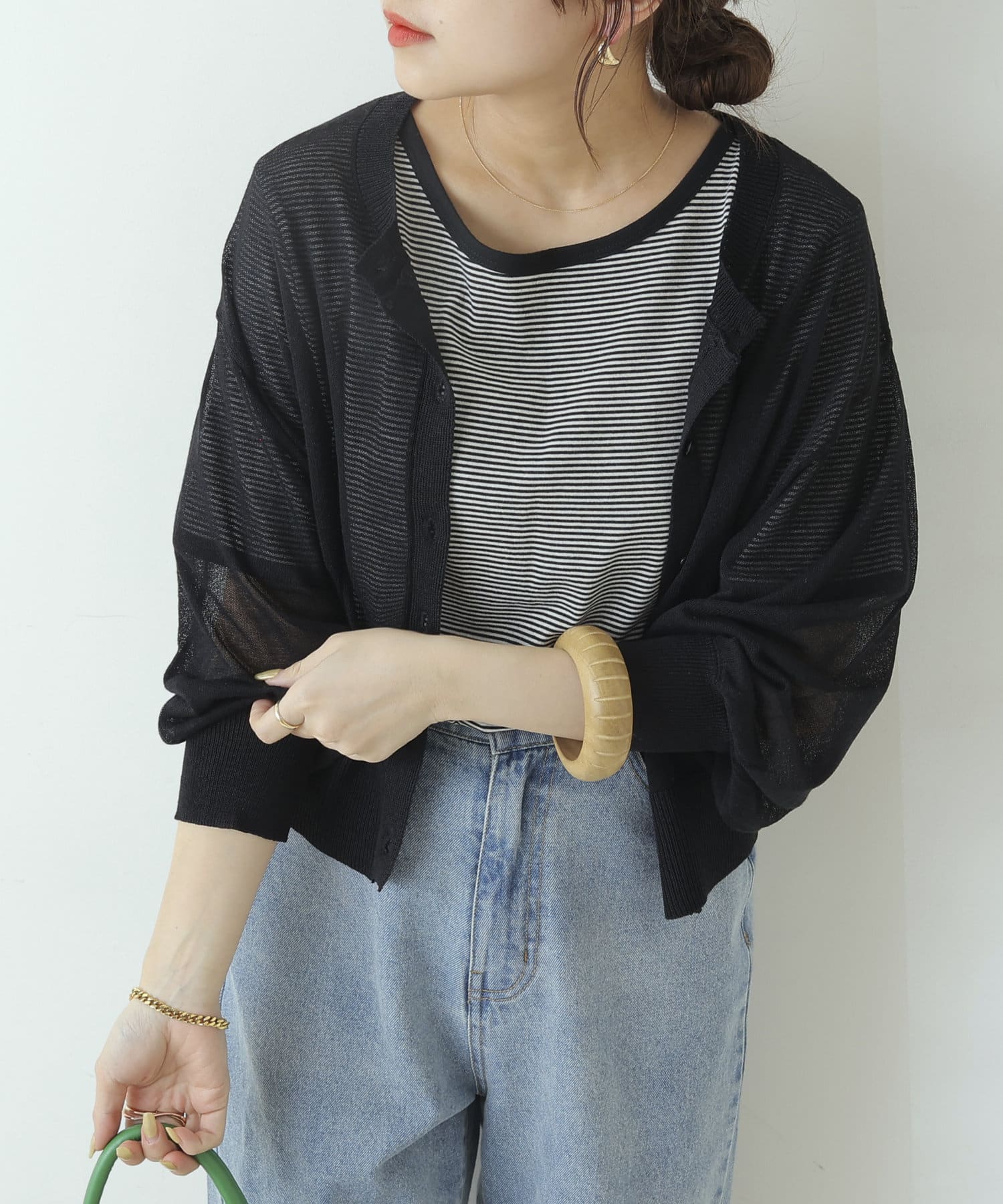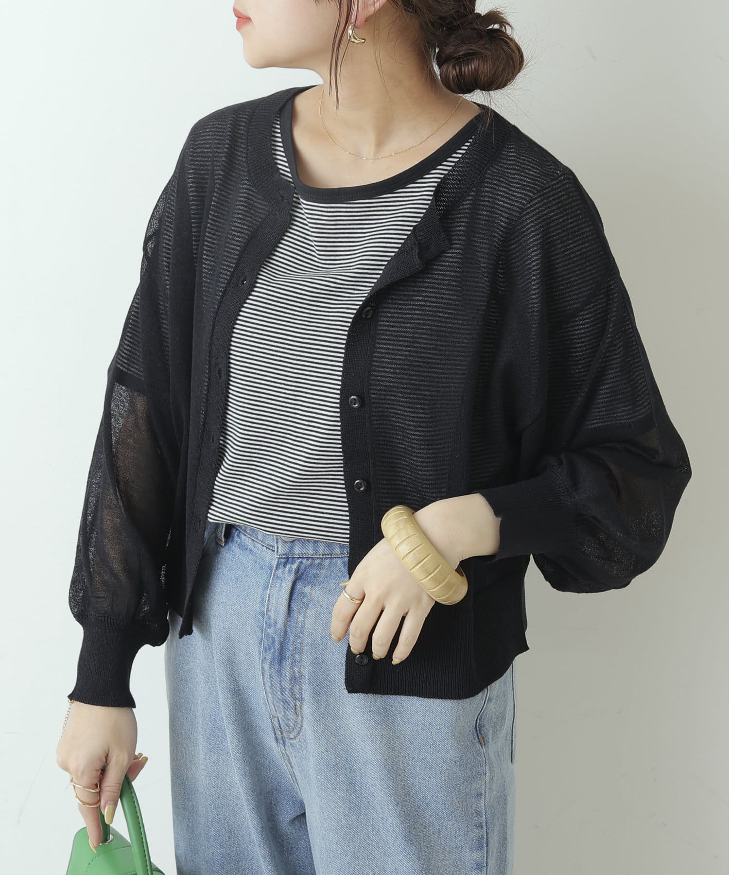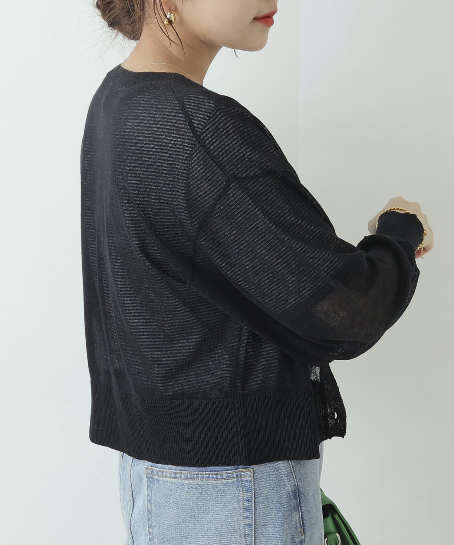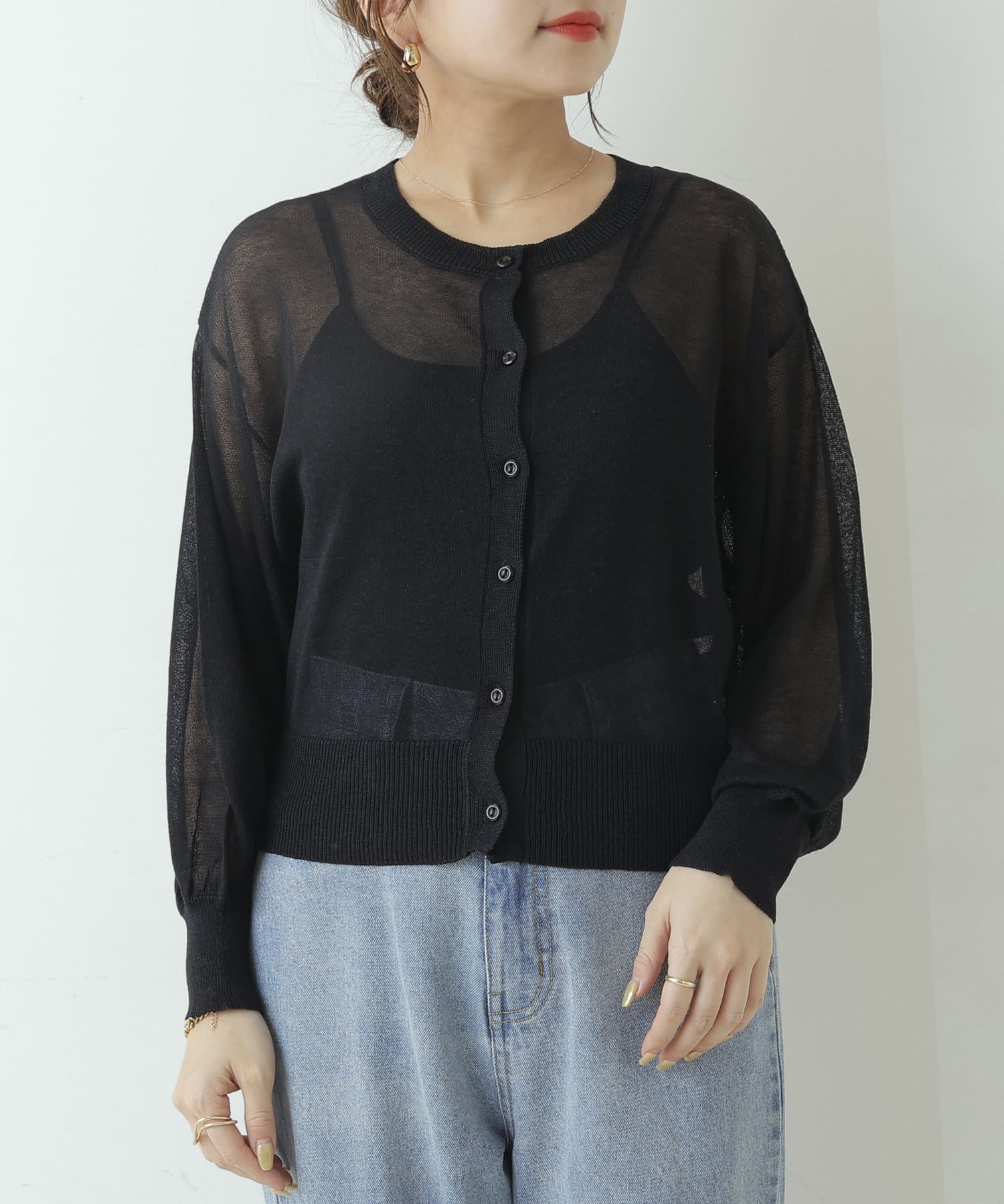 ヘルシーな透け感、清涼感のある素材のカーディガン