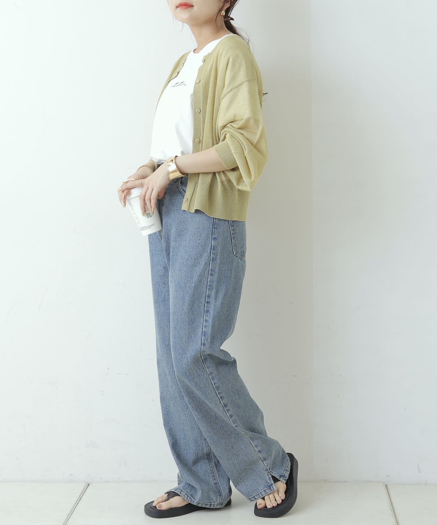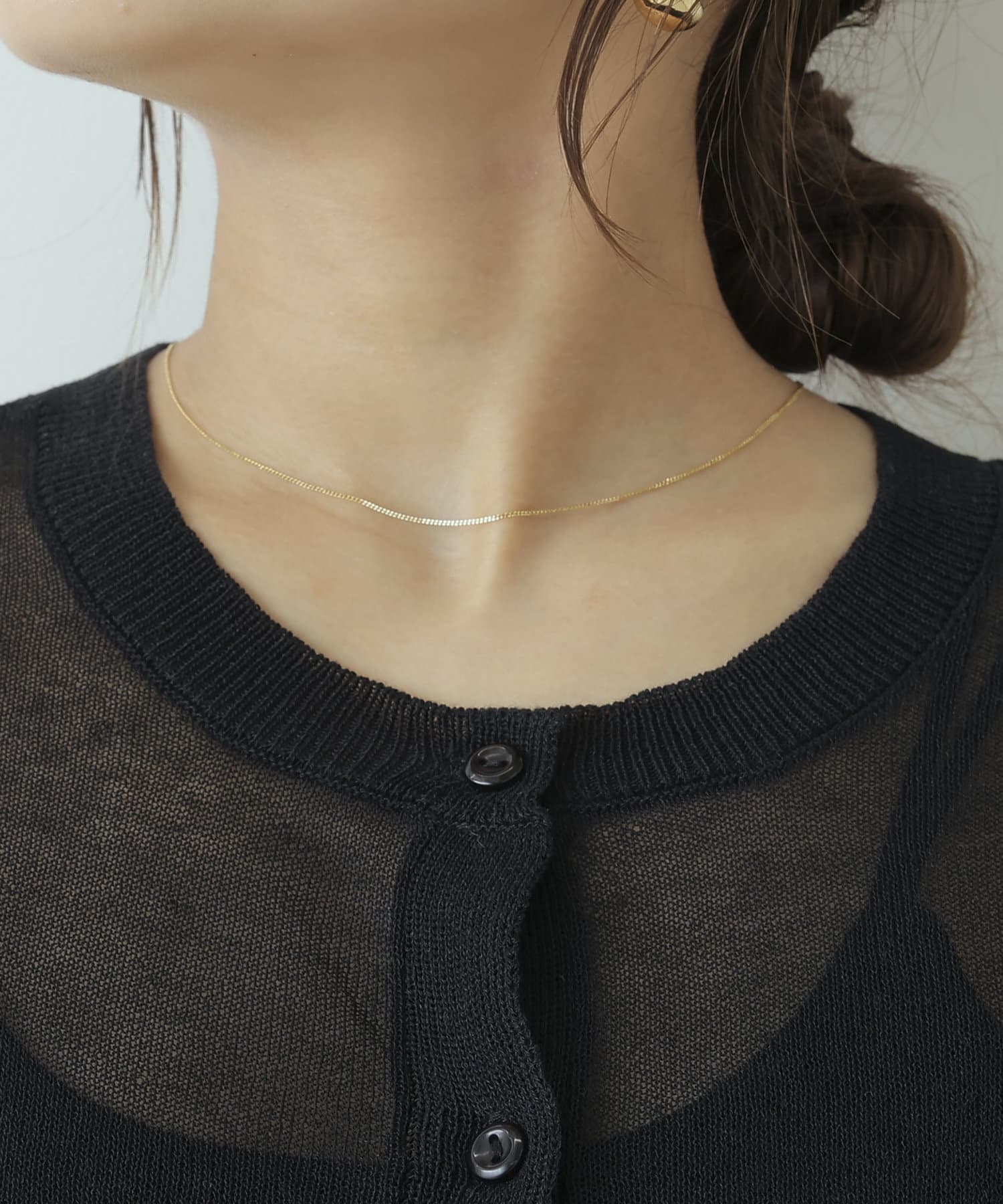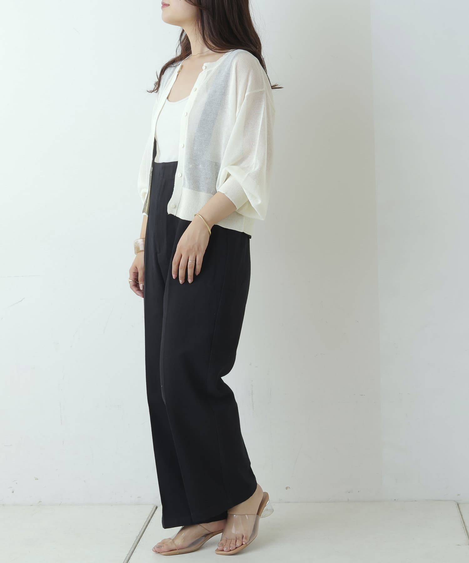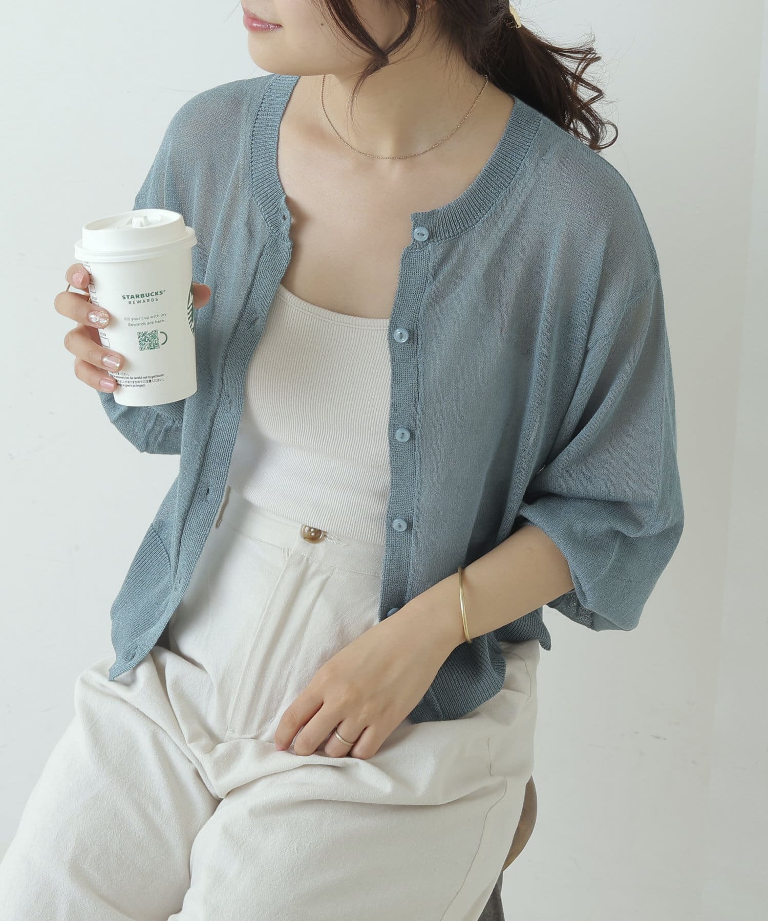 ヘルシーな透け感、清涼感のある素材のカーディガン