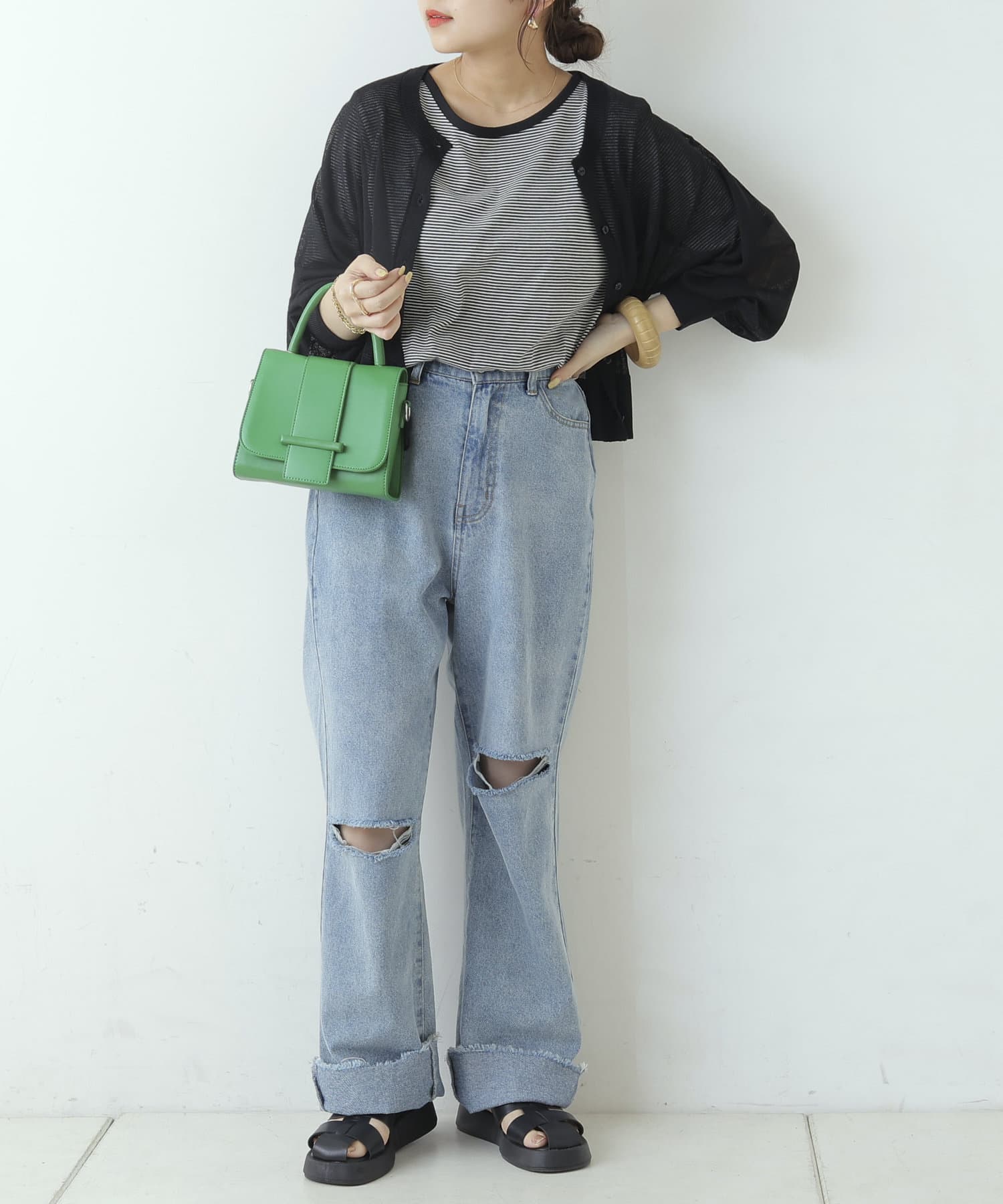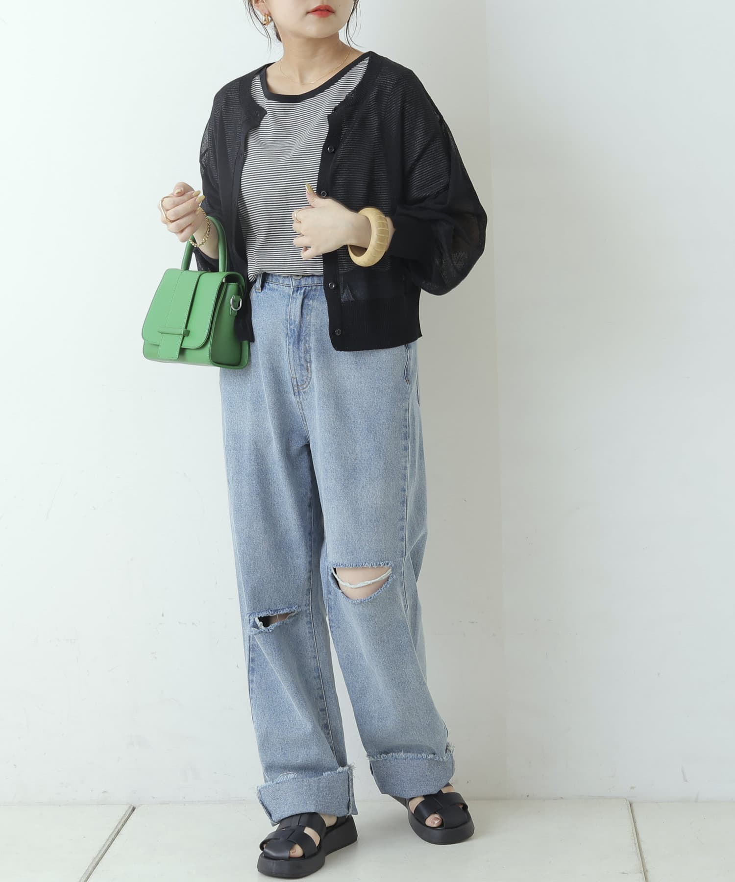 ・シアーだからこそオシャレなインナー見せができるアイテム。