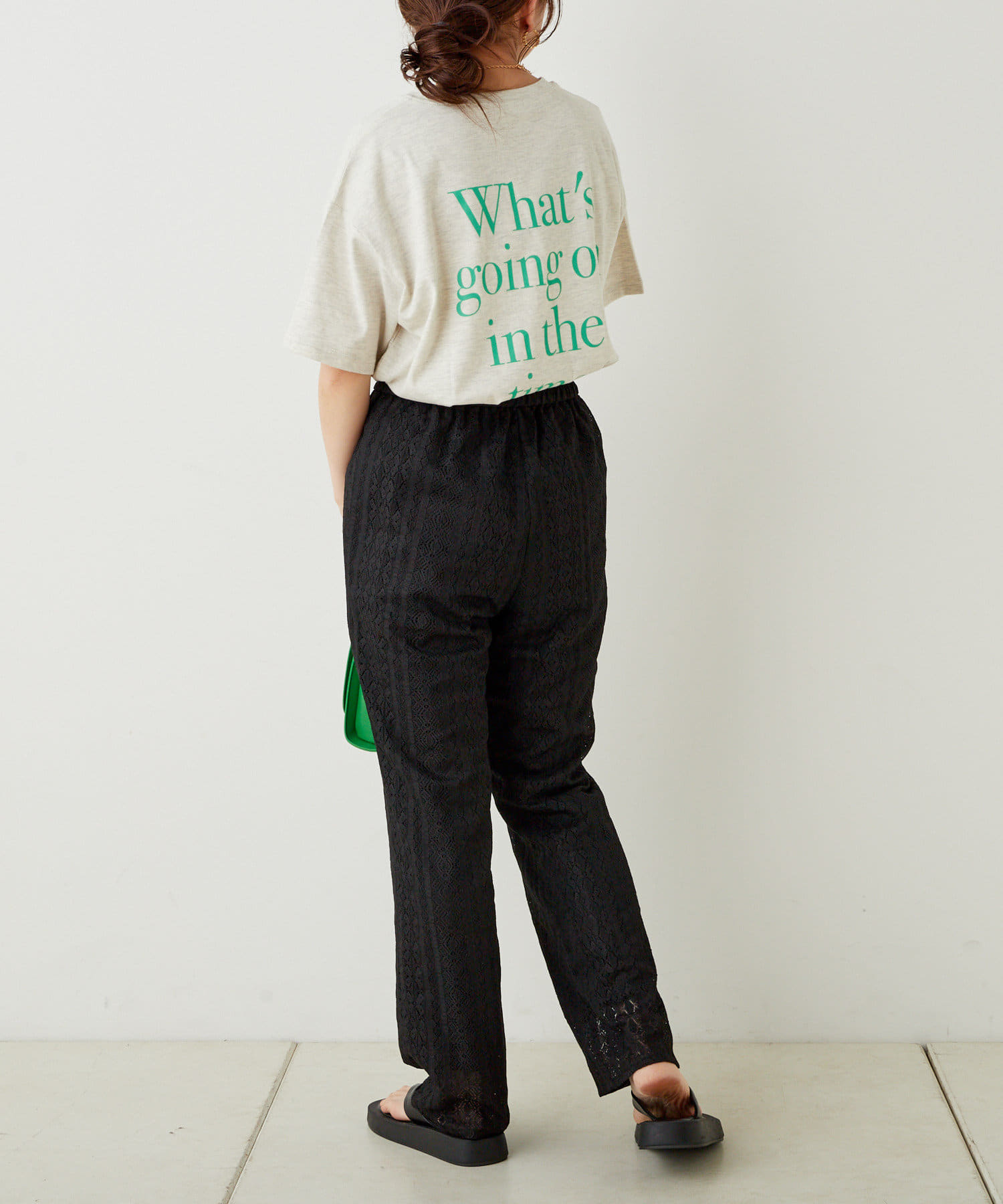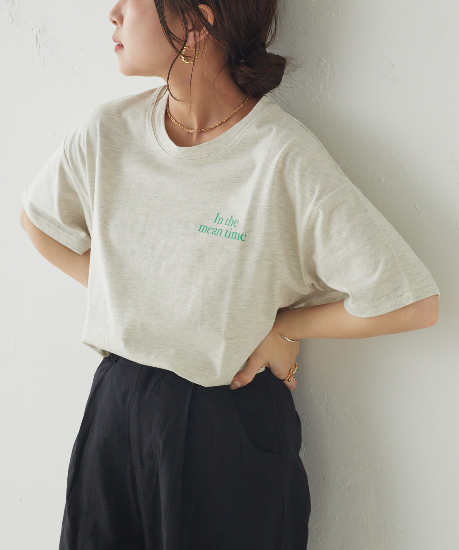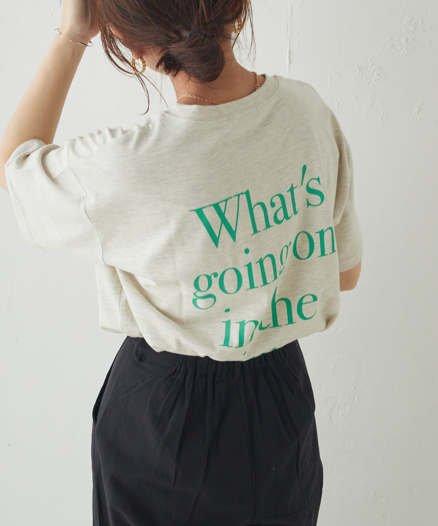 ・トレンド感あるロゴTですが、落ち着いた配色なので大人な印象に。