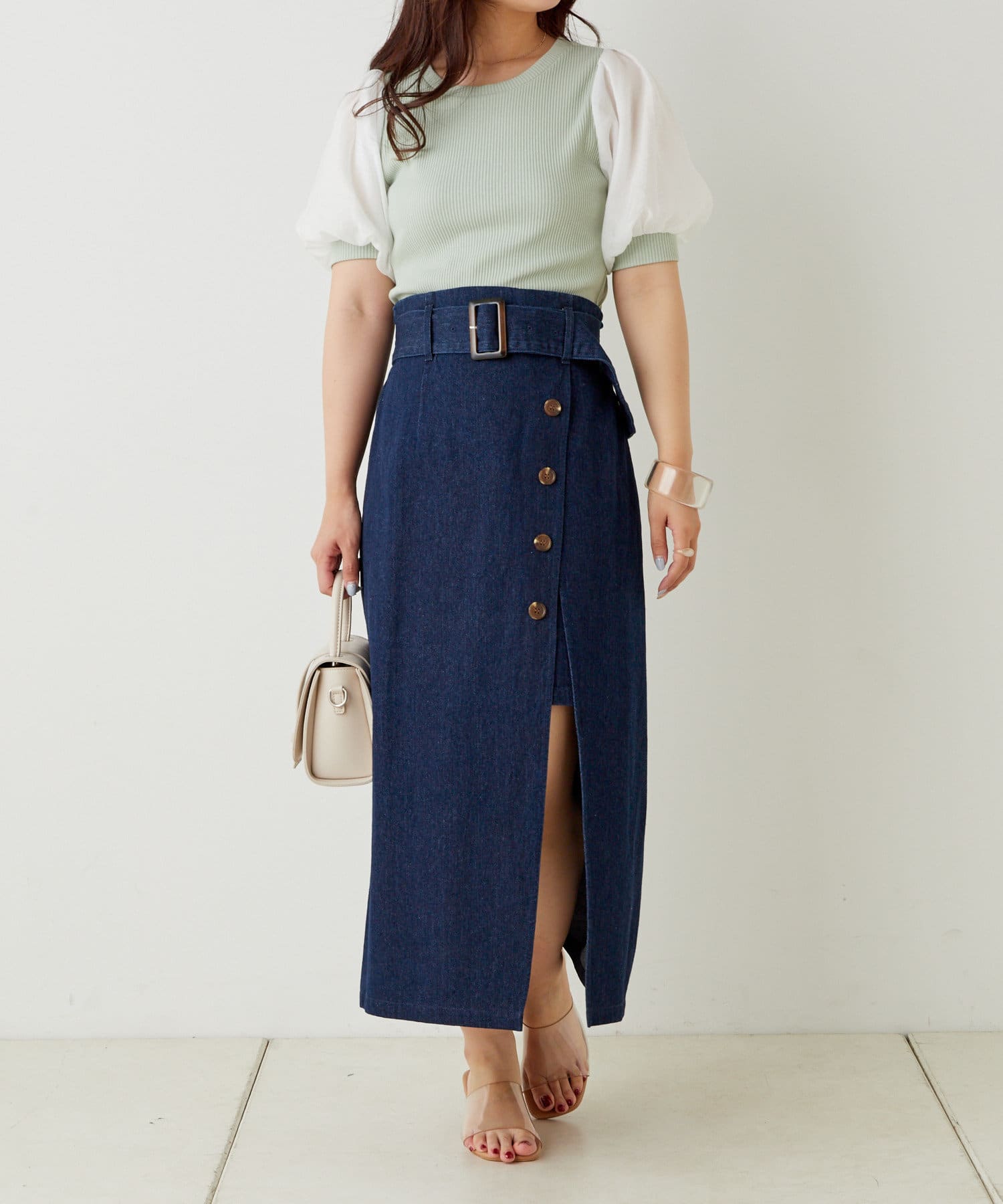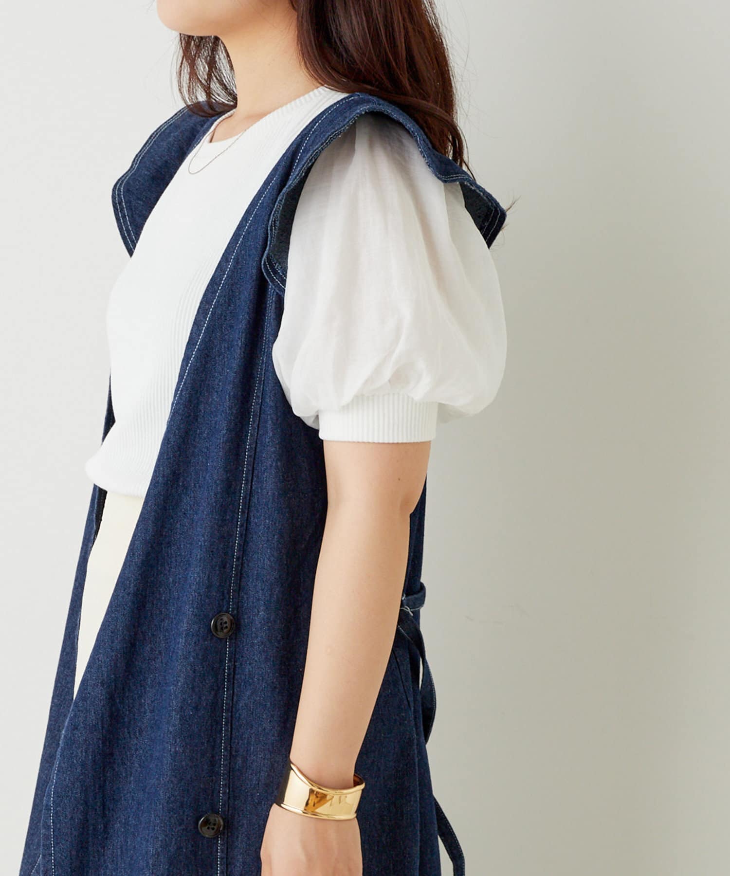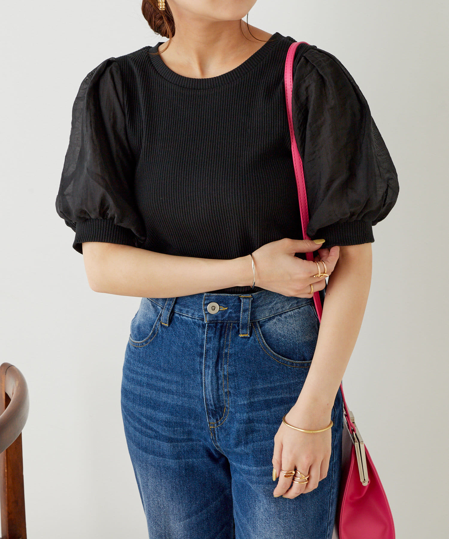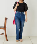 ・デニムパンツで合わせればトレンドスタイルが完成。