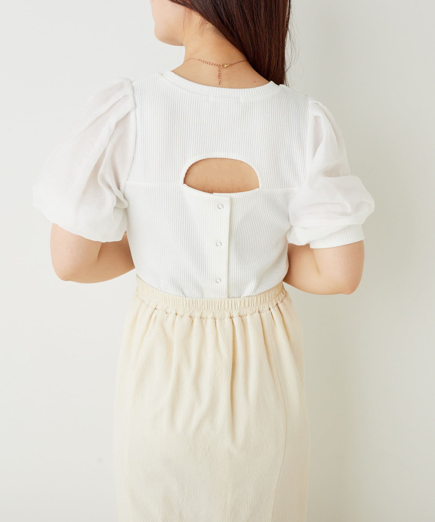 ・背中開きでも着ていただける肌見せトップス。
