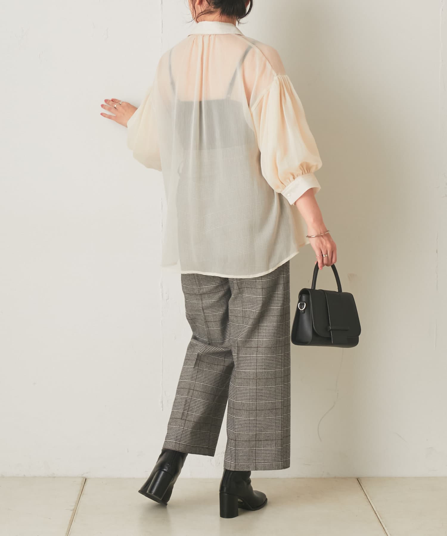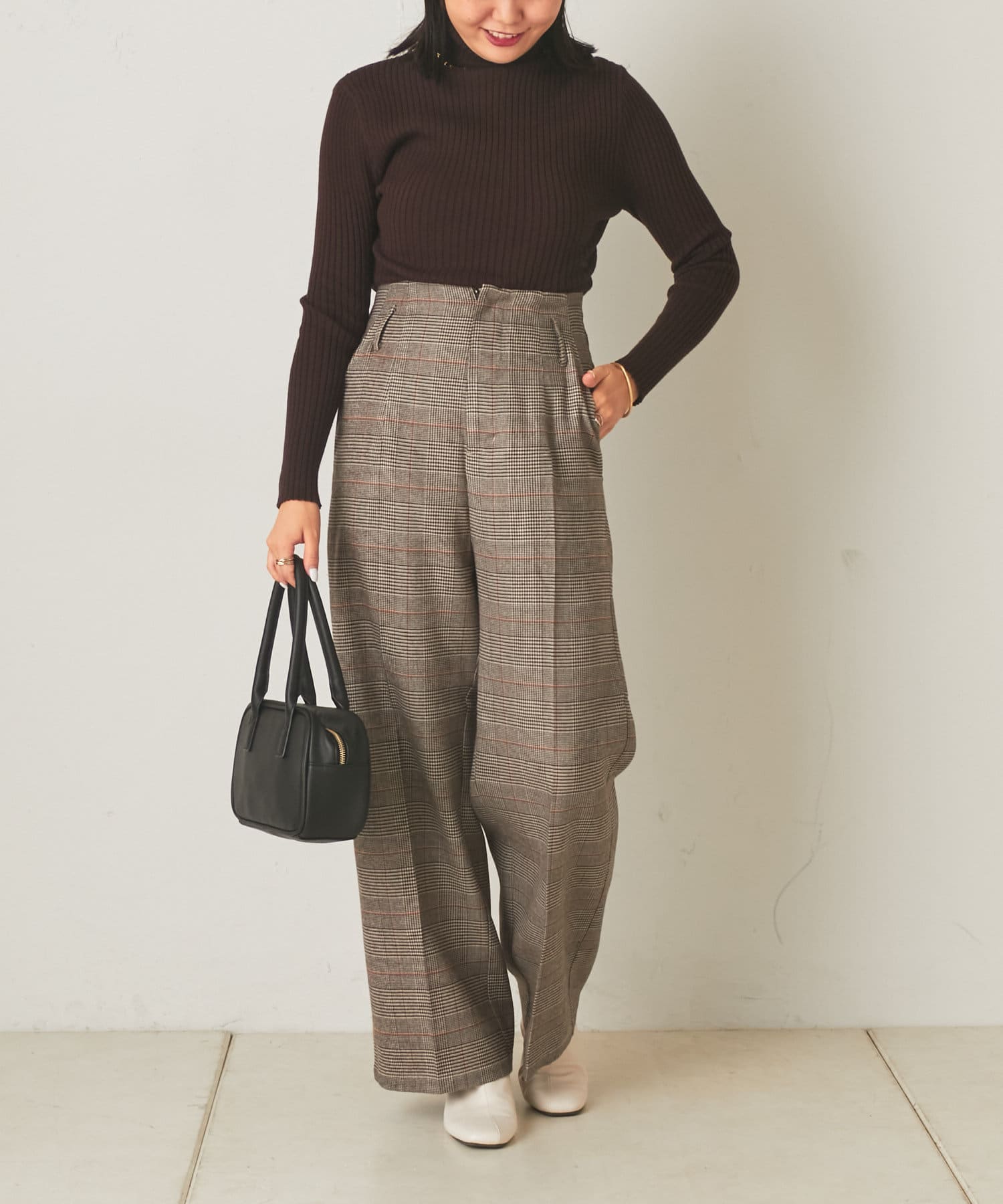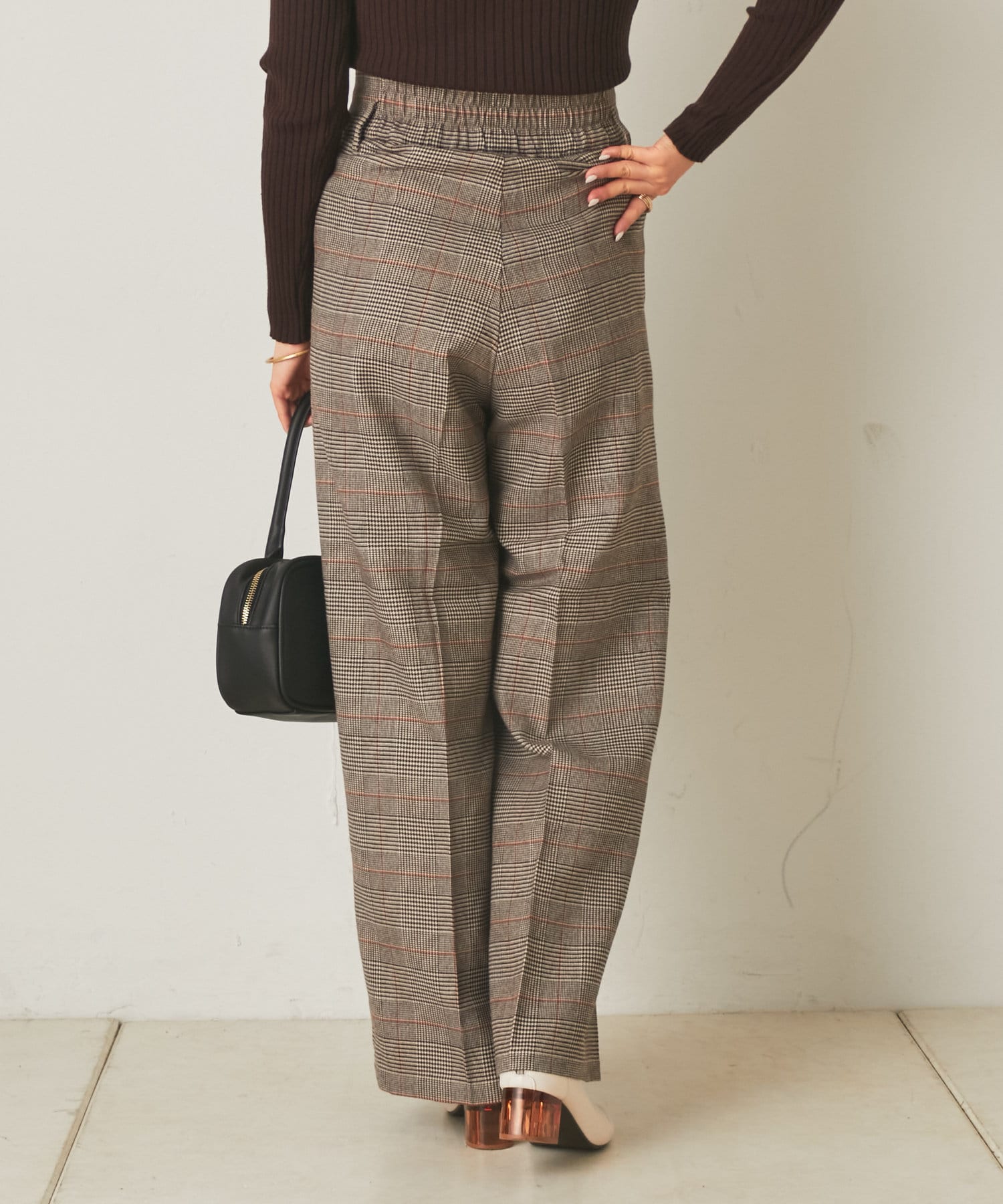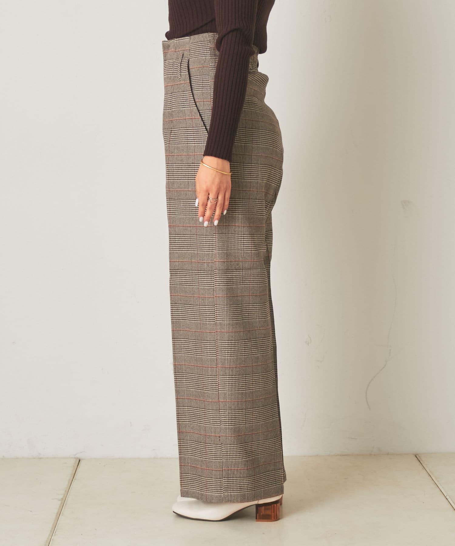 ・秋を感じるグレンチェック柄のワイドパンツ。