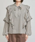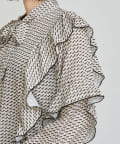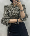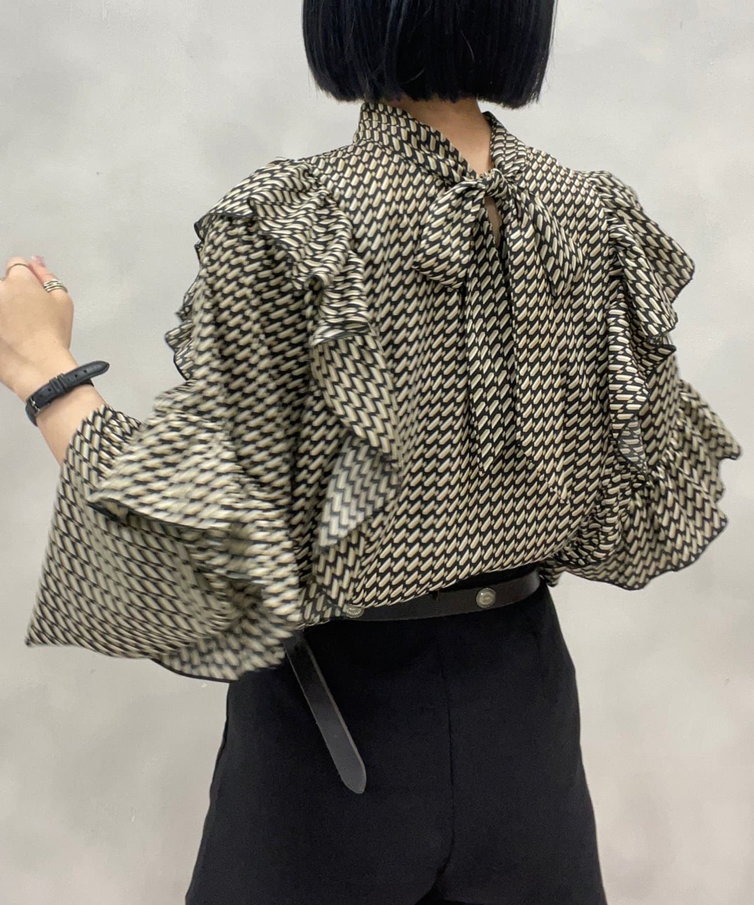 【KON'sセレクト】幾何学柄ボウタイブラウス