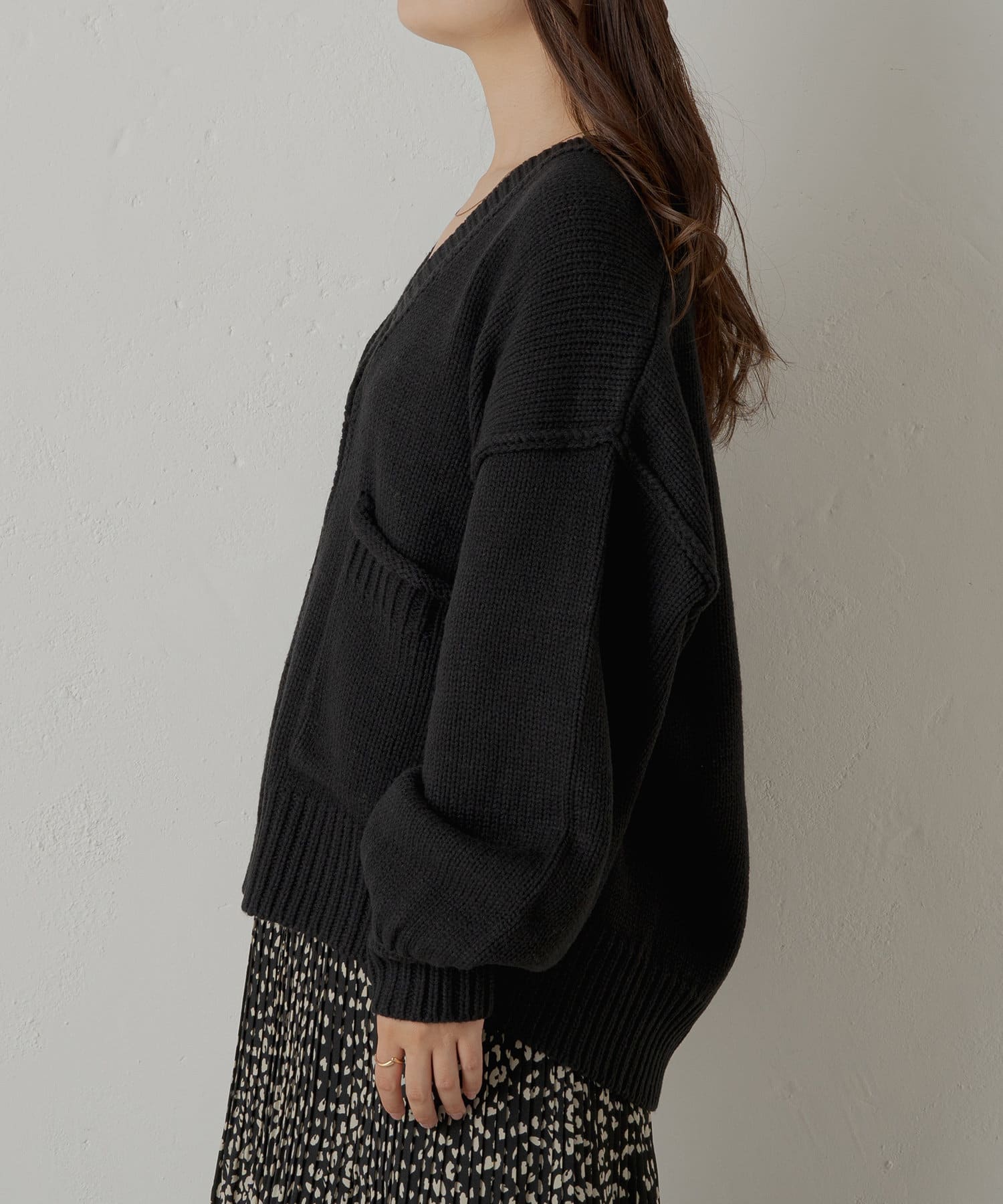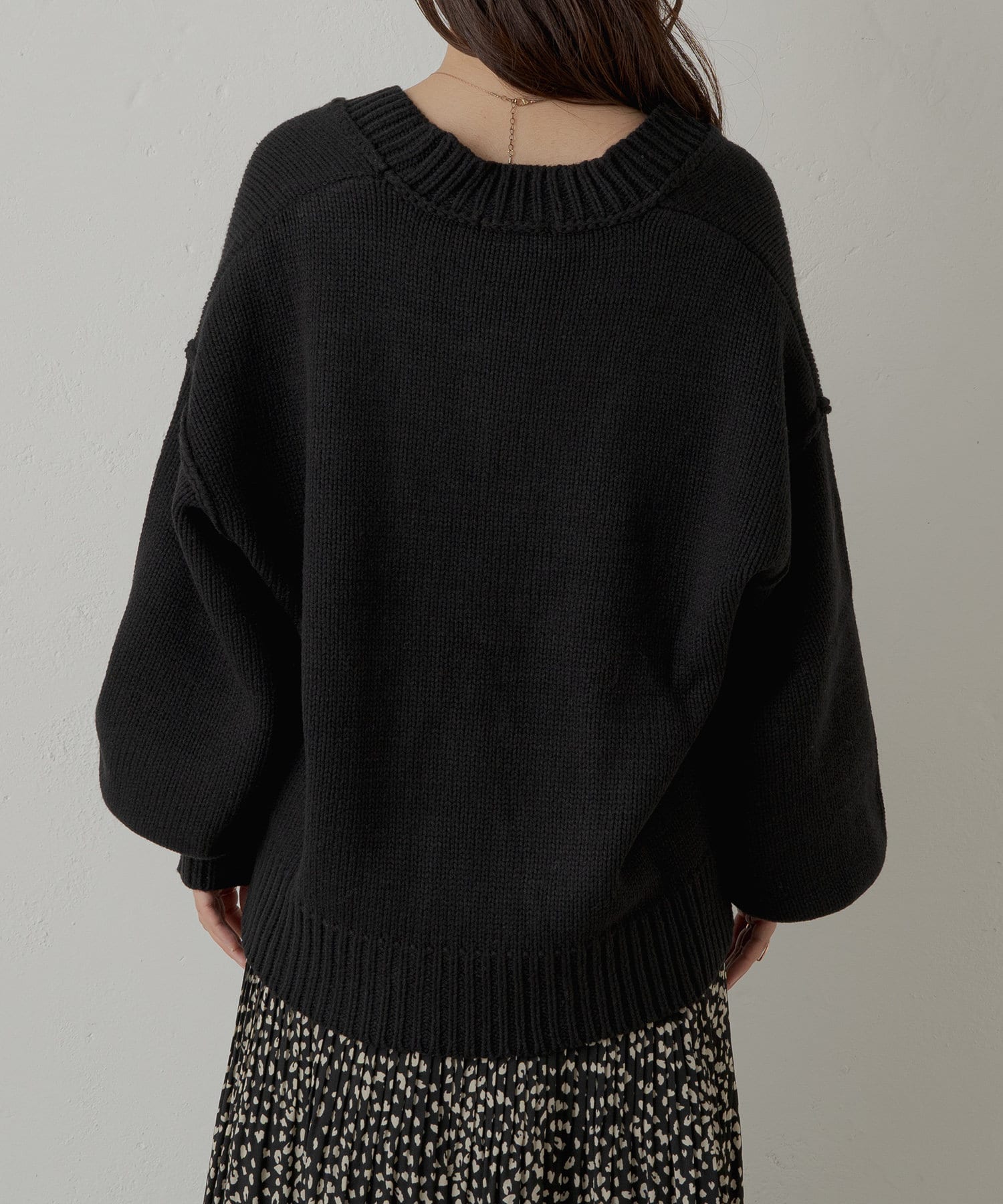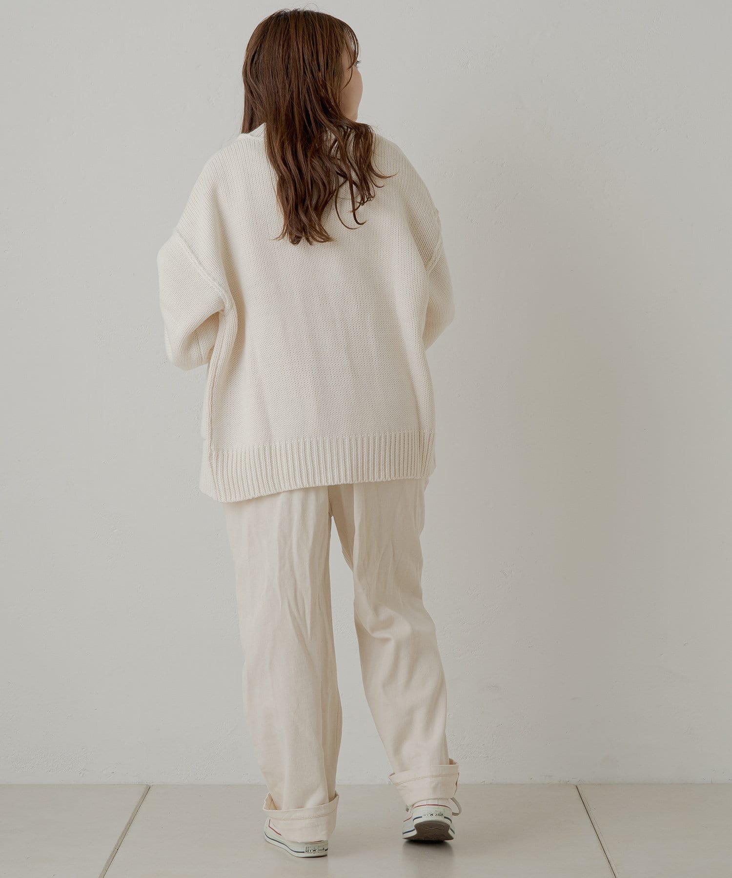 ・ゆとりのあるシルエットで、インナーにハイネックトップスと合わせるのもおすすめです◎