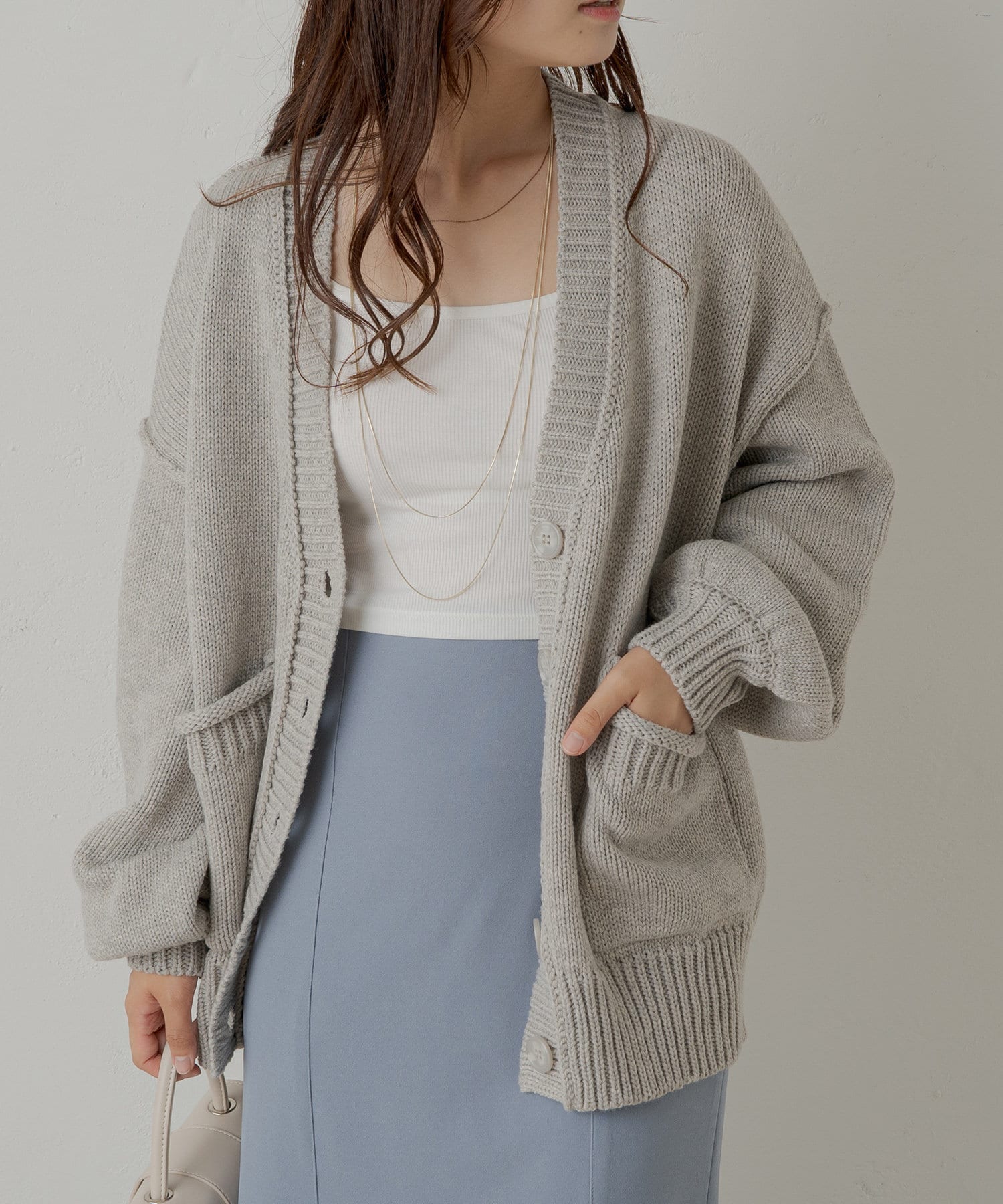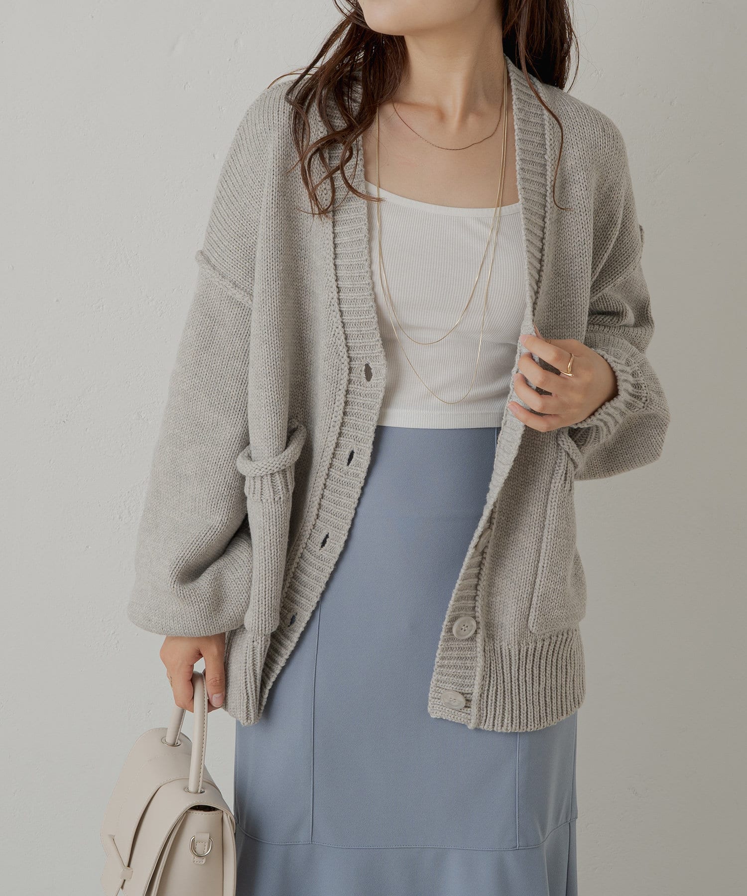 ・シーズンマストのカーディガン。羽織としても、一枚でも着回しができる万能アイテムです。