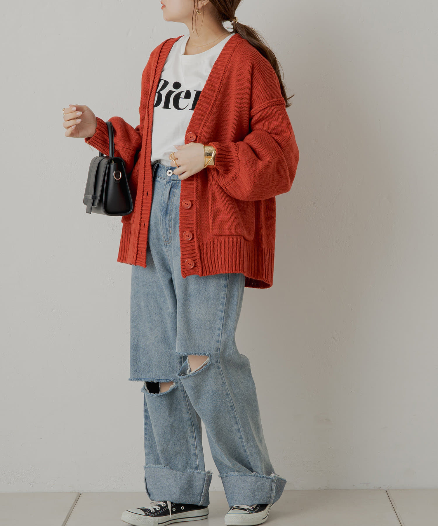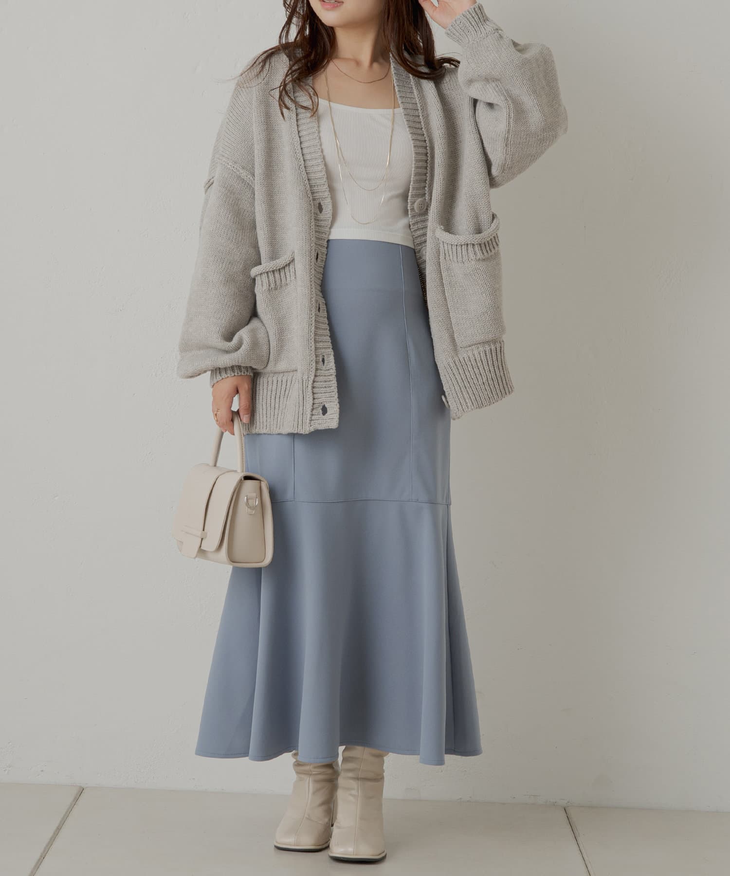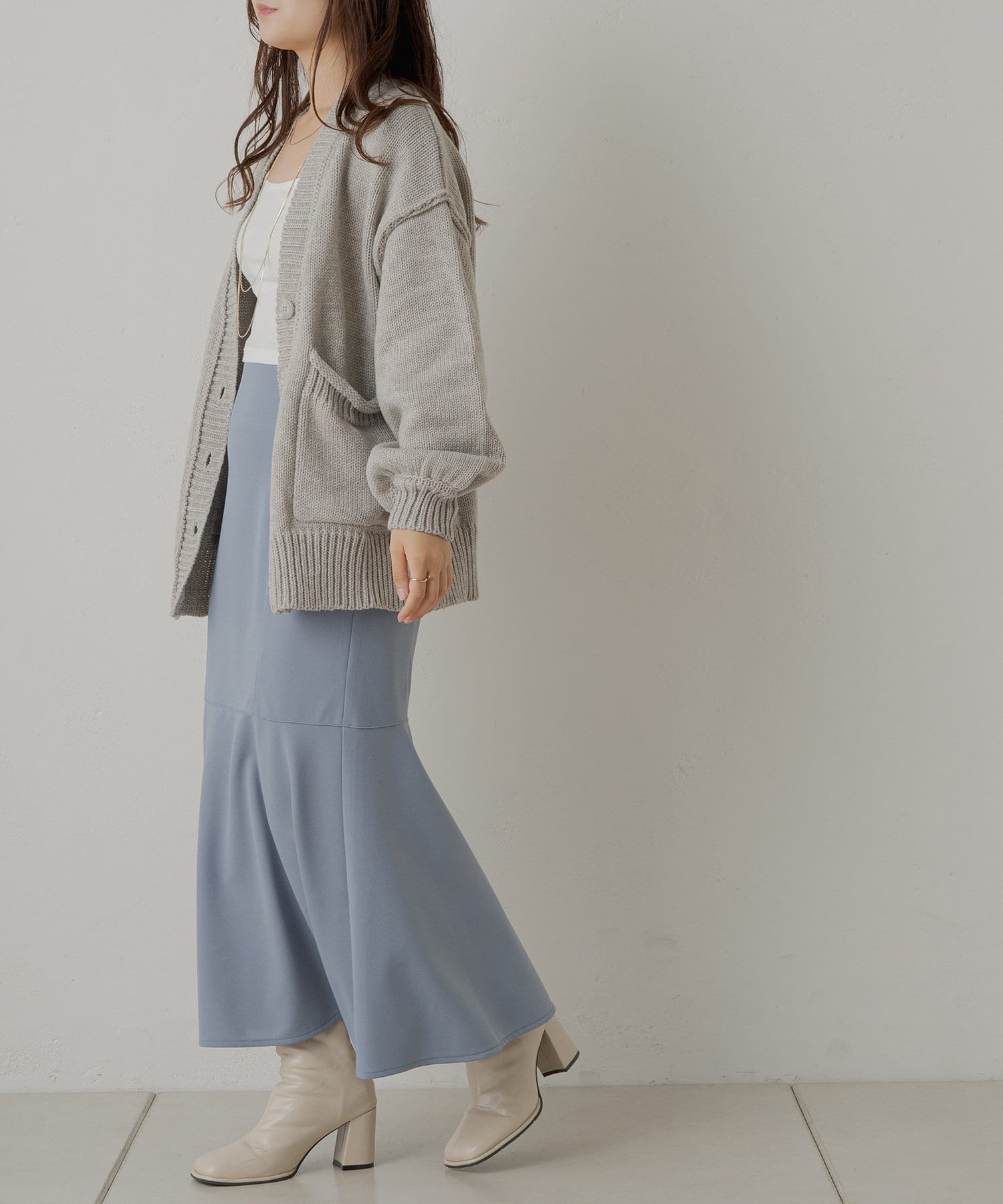 ・デニムを合わせてカジュアルな着こなしはもちろん、マーメイドやフレアなど、ポイントになるシルエットのスカート合わせでフェミニンに。