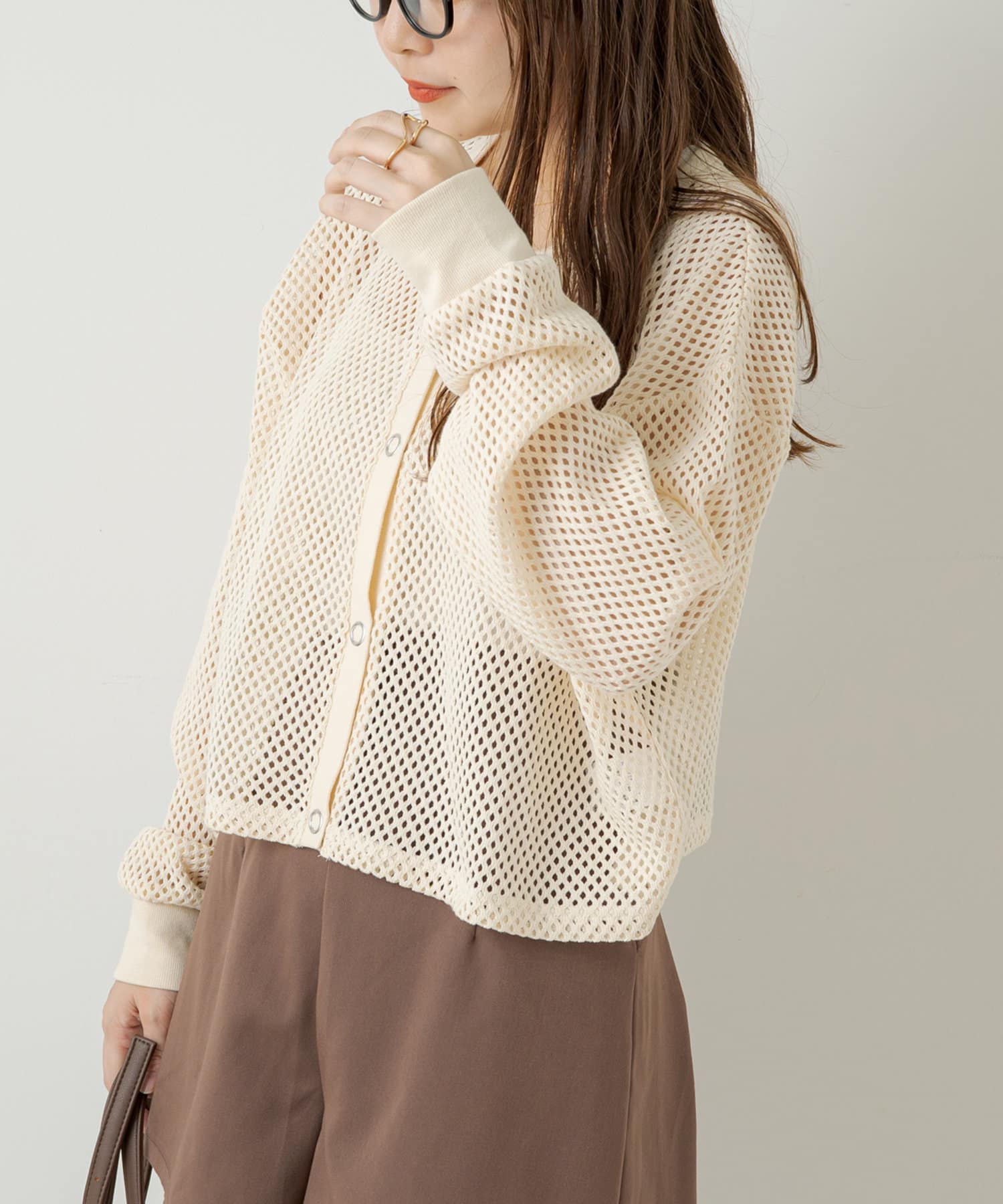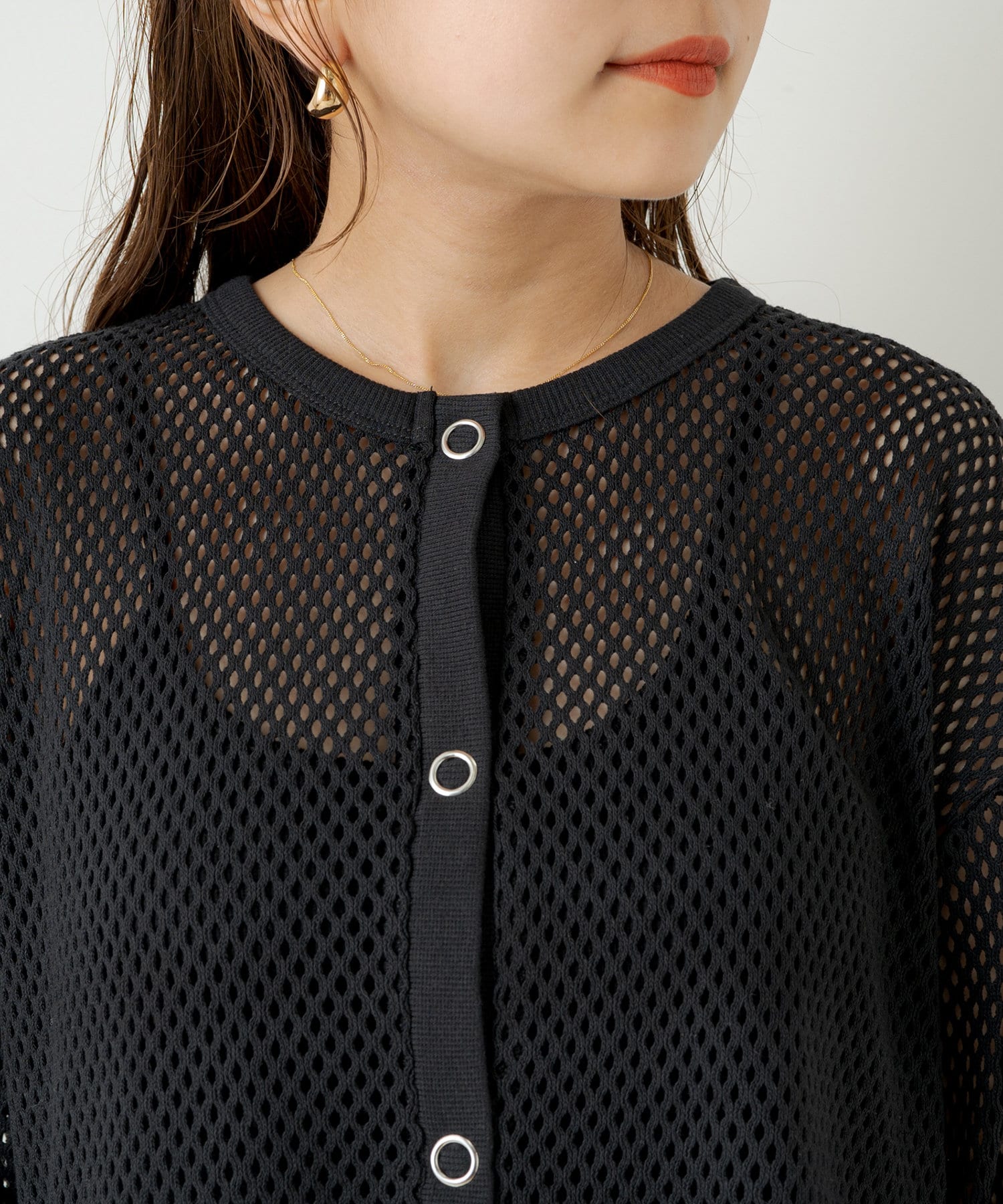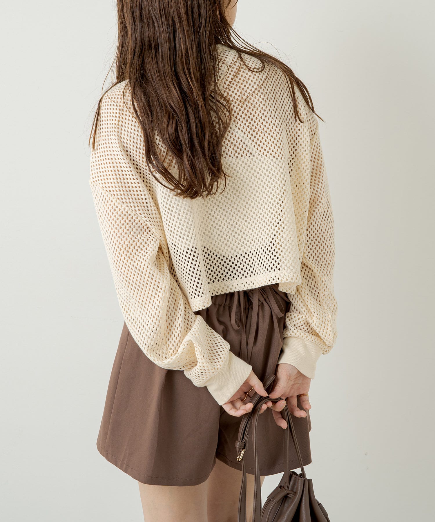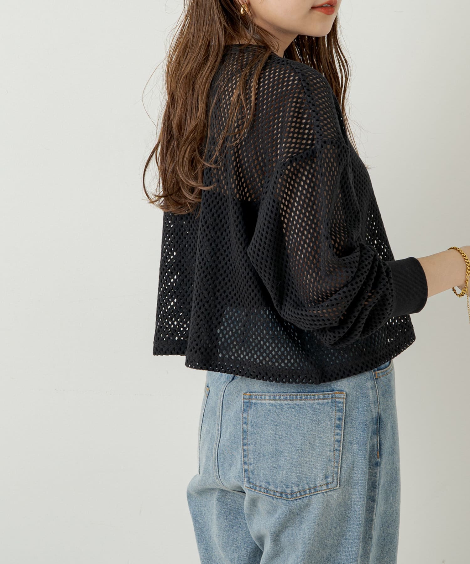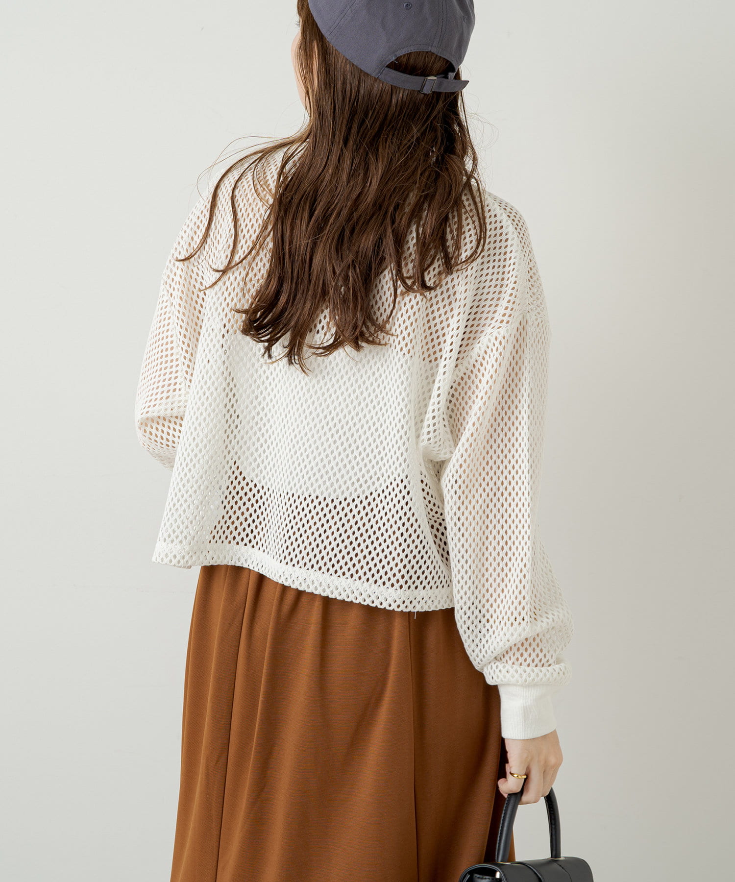 ・ほど良い透け感が女性らしいトレンドのメッシュトップス。