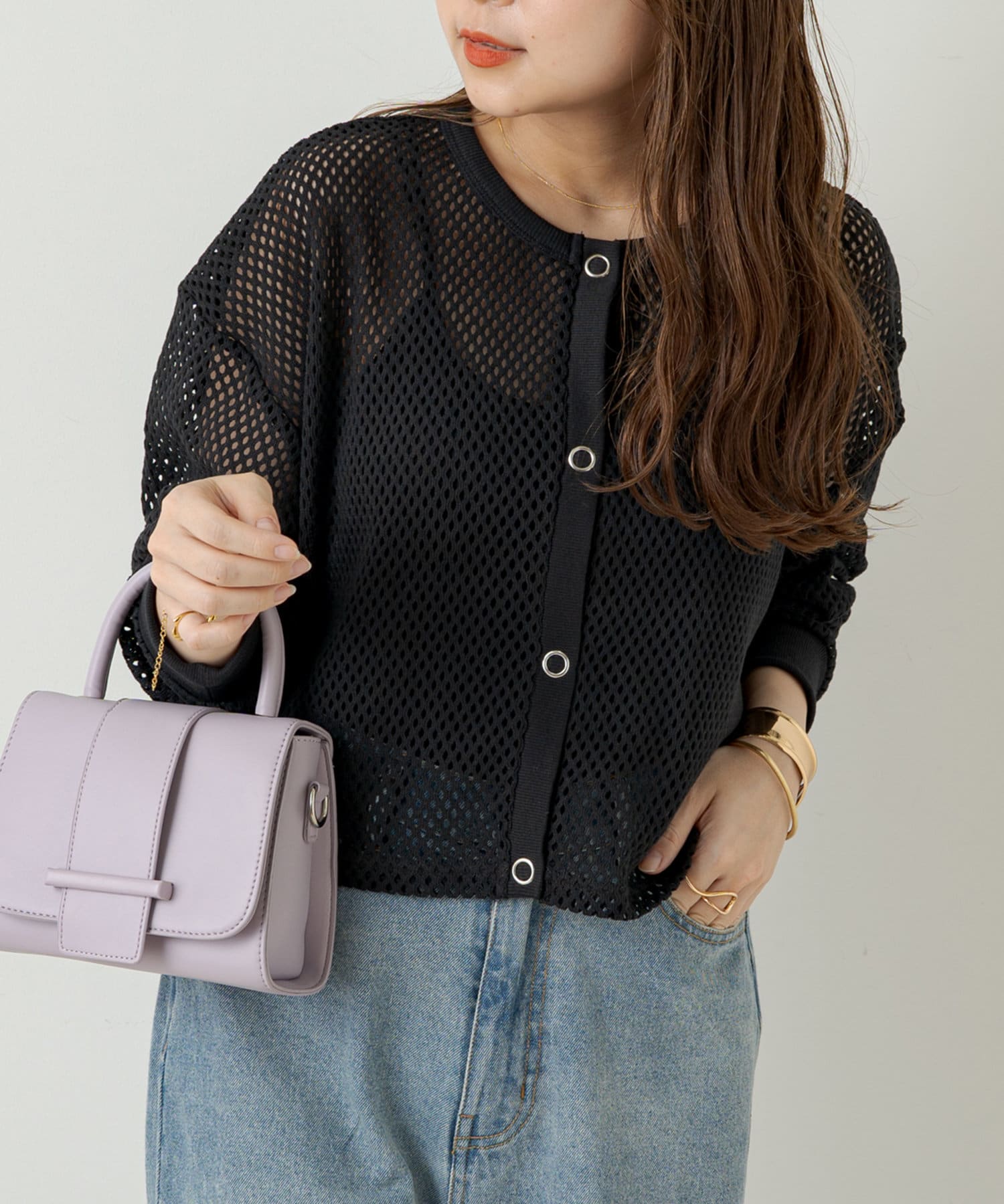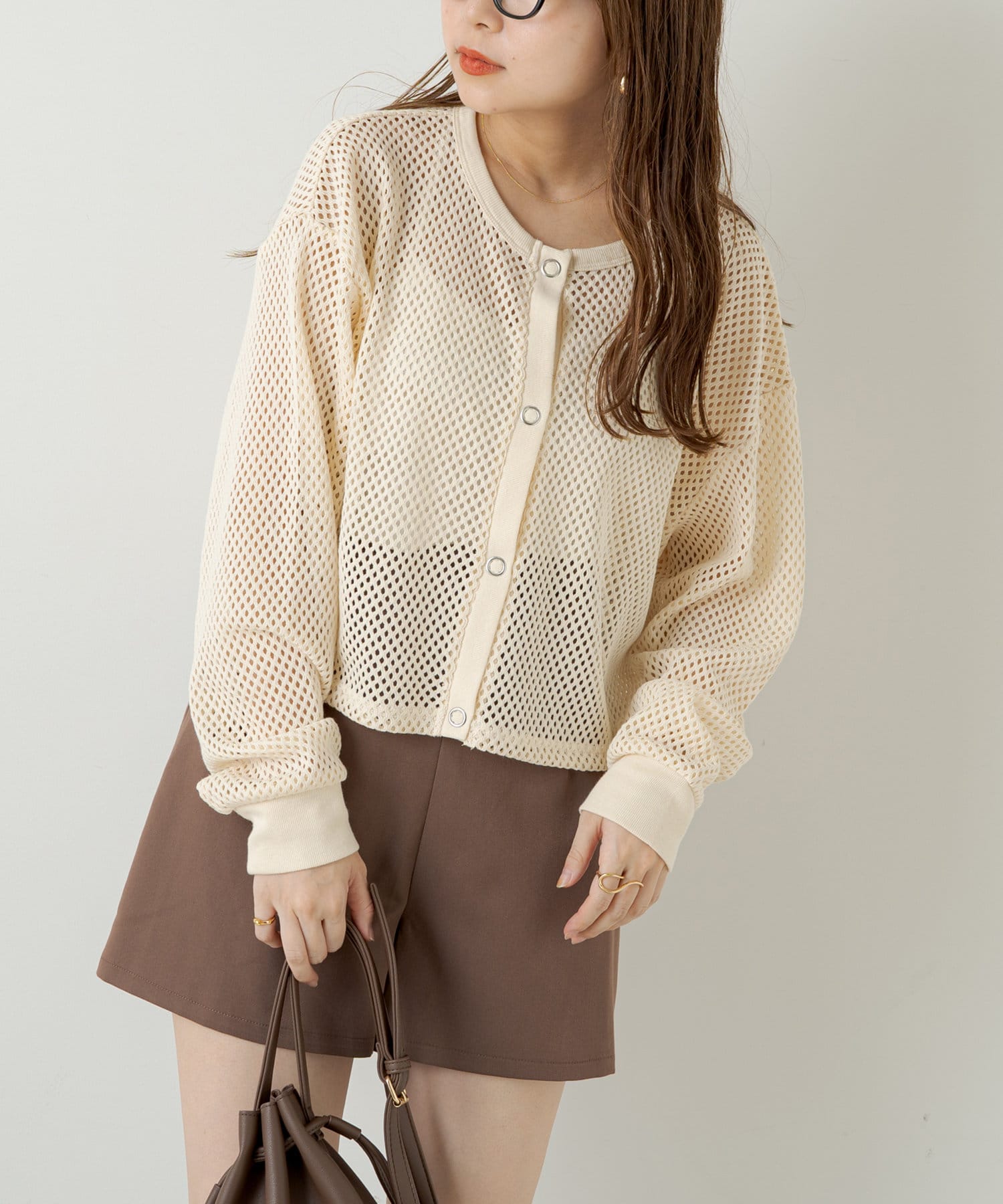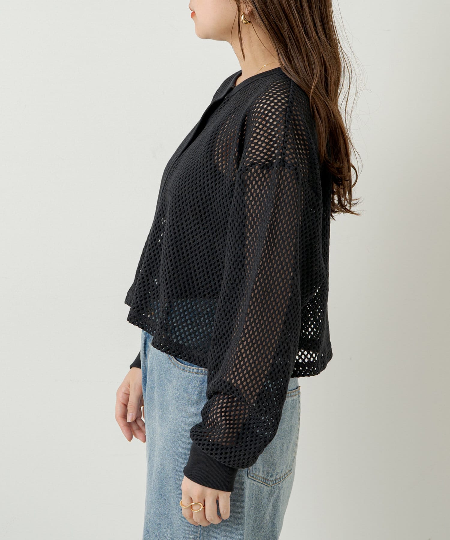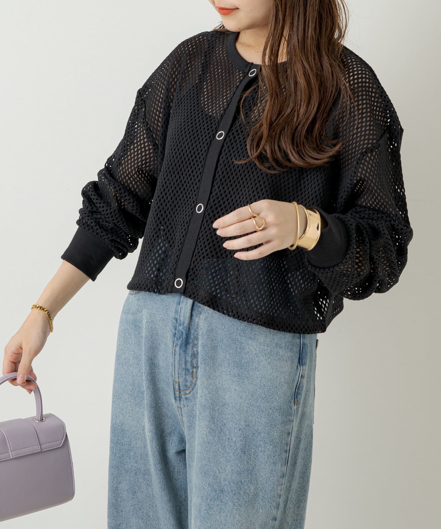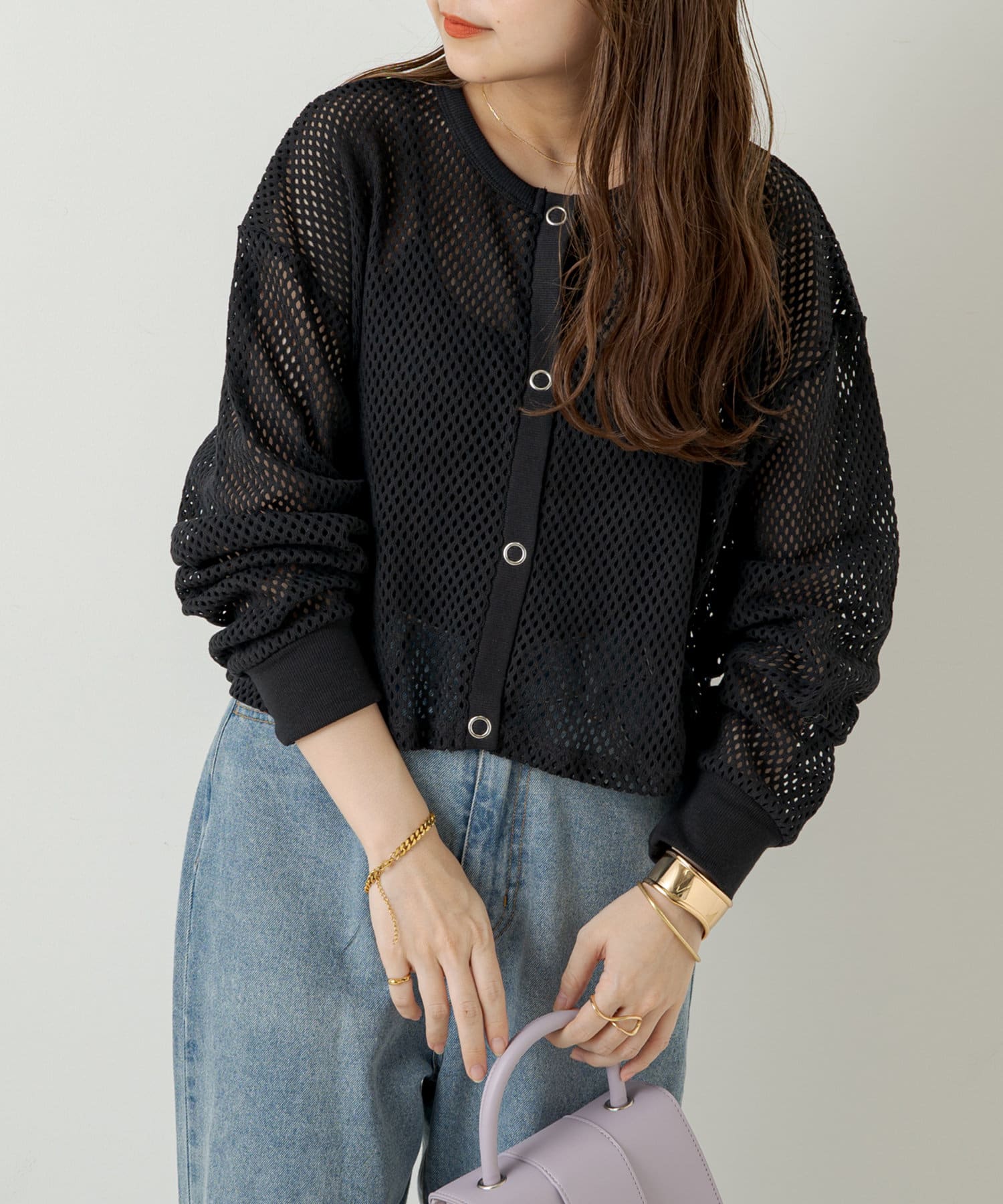 ・ほど良い透け感が女性らしいトレンドのメッシュトップス。