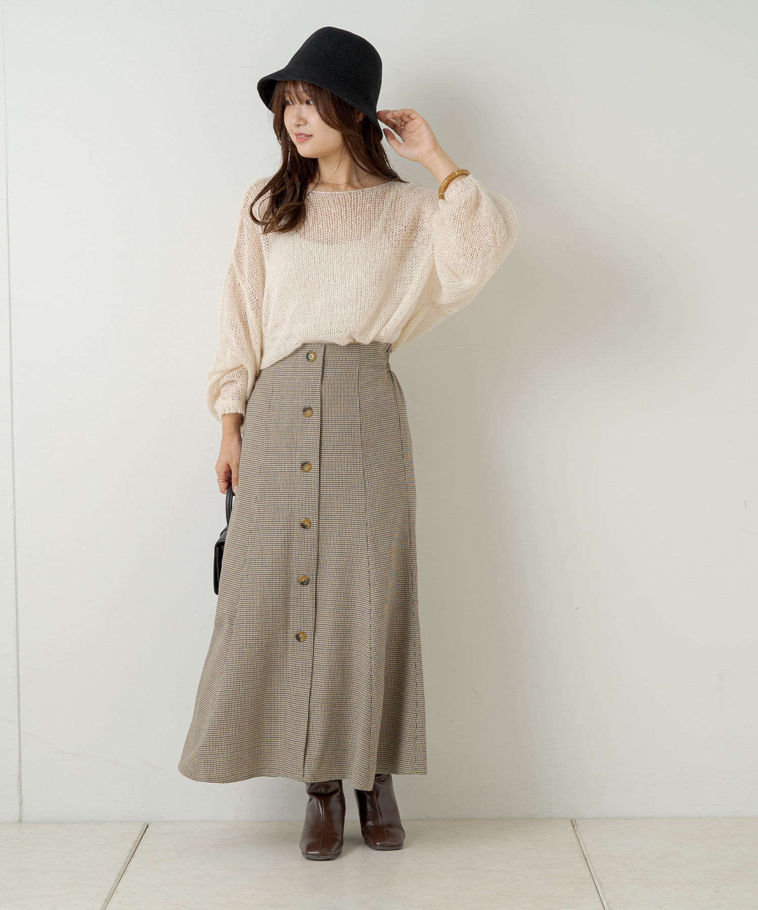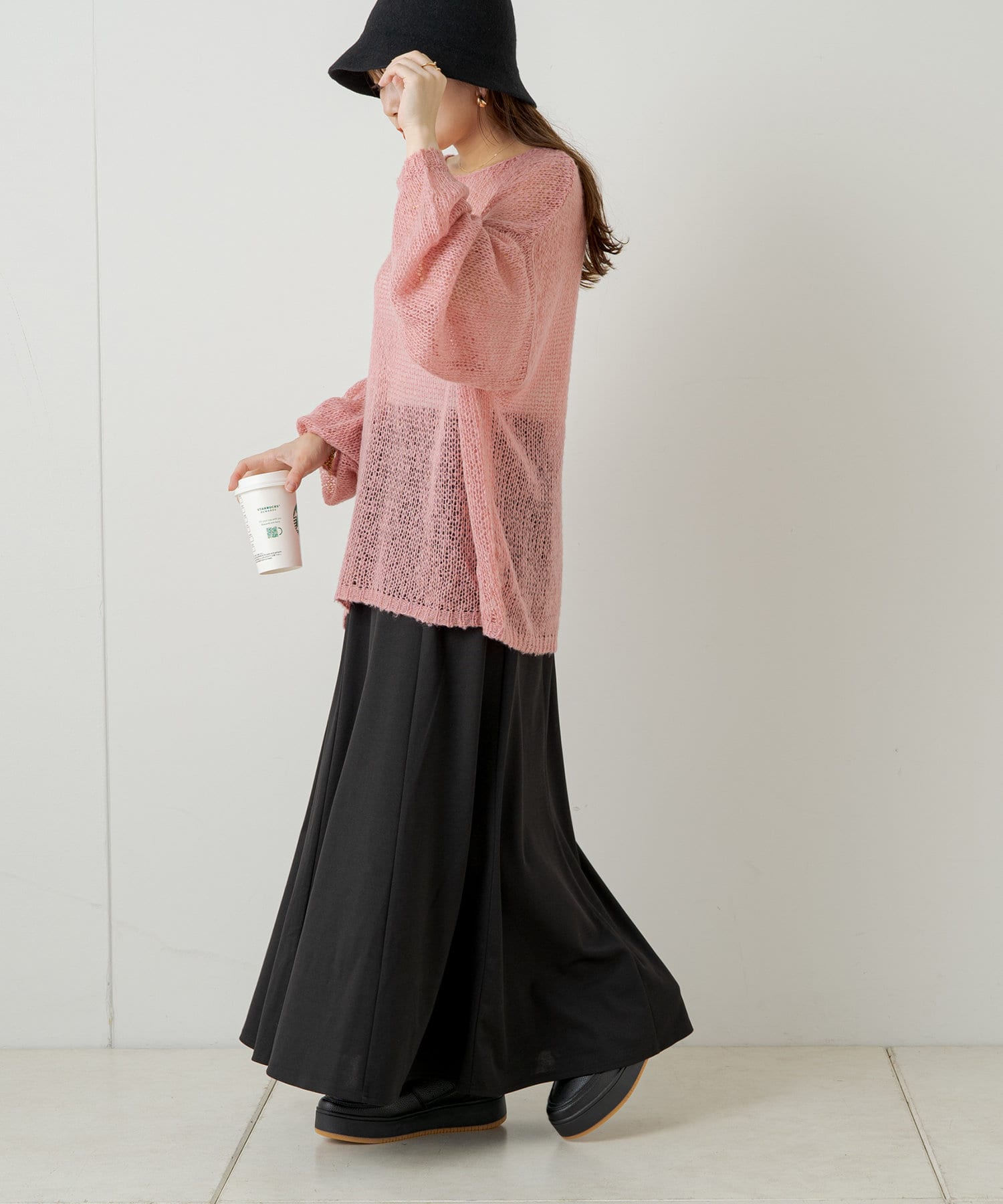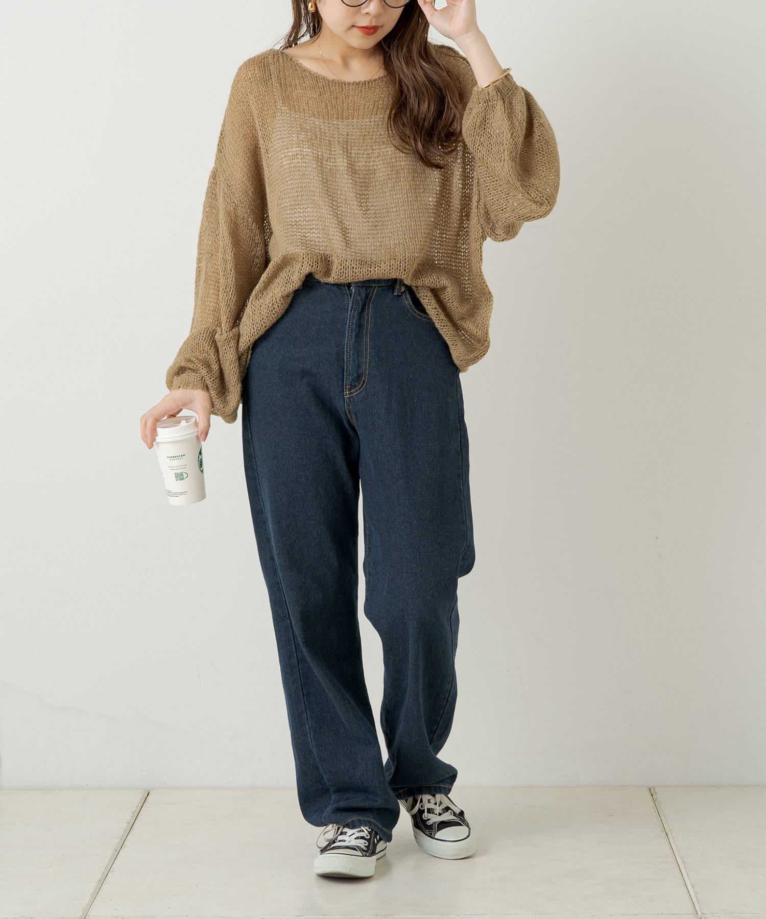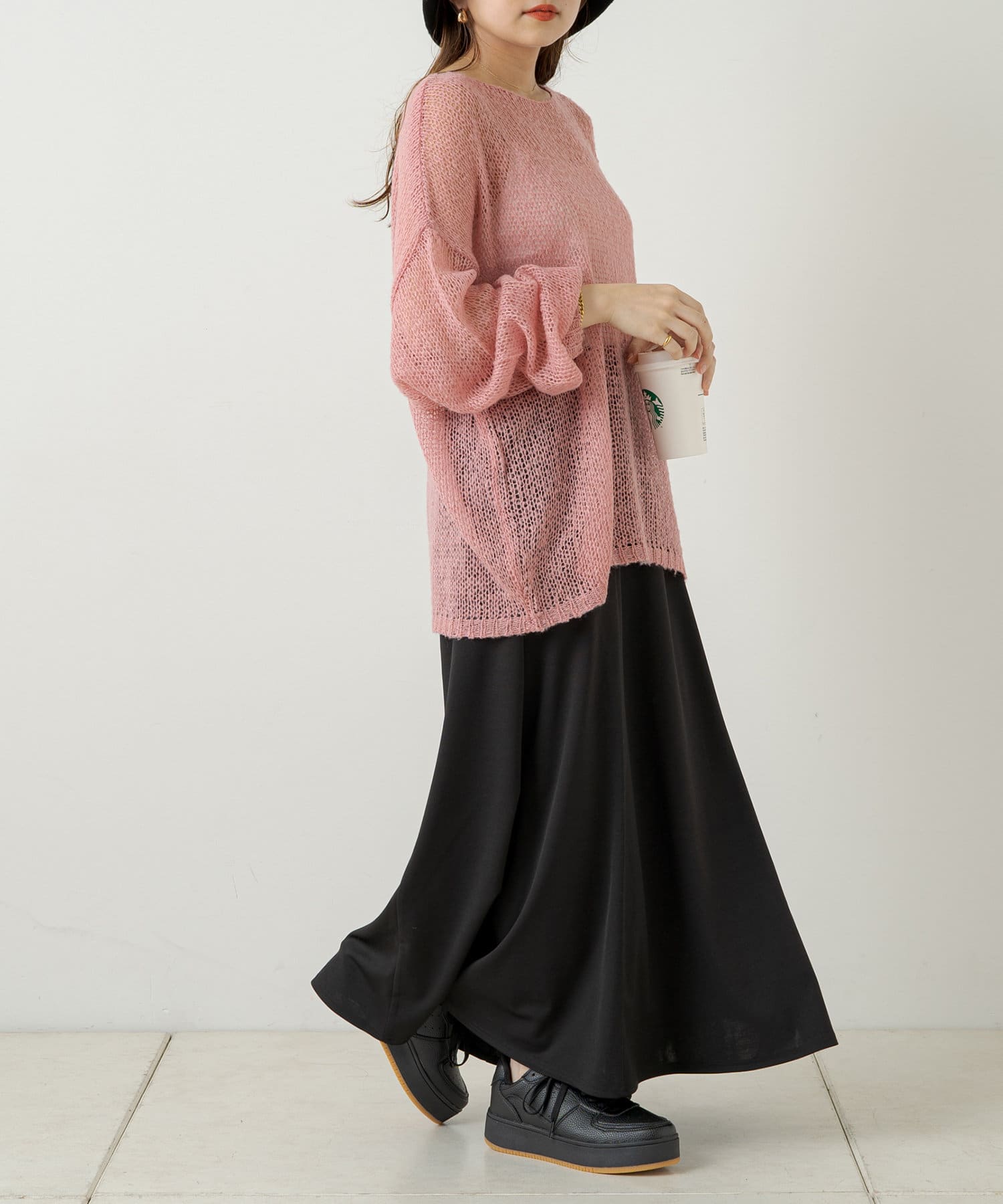 ・シアーニットなので、キャミソールの上から着ていただくと、ほど良い肌見せができトレンドスタイルに。