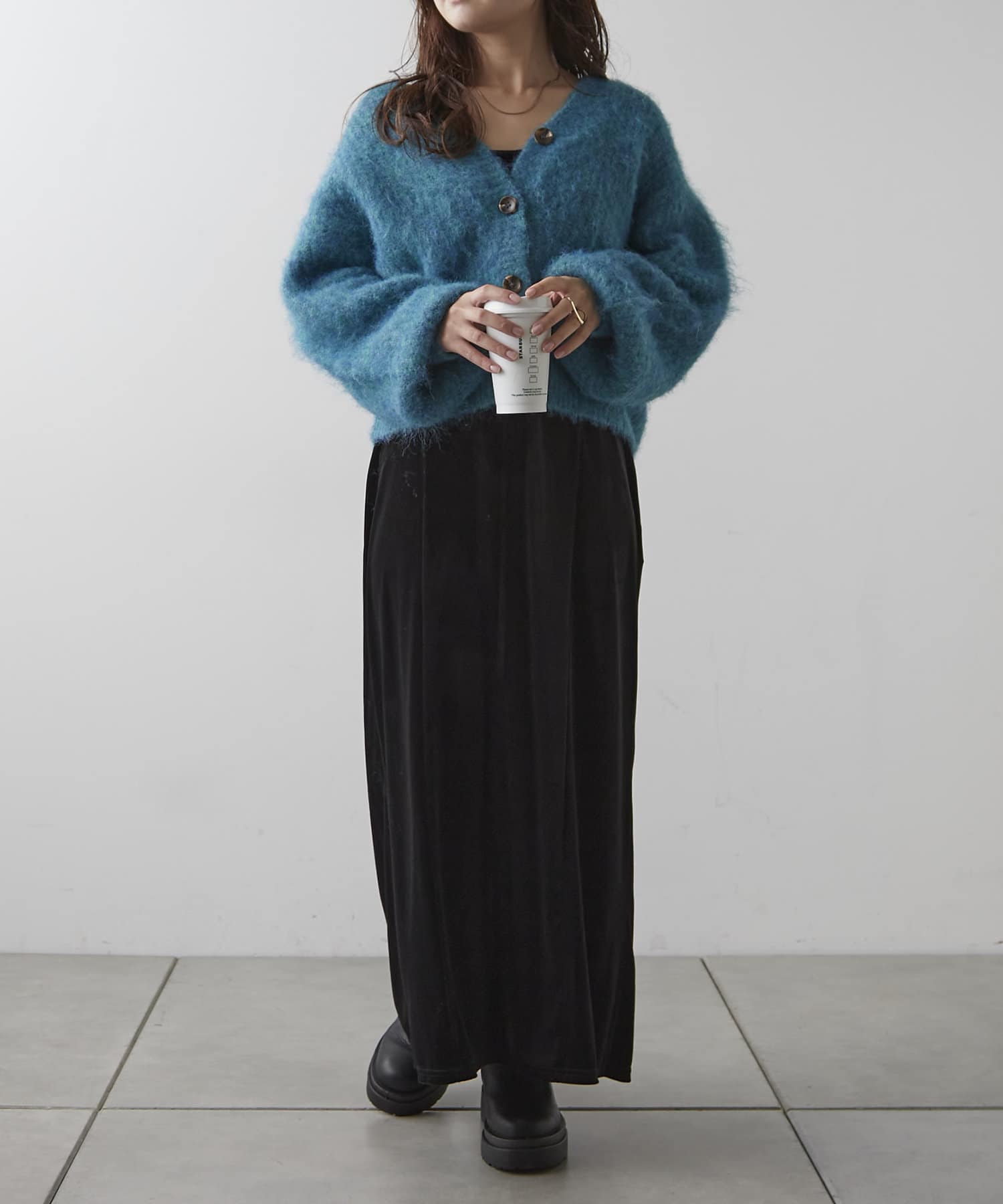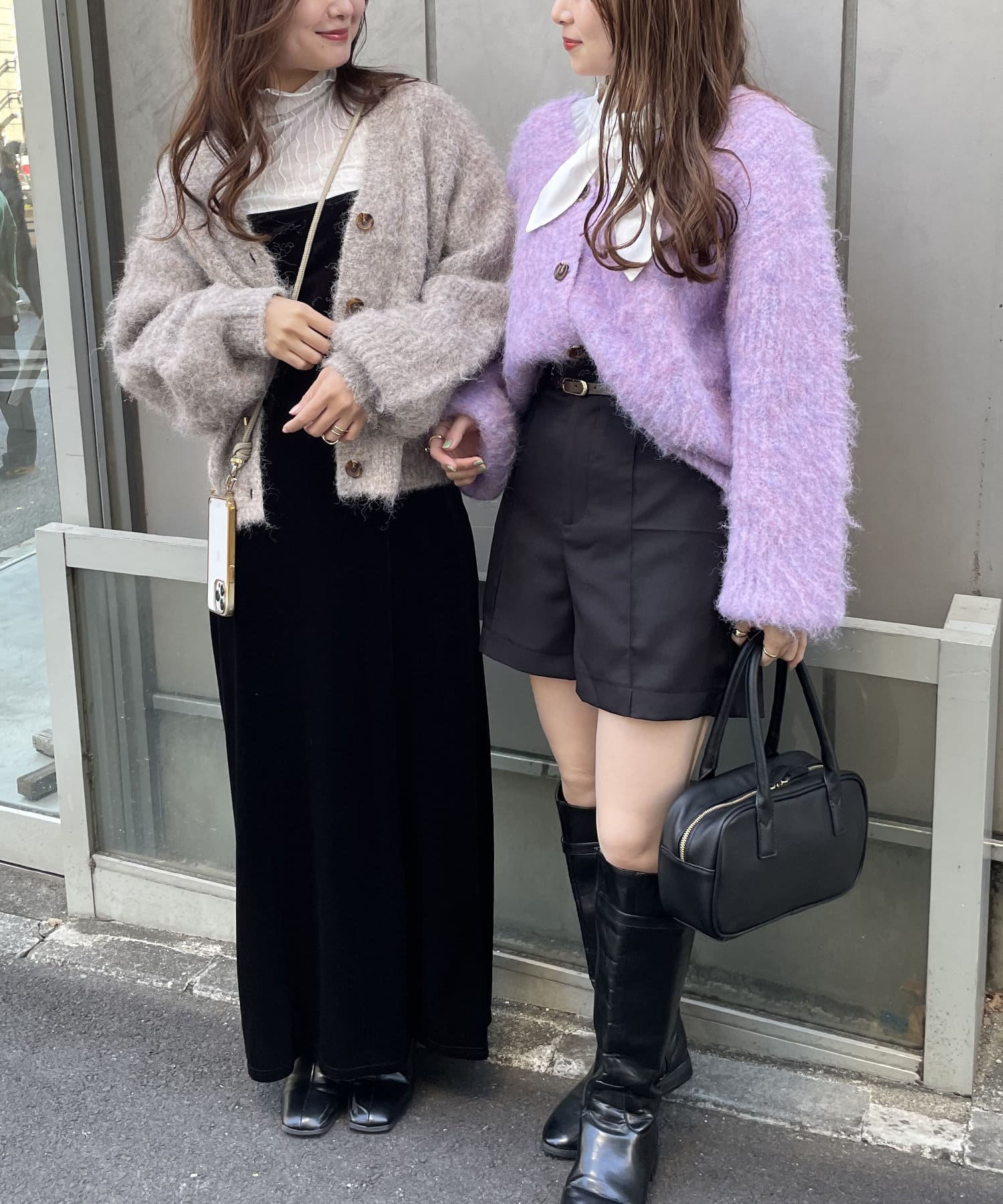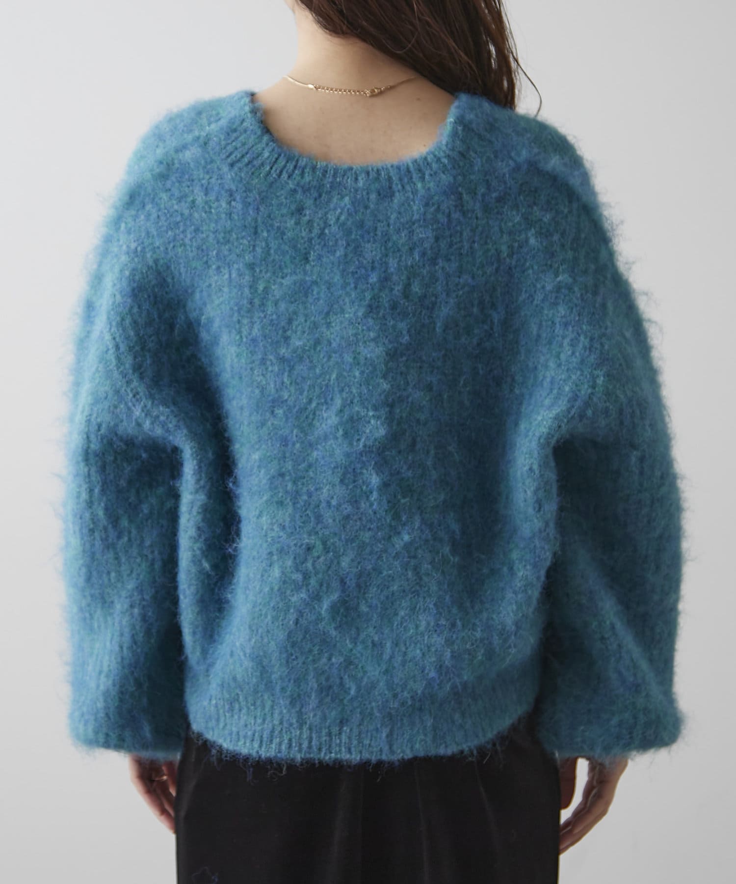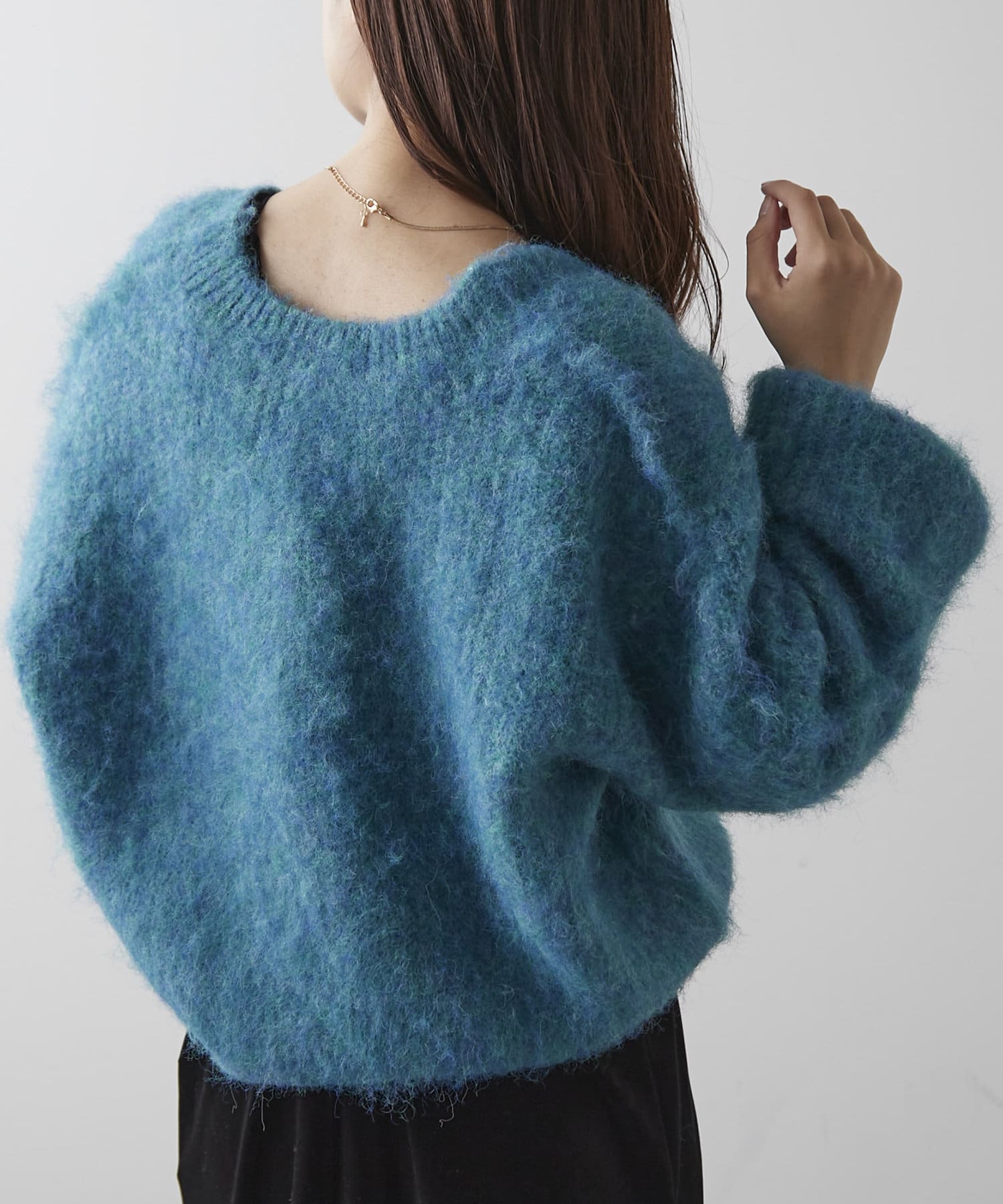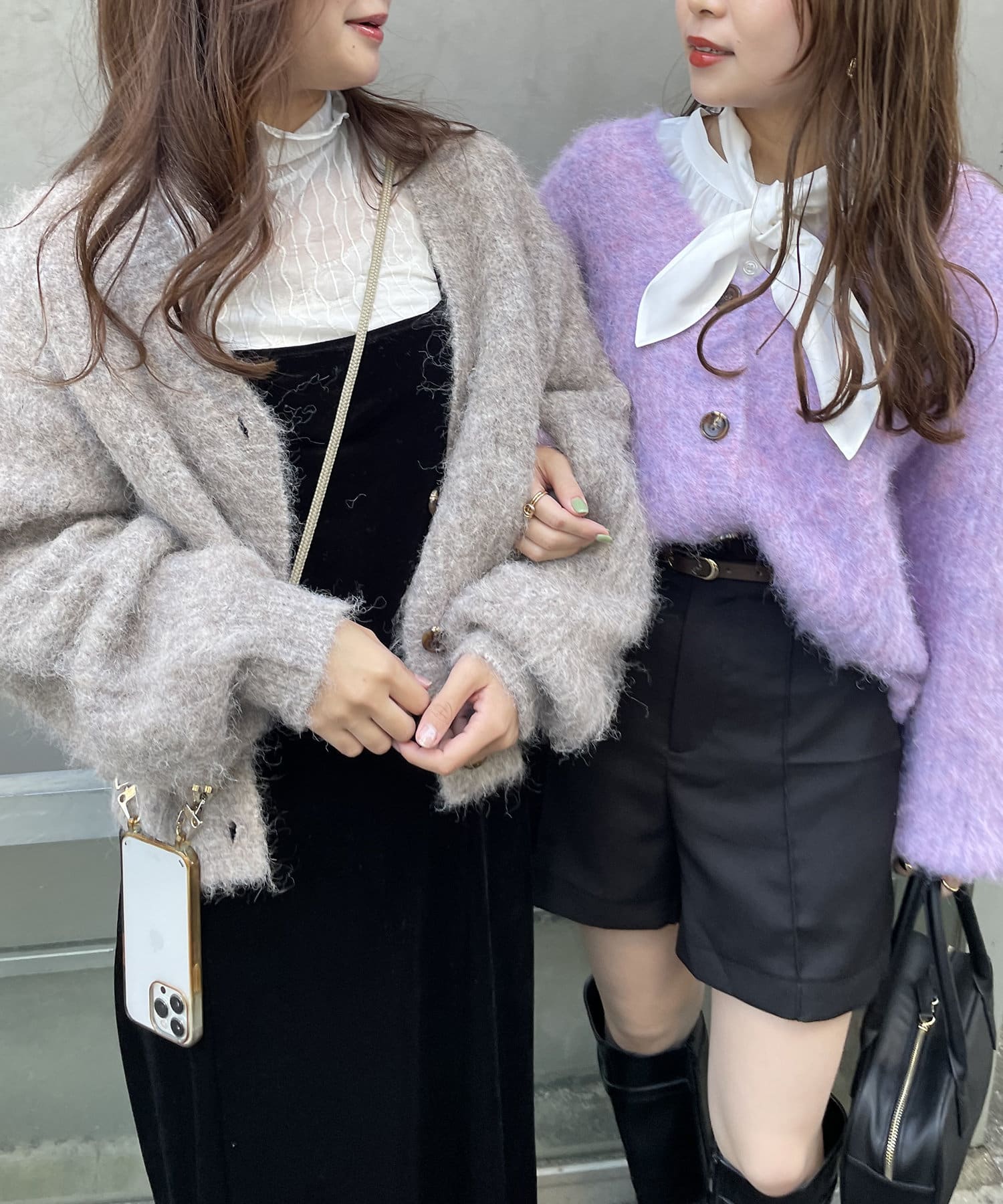・様々な色の糸を混ぜ込んだMIXヤーンと毛足の長い素材感がコーデの主役に。
