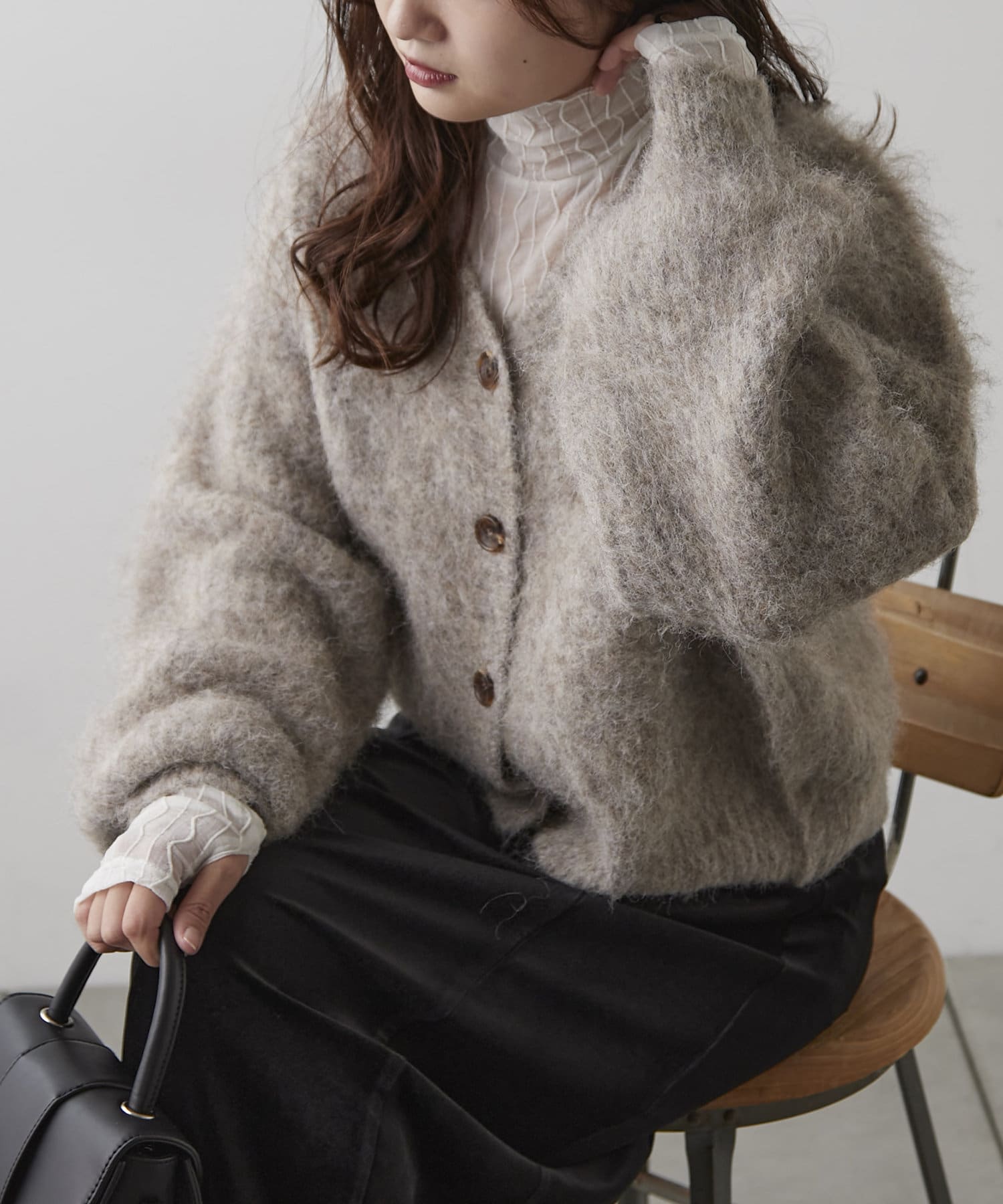 【WEB先行予約】ウール混シャギーニットカーディガン