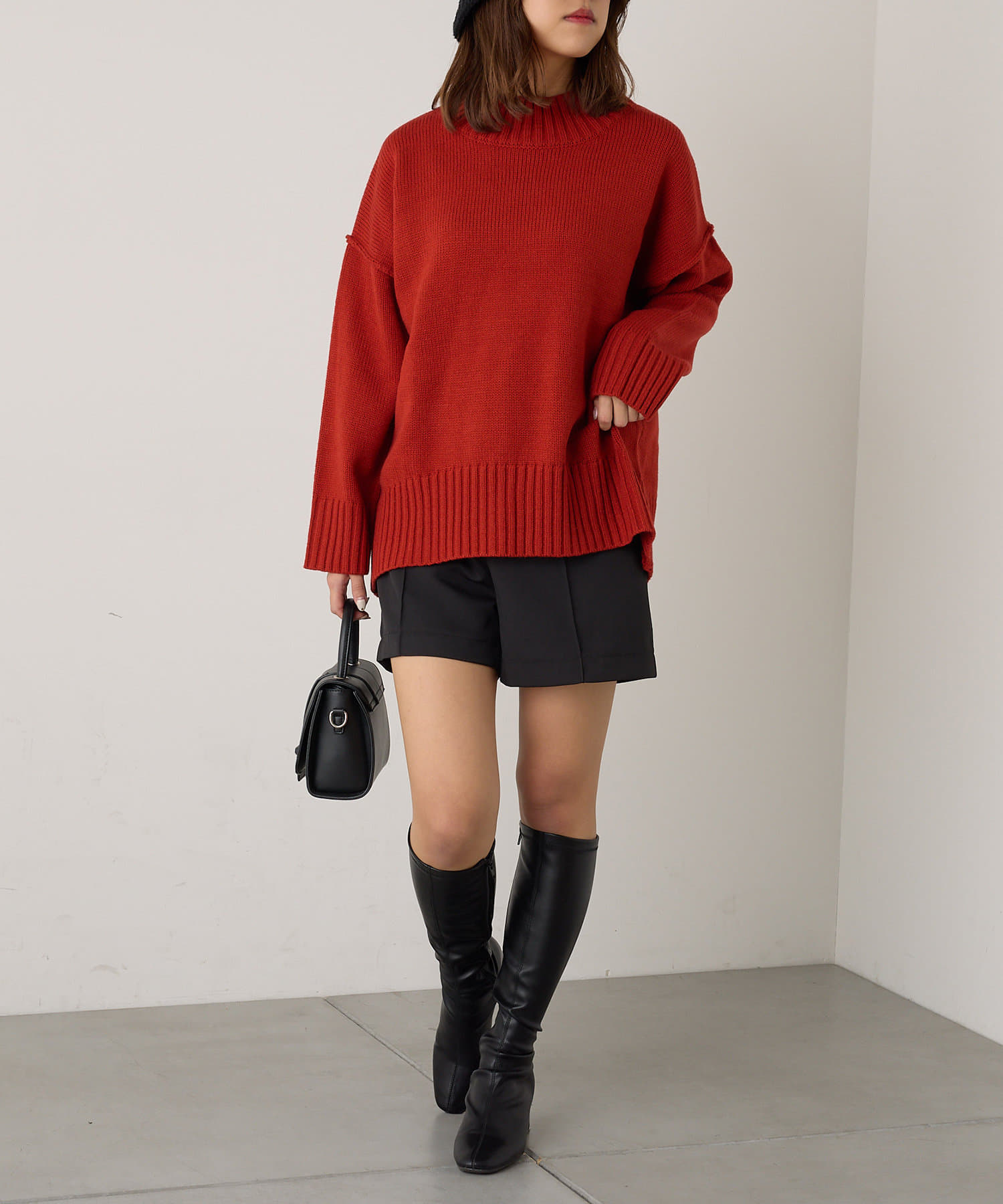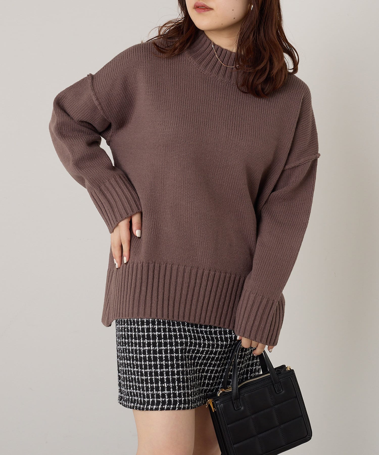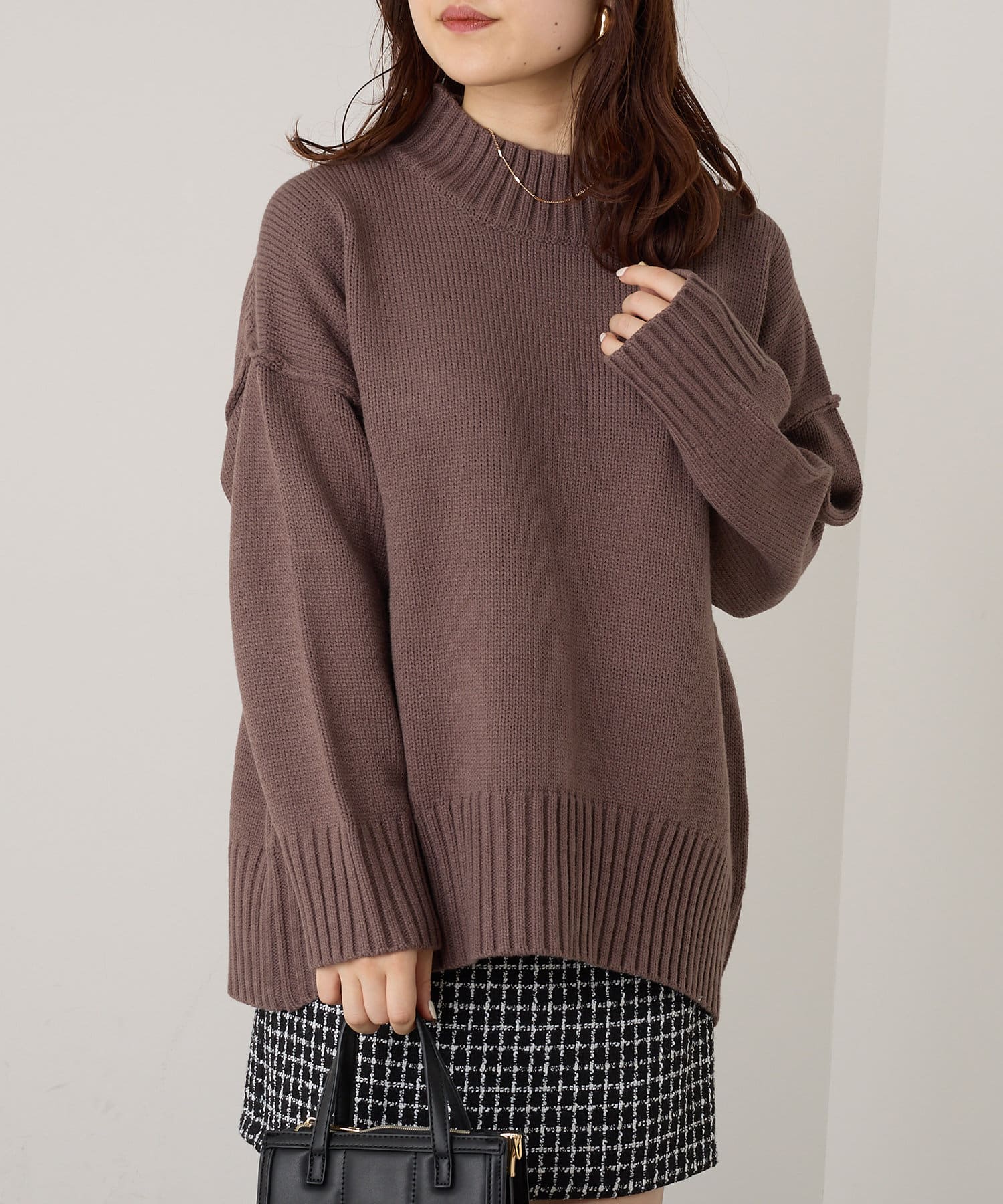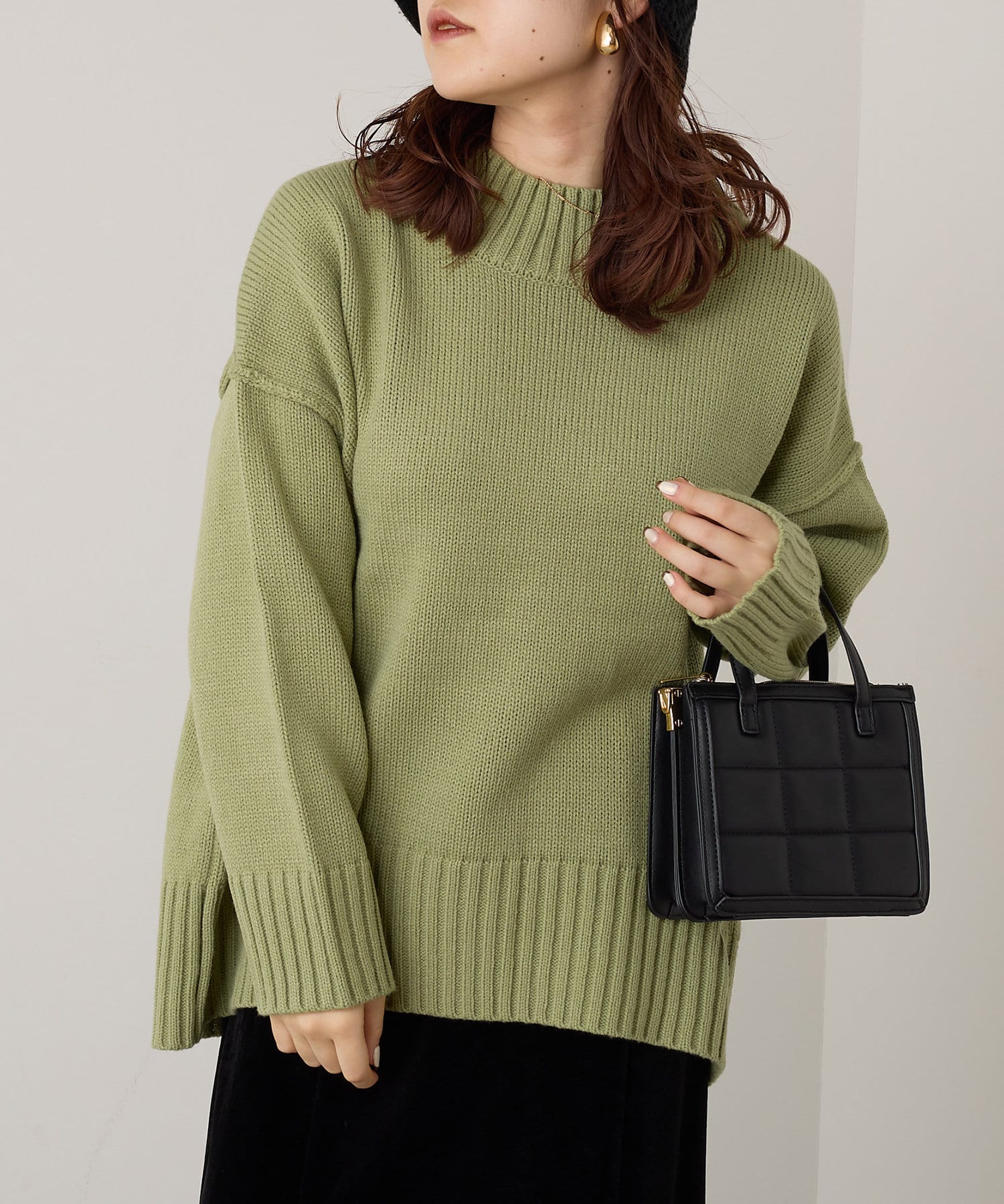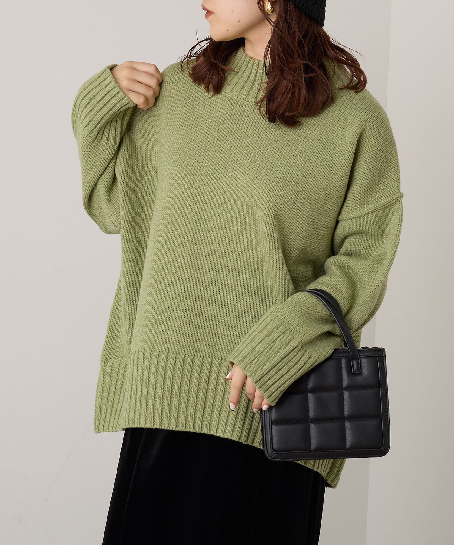 ・ふっくらとしたアクリル素材のニットは、チクチクしない柔らかな肌触りが特長。